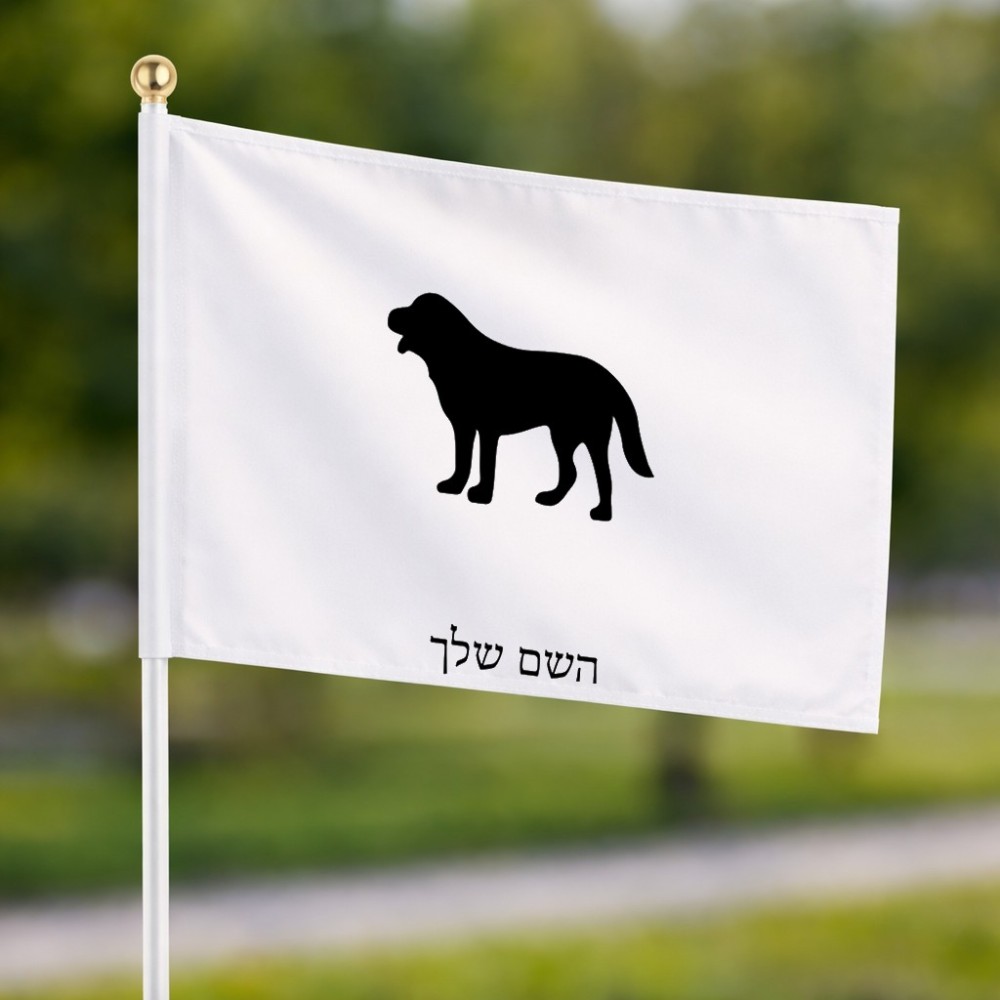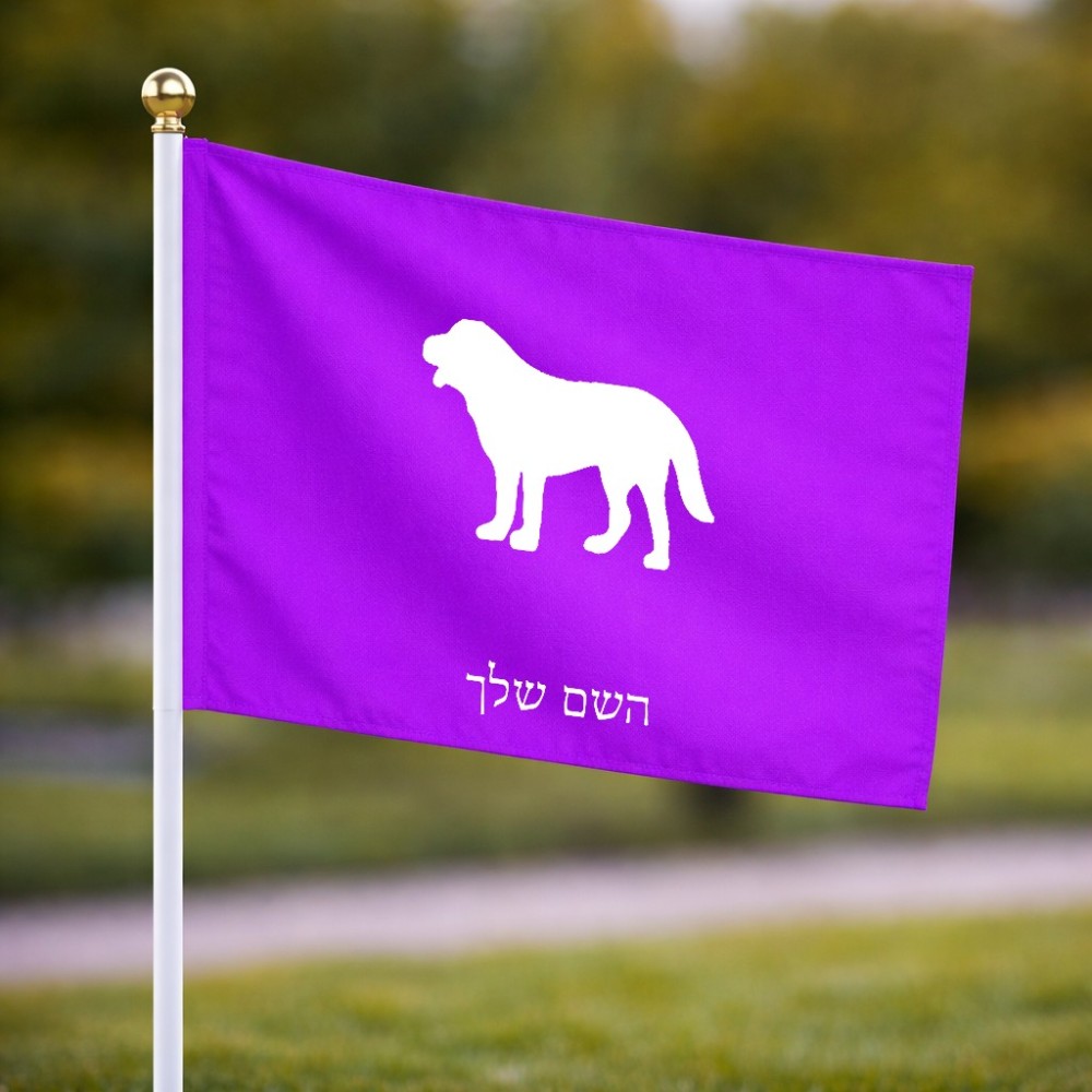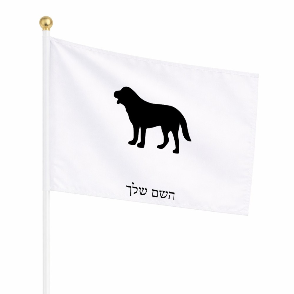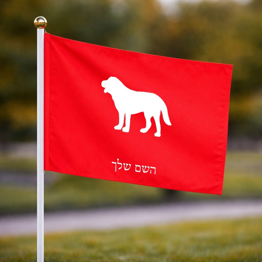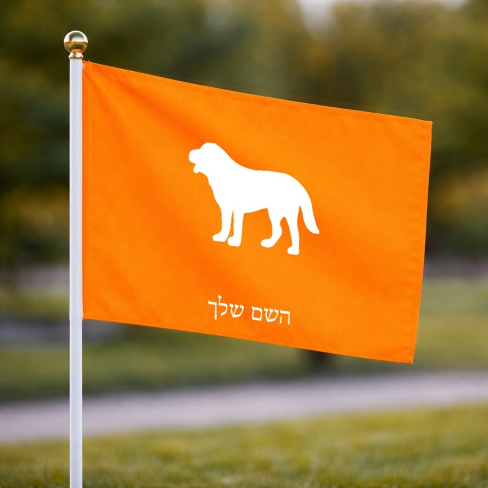 דיגלון בעיצוב אישי עם השם שלך בעיצוב כלב גודל הדיגלון 20.5 × 14 ס"מ, ההדפסה מתבצעת בשני צידי הדגל, את השם המבוקש ניתן לציין בהזמנה, אם לא צויין אנחנו ניצור קשר לבירור.
