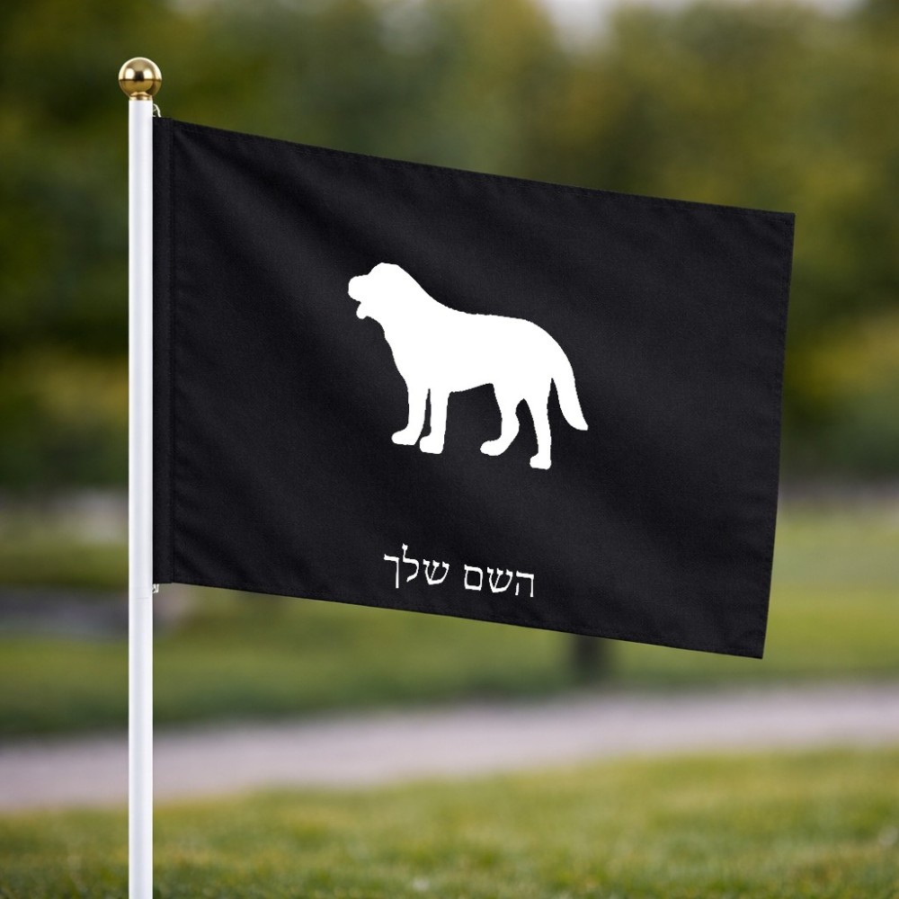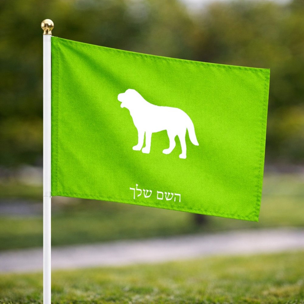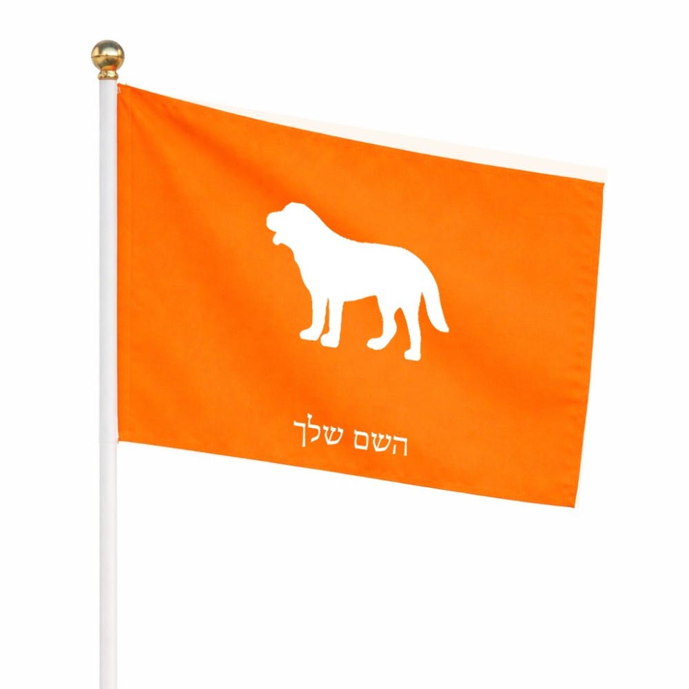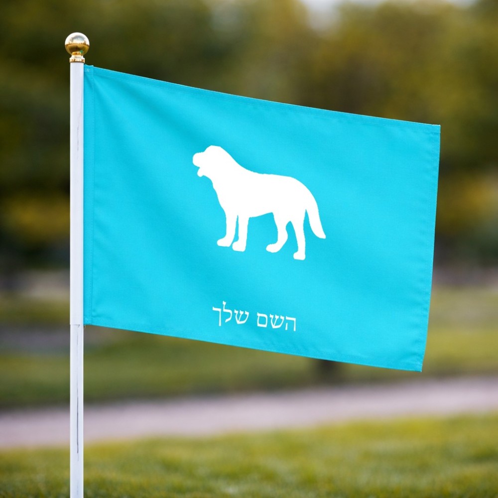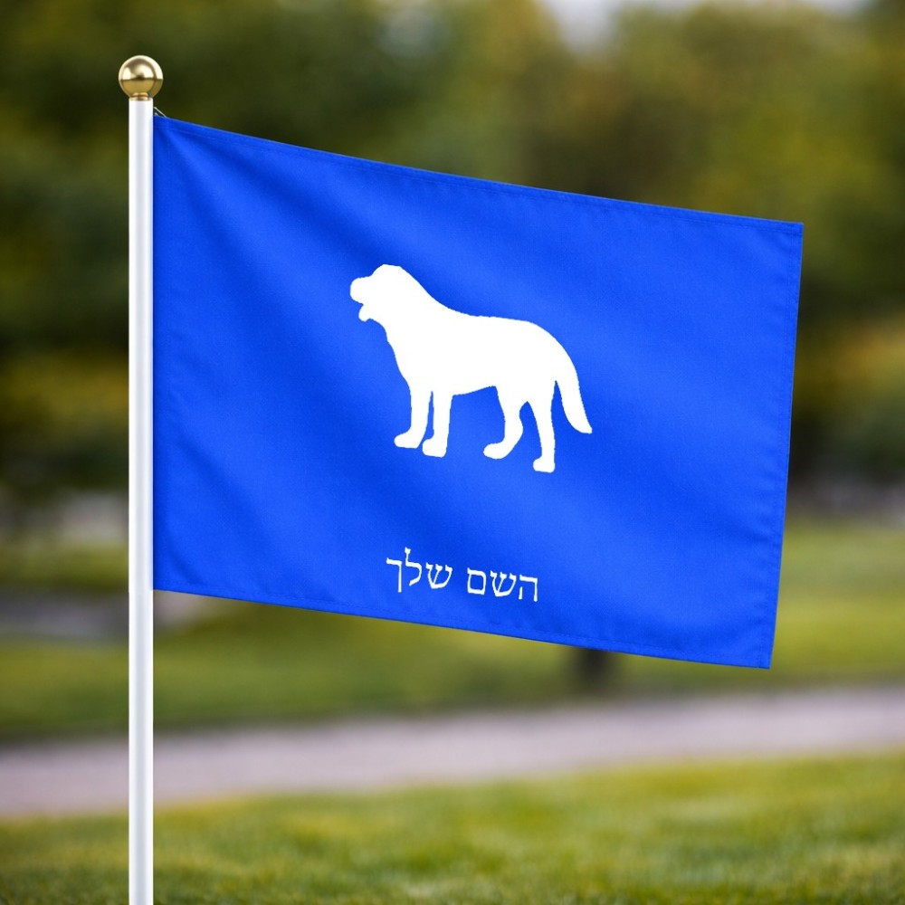 דיגלון בעיצוב אישי עם השם שלך בעיצוב כלב גודל הדיגלון 20.5 × 14 ס"מ, ההדפסה מתבצעת בשני צידי הדגל, את השם המבוקש ניתן לציין בהזמנה, אם לא צויין אנחנו ניצור קשר לבירור.