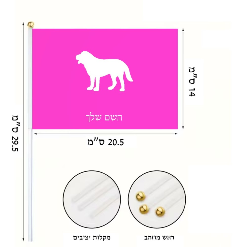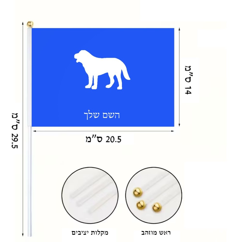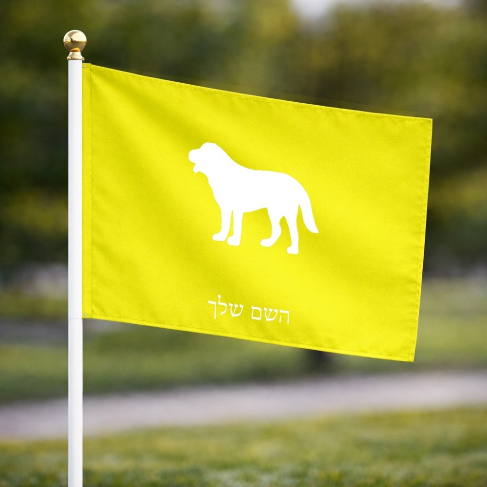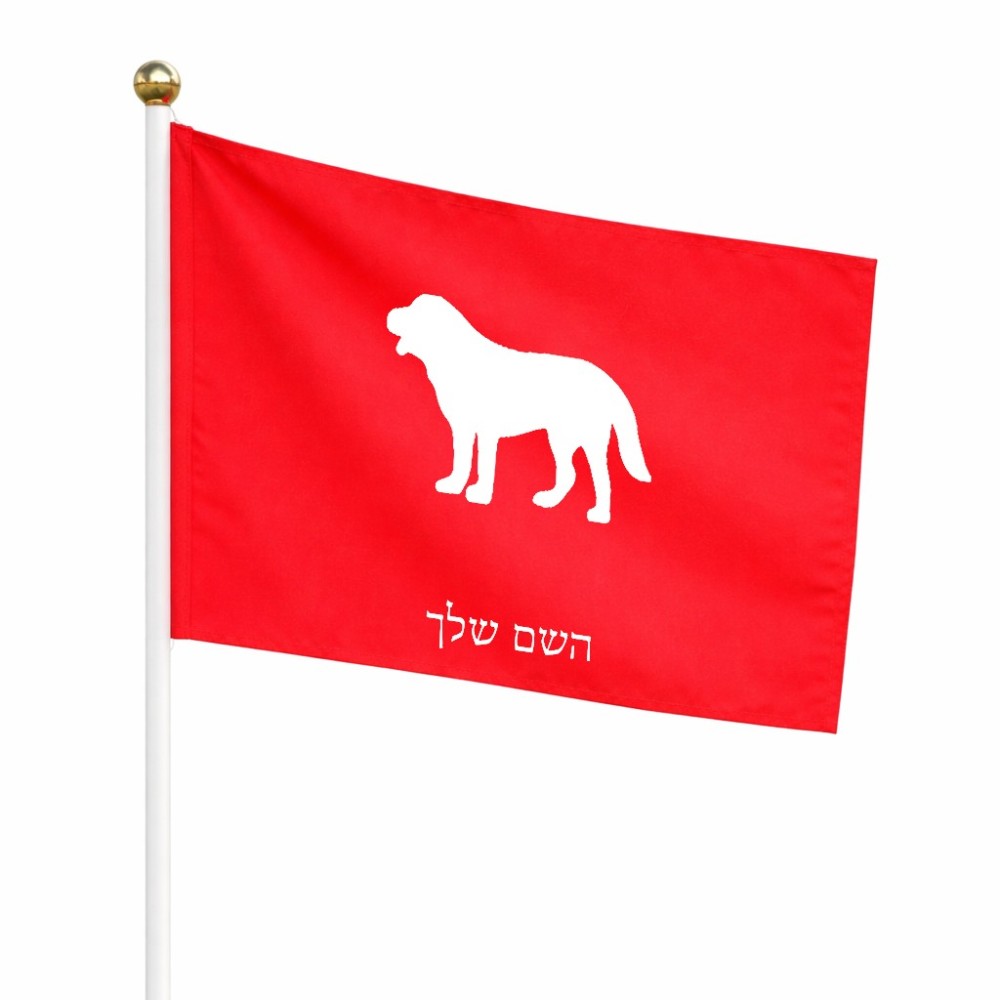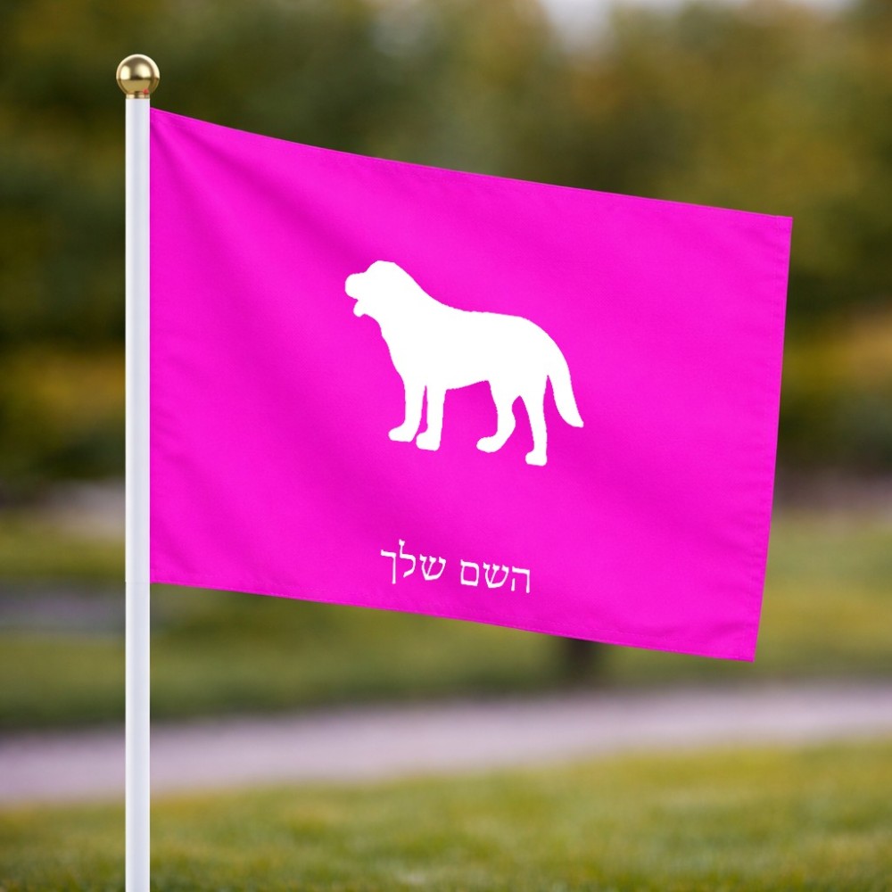 דיגלון בעיצוב אישי עם השם שלך בעיצוב כלב גודל הדיגלון 20.5 × 14 ס"מ, ההדפסה מתבצעת בשני צידי הדגל, את השם המבוקש ניתן לציין בהזמנה, אם לא צויין אנחנו ניצור קשר לבירור.