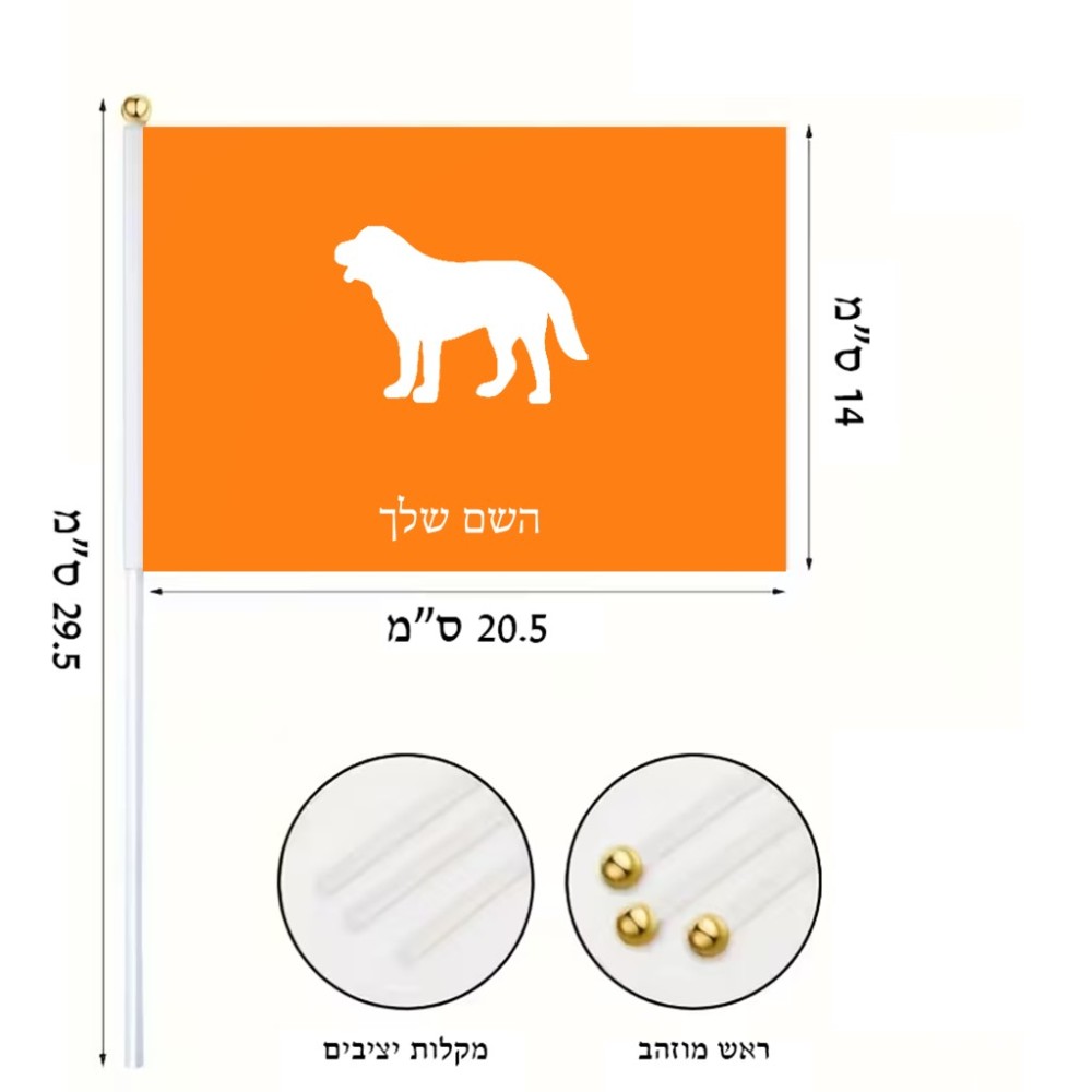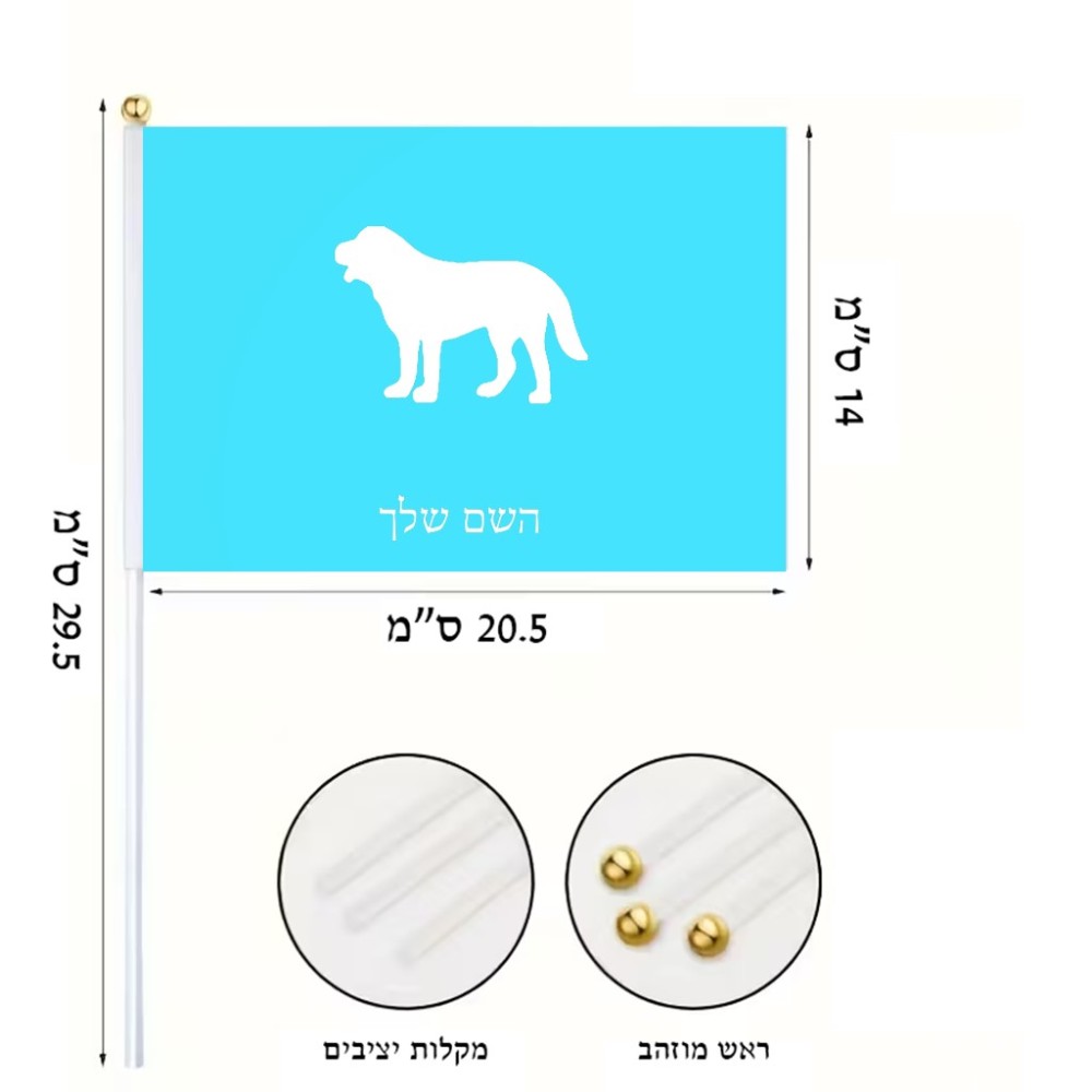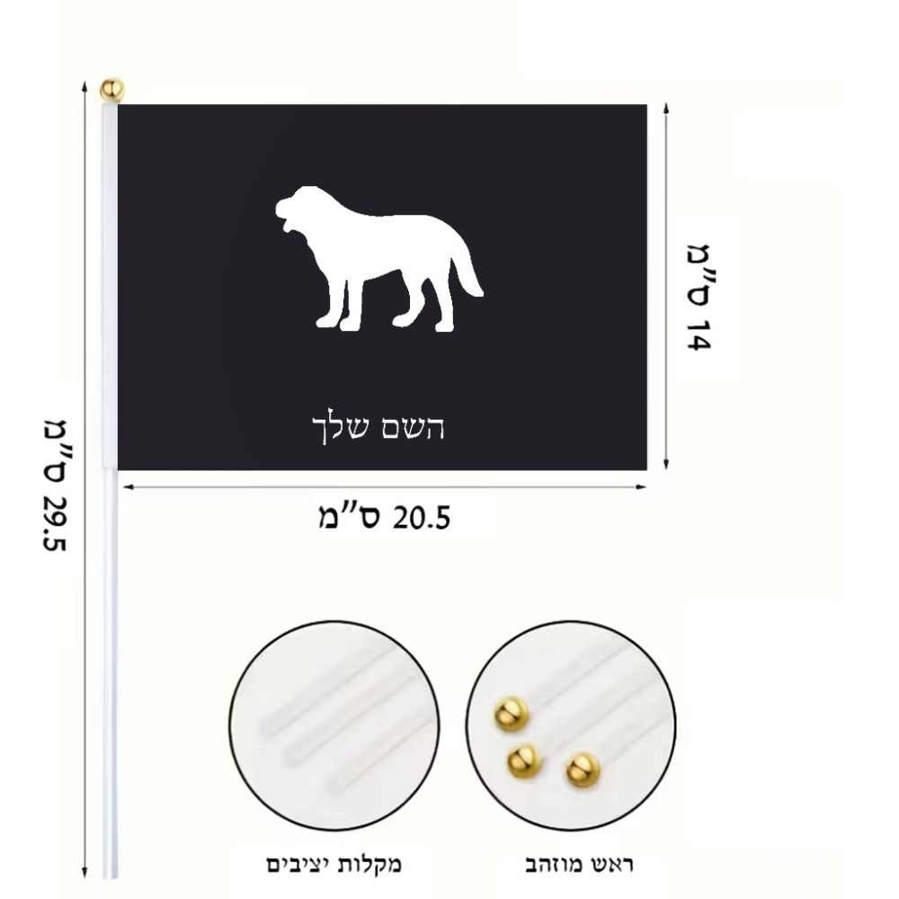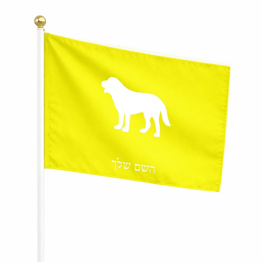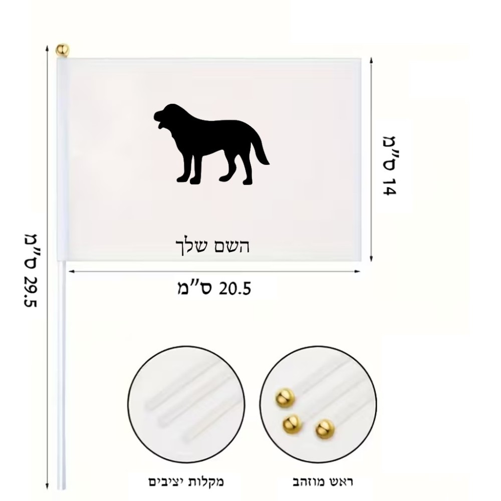 דיגלון בעיצוב אישי עם השם שלך בעיצוב כלב גודל הדיגלון 20.5 × 14 ס"מ, ההדפסה מתבצעת בשני צידי הדגל, את השם המבוקש ניתן לציין בהזמנה, אם לא צויין אנחנו ניצור קשר לבירור.