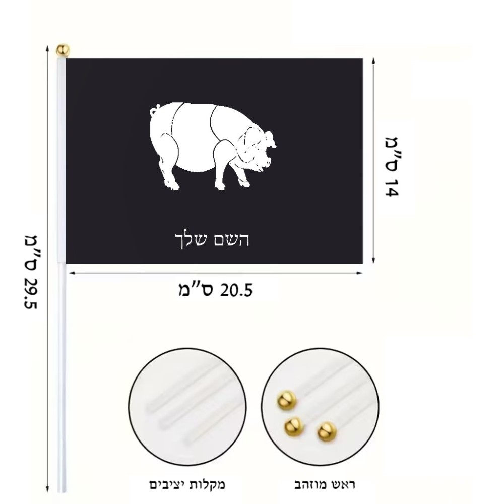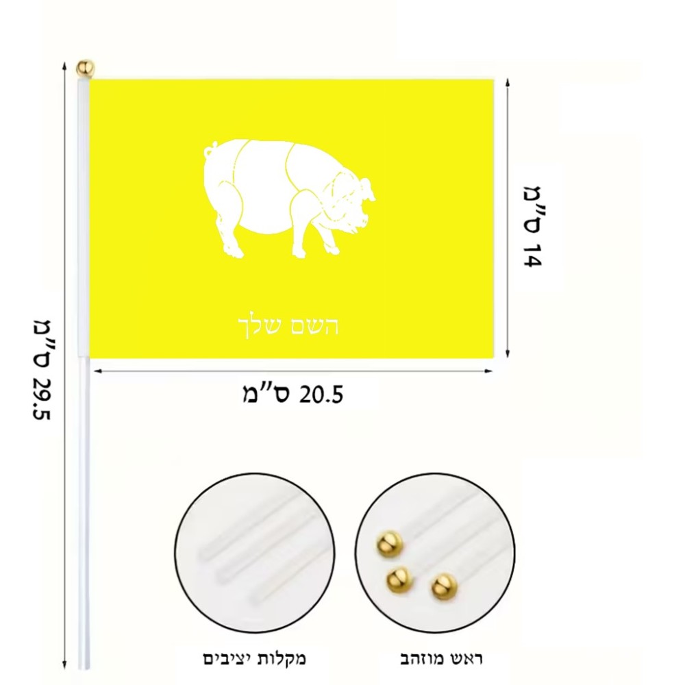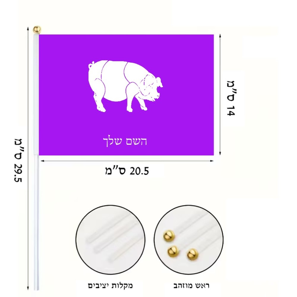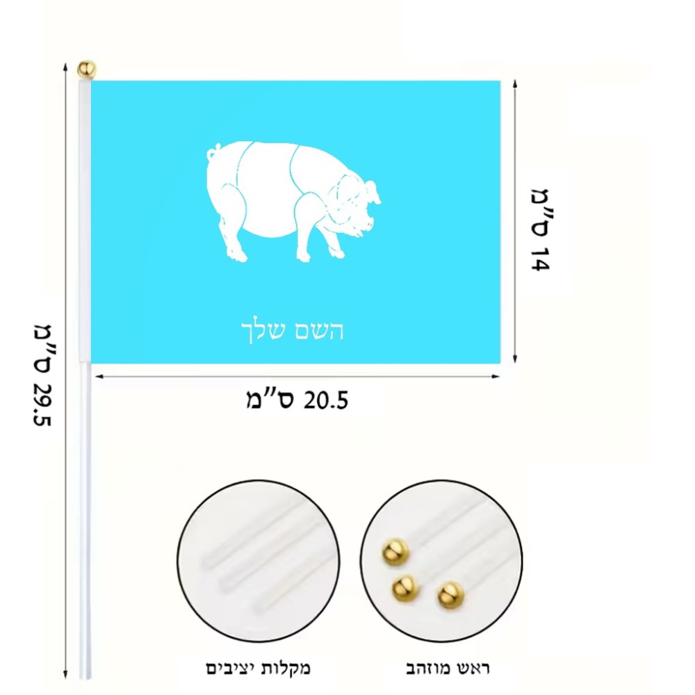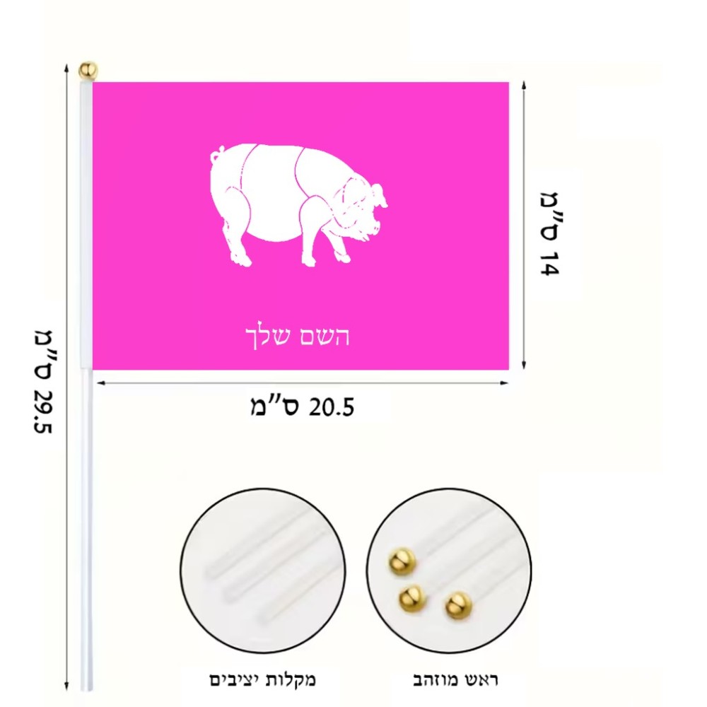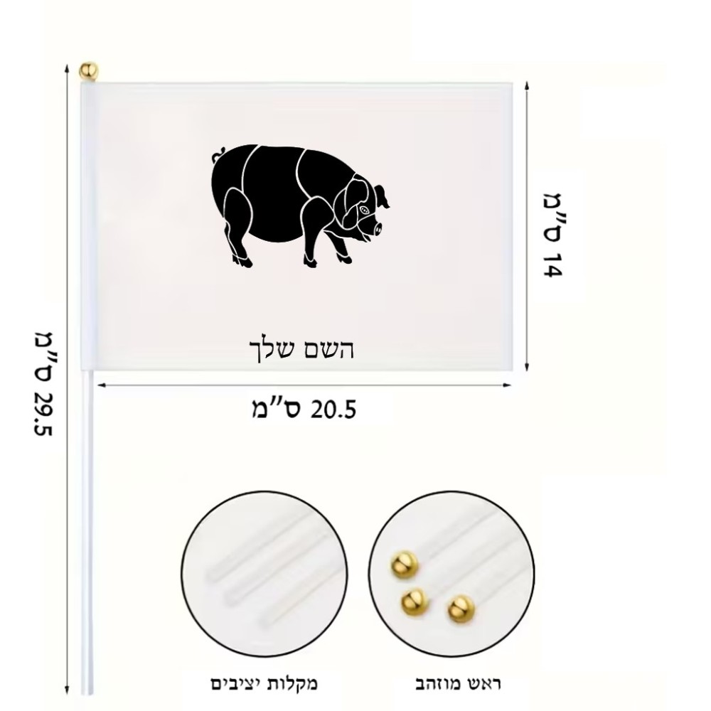 דיגלון בעיצוב אישי עם השם שלך בעיצוב חזיר גודל הדיגלון 20.5 × 14 ס"מ, ההדפסה מתבצעת בשני צידי הדגל, את השם המבוקש ניתן לציין בהזמנה, אם לא צויין אנחנו ניצור קשר לבירור.