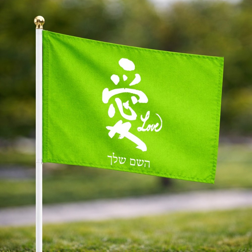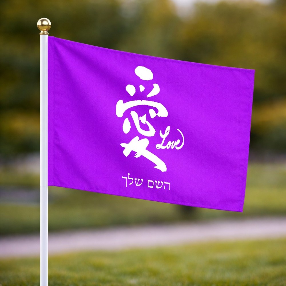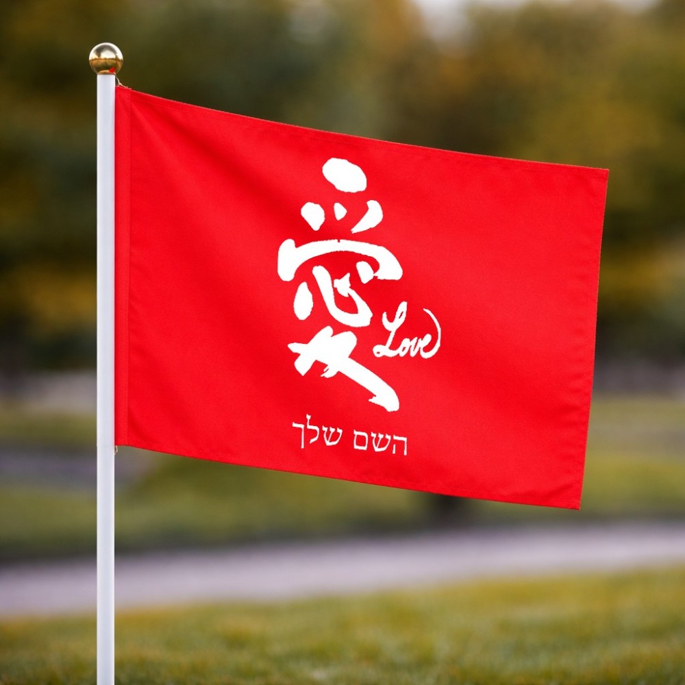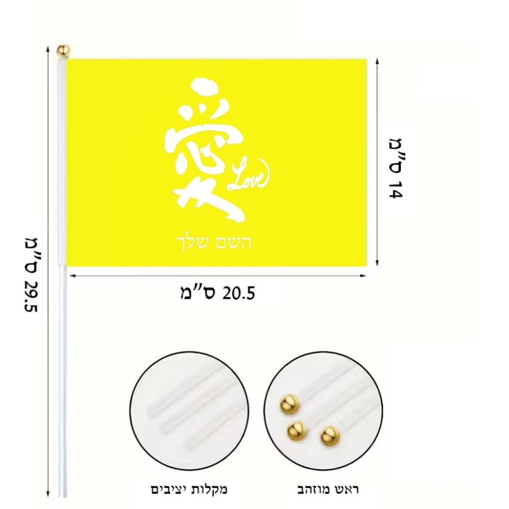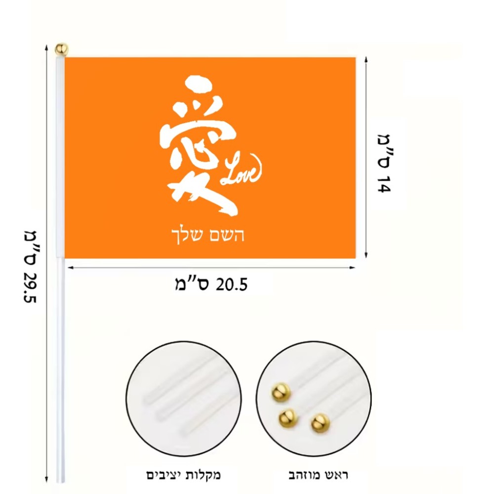 דיגלון בעיצוב אישי עם השם שלך בעיצוב אהבה באותיות יפניות גודל הדיגלון 20.5 × 14 ס"מ, ההדפסה מתבצעת בשני צידי הדגל, את השם המבוקש ניתן לציין בהזמנה, אם לא צויין אנחנו ניצור קשר לבירור.