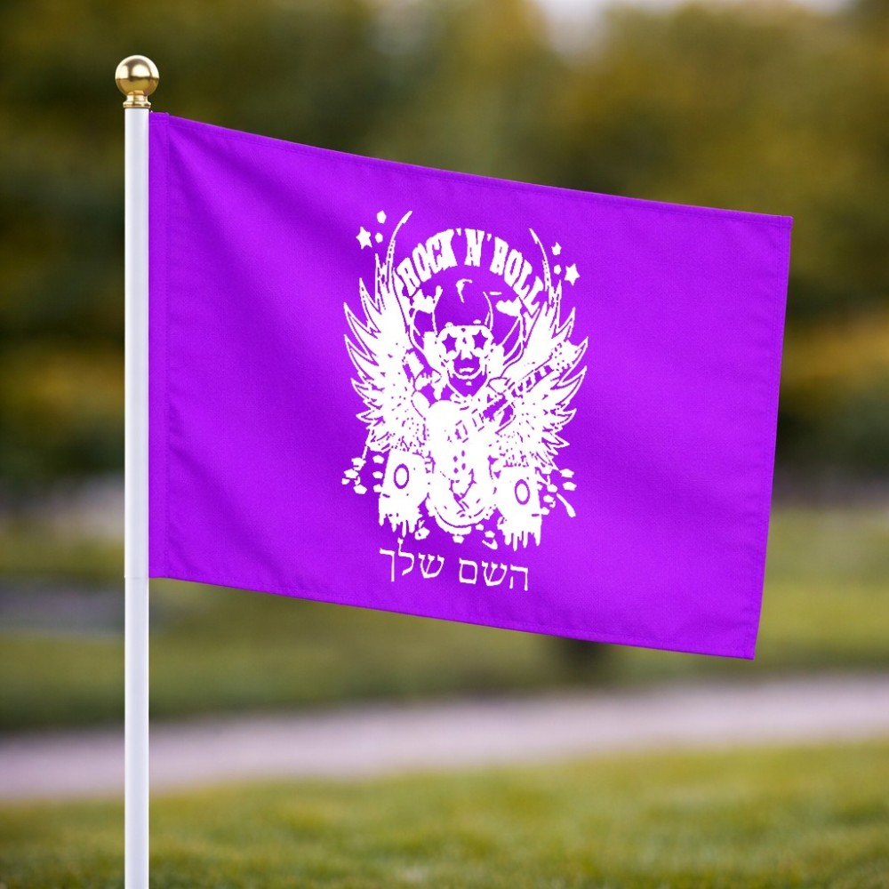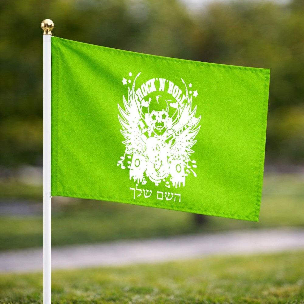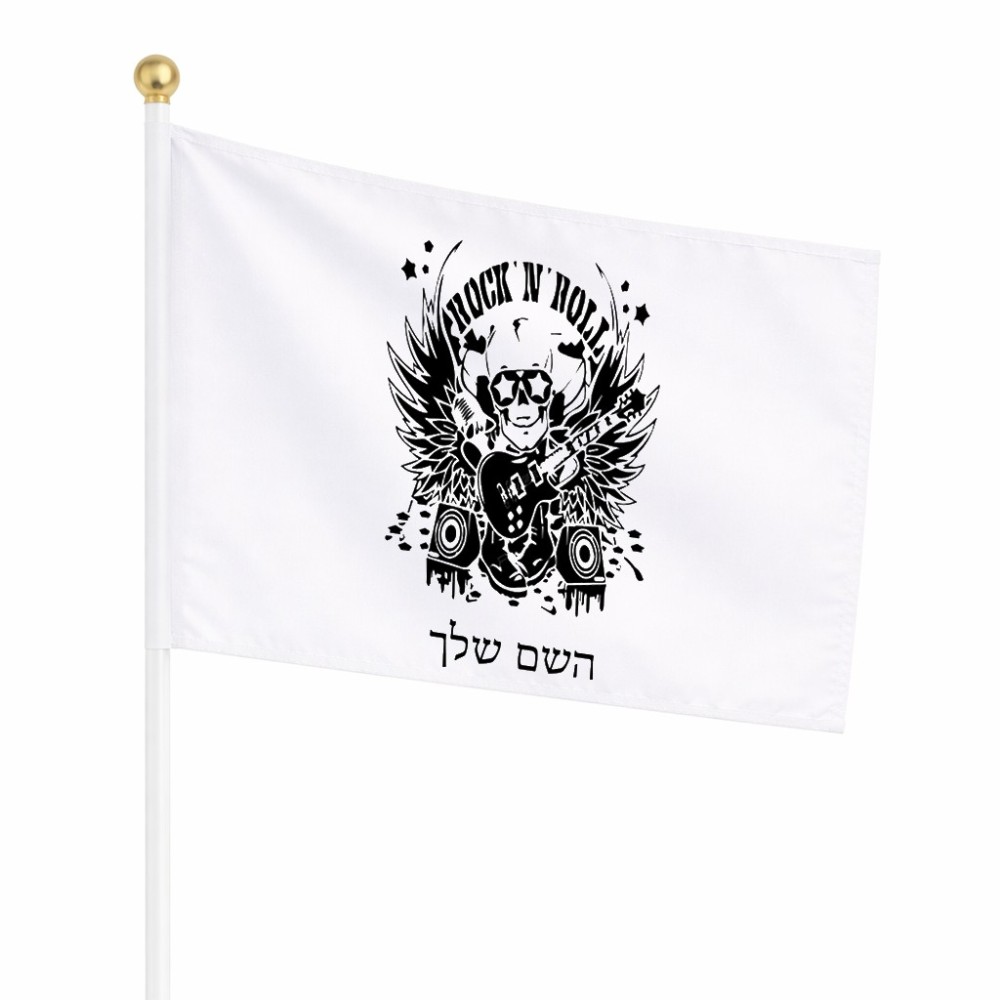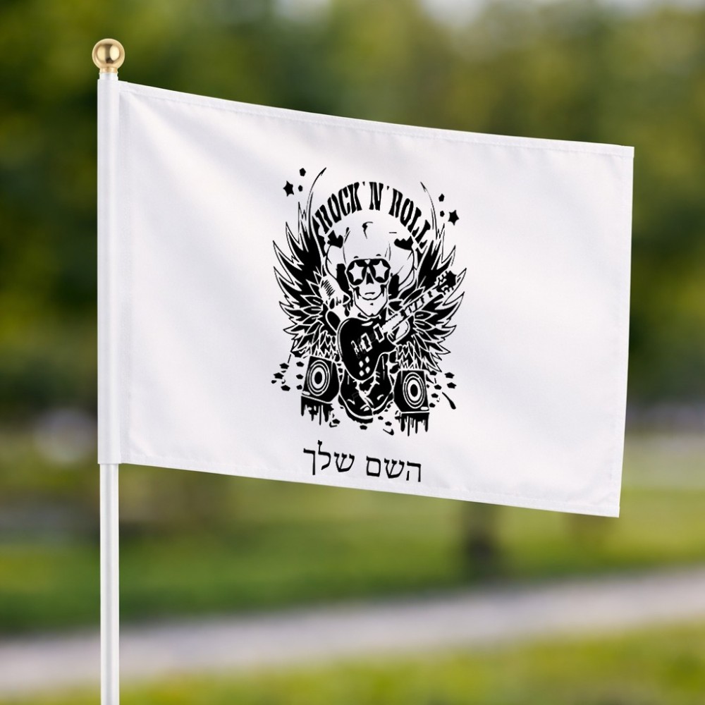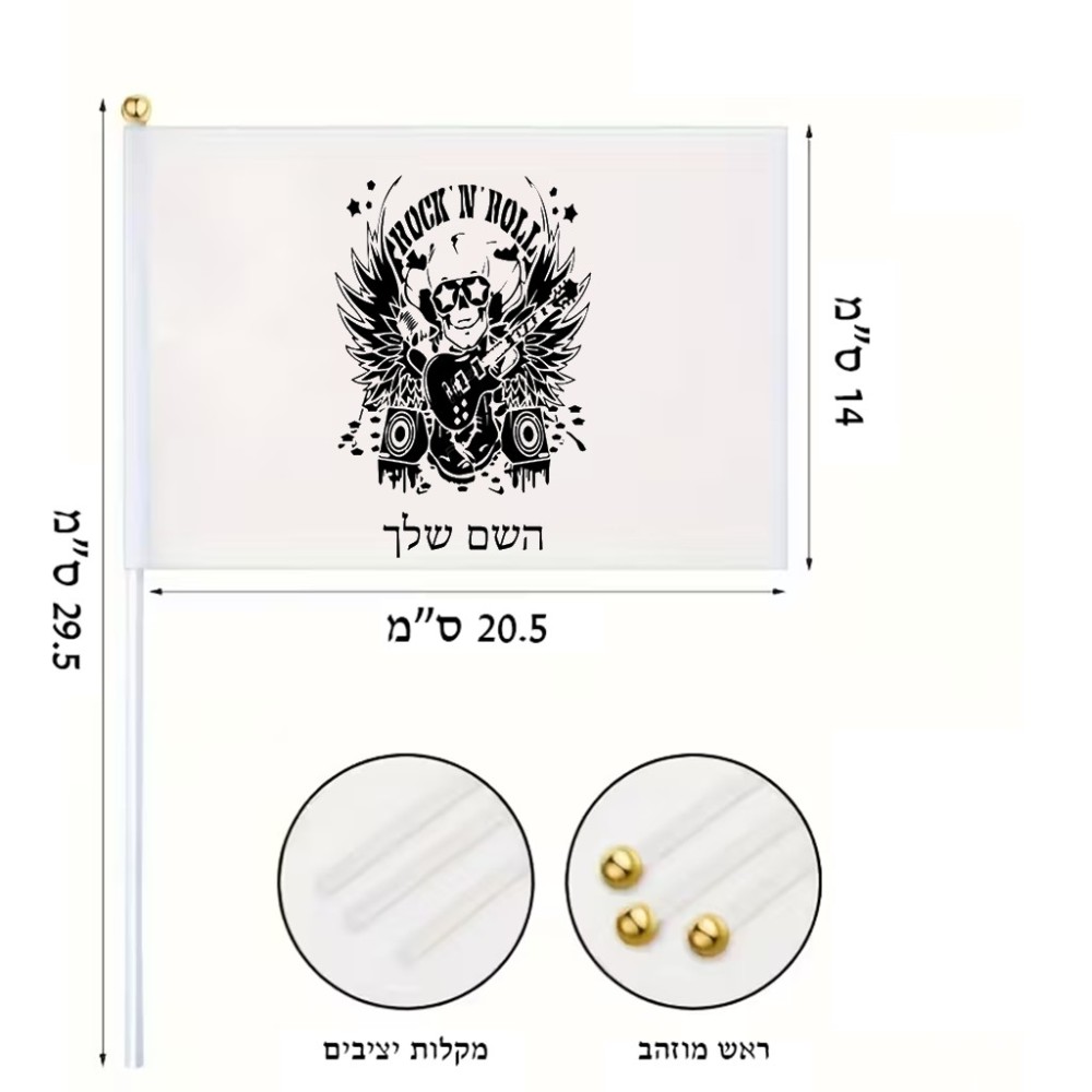 דיגלון בעיצוב אישי עם השם שלך בעיצוב רוקנרול גודל הדיגלון 20.5 × 14 ס"מ, ההדפסה מתבצעת בשני צידי הדגל, את השם המבוקש ניתן לציין בהזמנה, אם לא צויין אנחנו ניצור קשר לבירור.