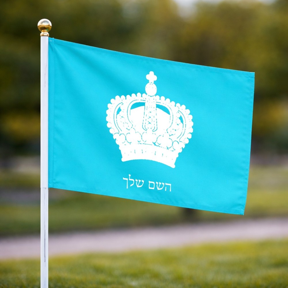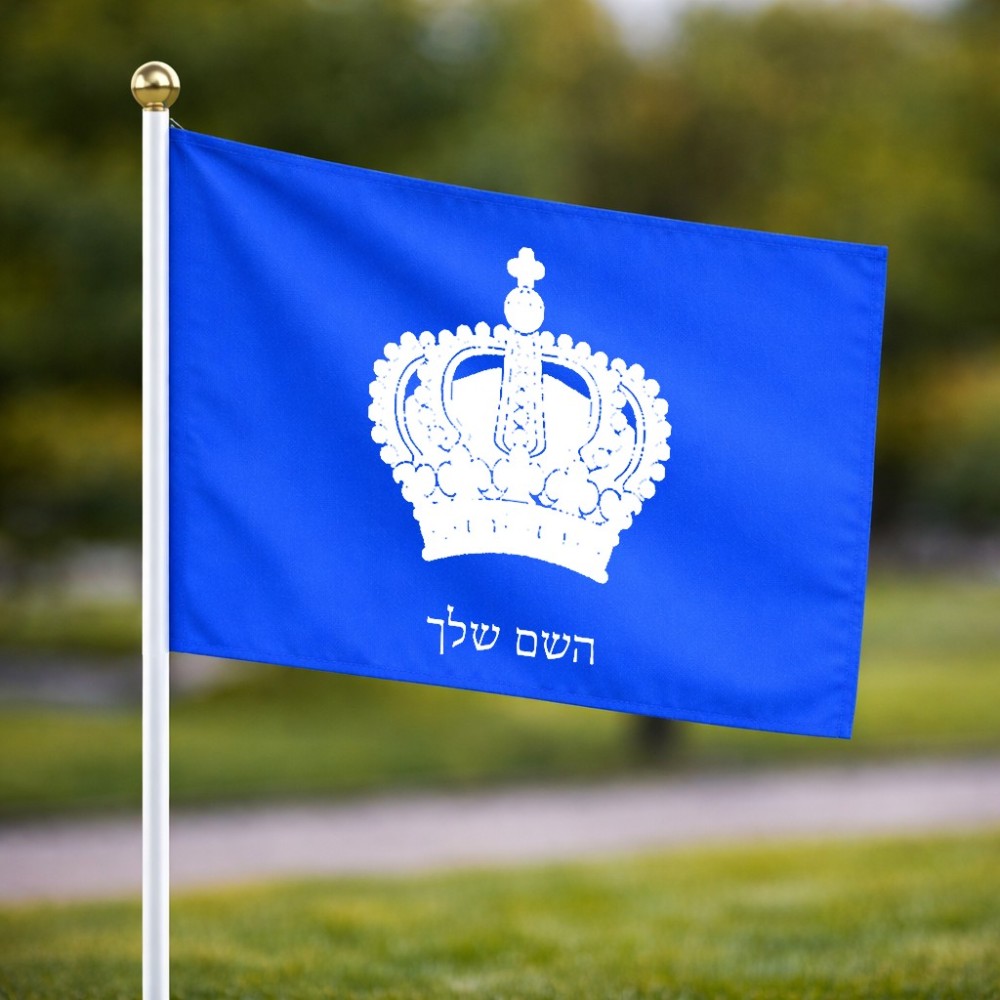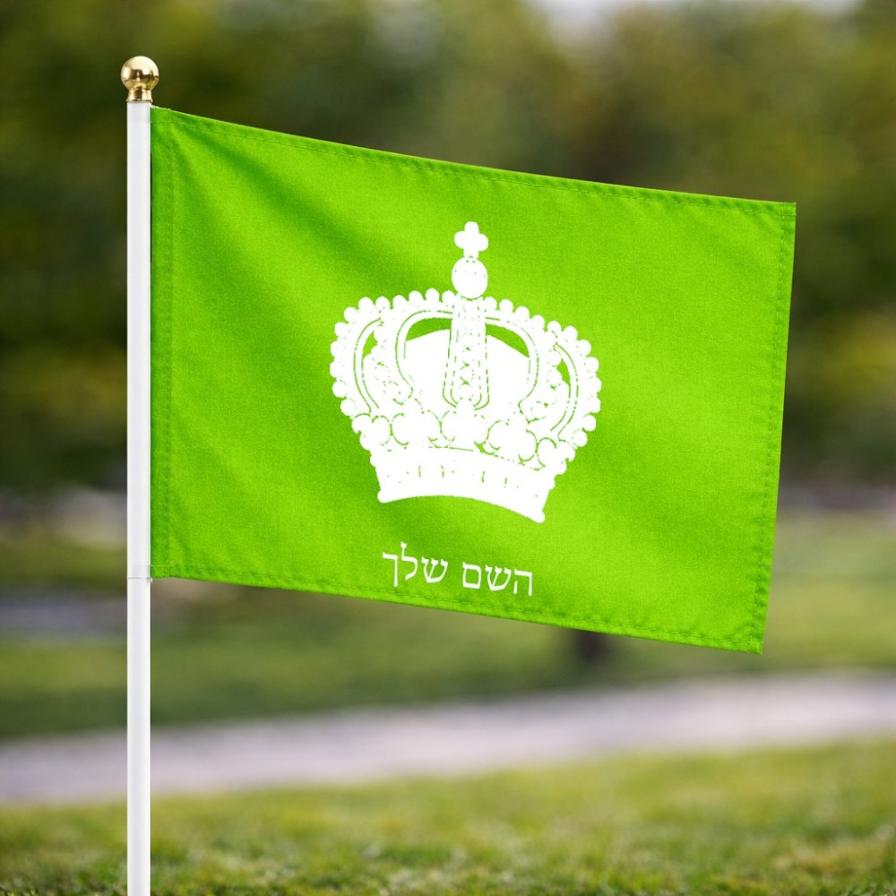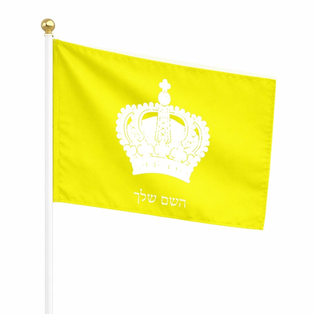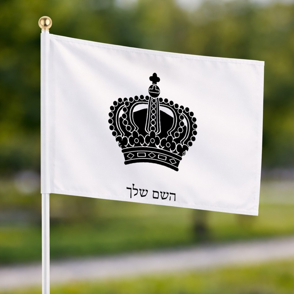 דיגלון בעיצוב אישי עם השם שלך בעיצוב כתר מלכותי גודל הדיגלון 20.5 × 14 ס"מ, ההדפסה מתבצעת בשני צידי הדגל, את השם המבוקש ניתן לציין בהזמנה, אם לא צויין אנחנו ניצור קשר לבירור.