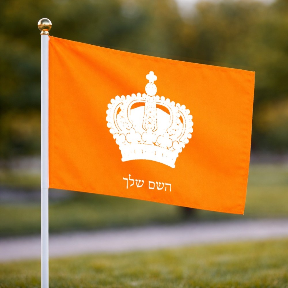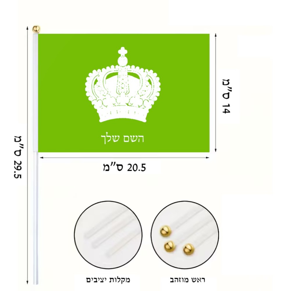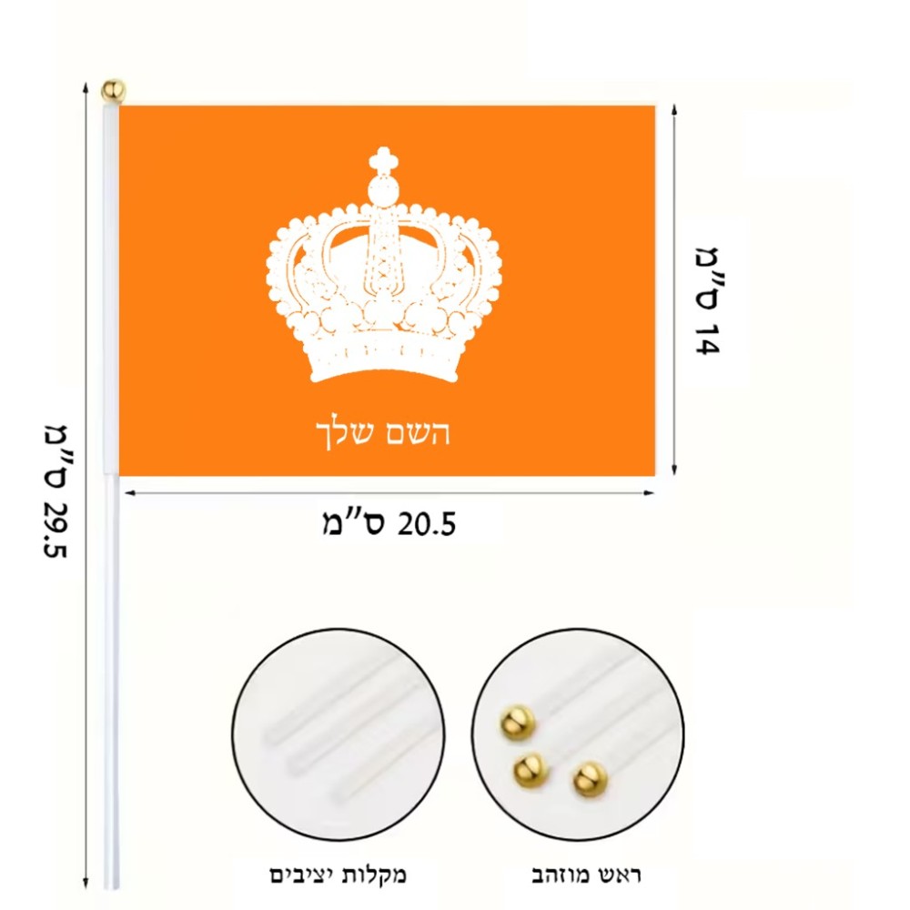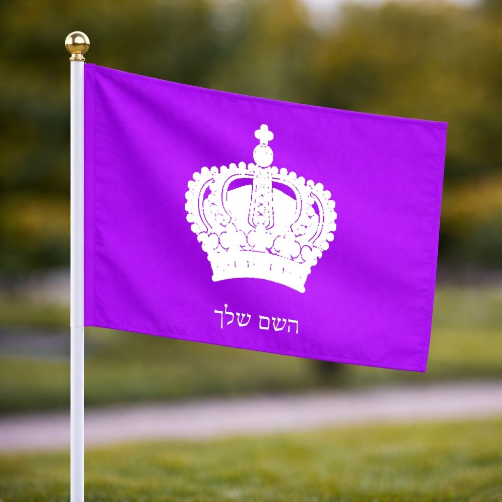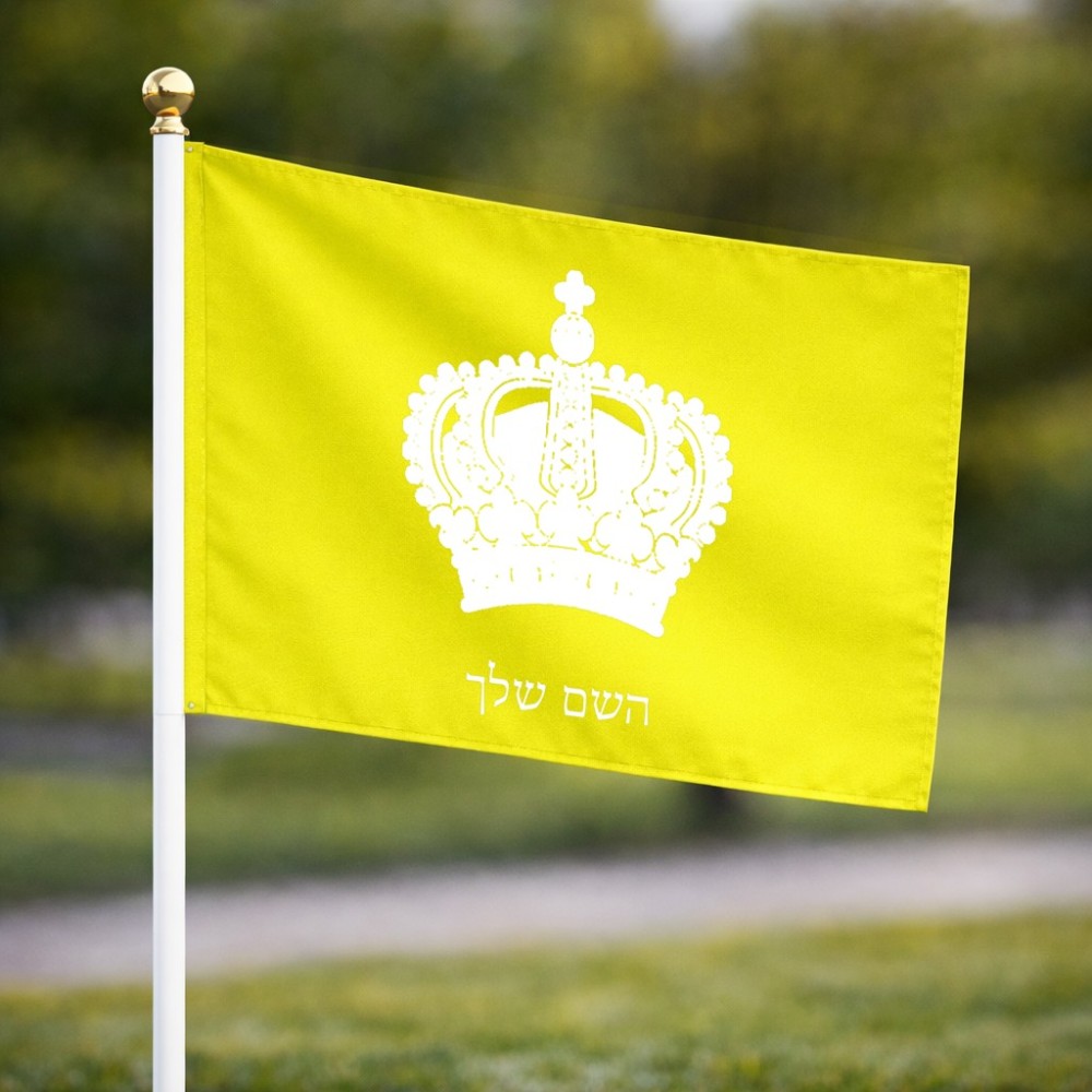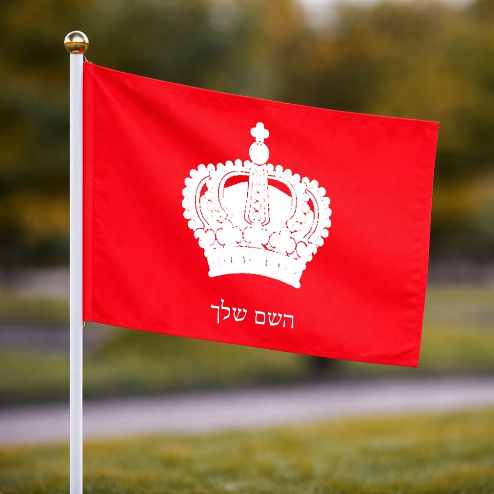 דיגלון בעיצוב אישי עם השם שלך בעיצוב כתר מלכותי גודל הדיגלון 20.5 × 14 ס"מ, ההדפסה מתבצעת בשני צידי הדגל, את השם המבוקש ניתן לציין בהזמנה, אם לא צויין אנחנו ניצור קשר לבירור.