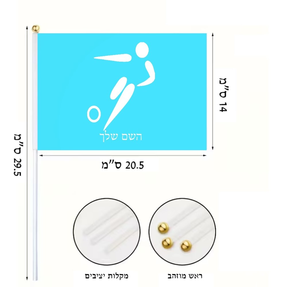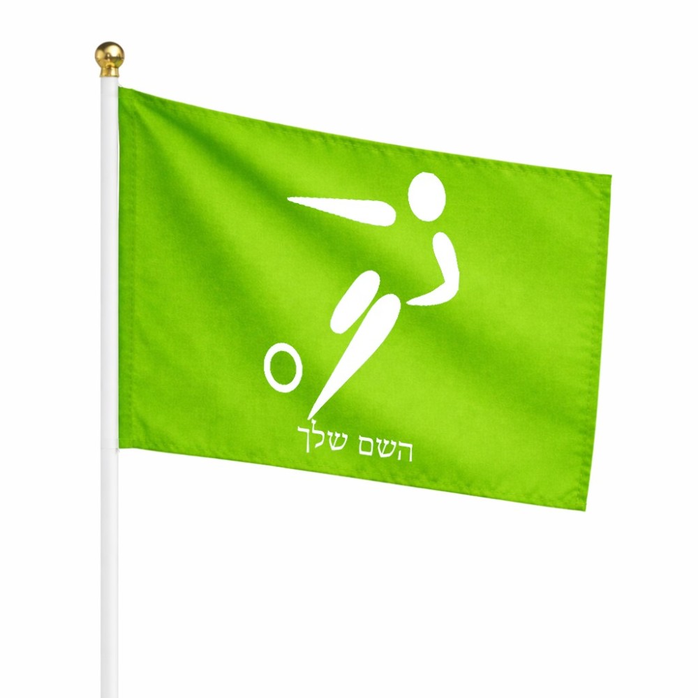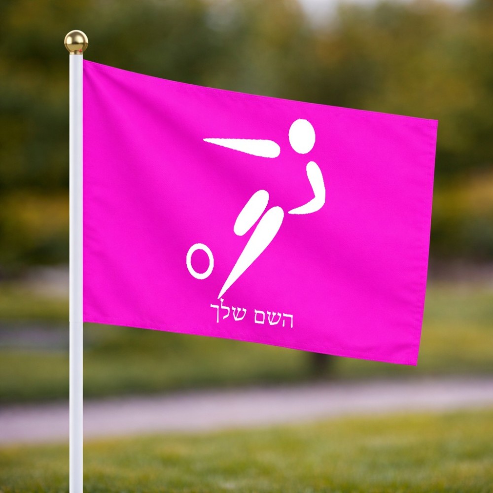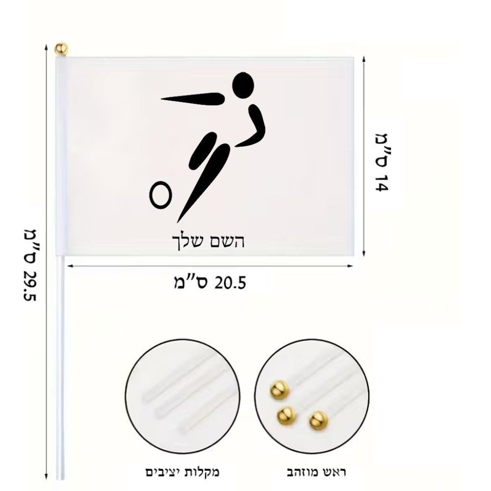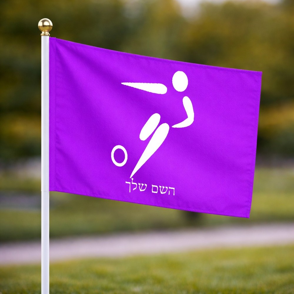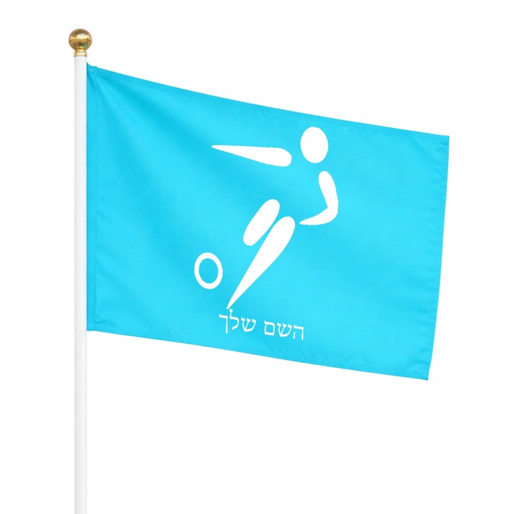 דיגלון בעיצוב אישי עם השם שלך בעיצוב כדורגל אולימפי גודל הדיגלון 20.5 × 14 ס"מ, ההדפסה מתבצעת בשני צידי הדגל, את השם המבוקש ניתן לציין בהזמנה, אם לא צויין אנחנו ניצור קשר לבירור.