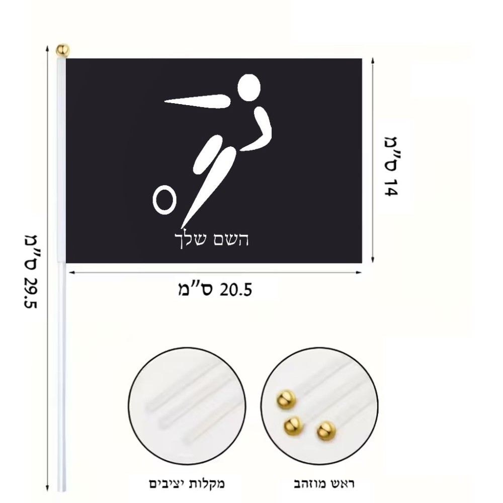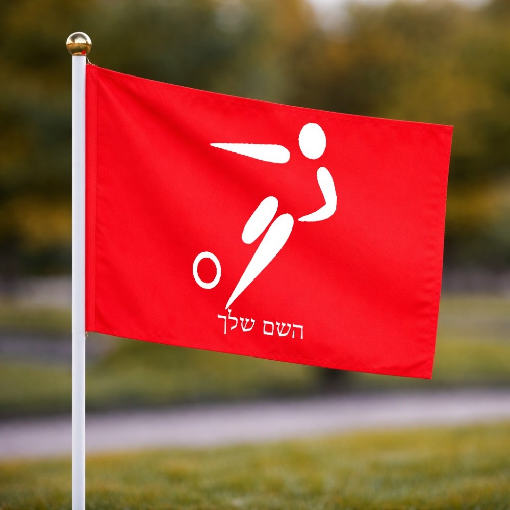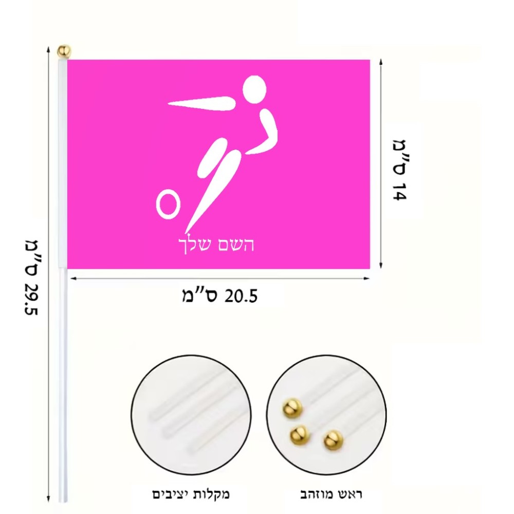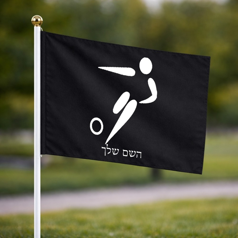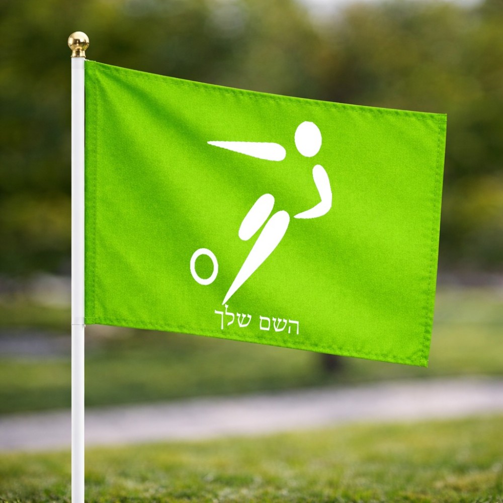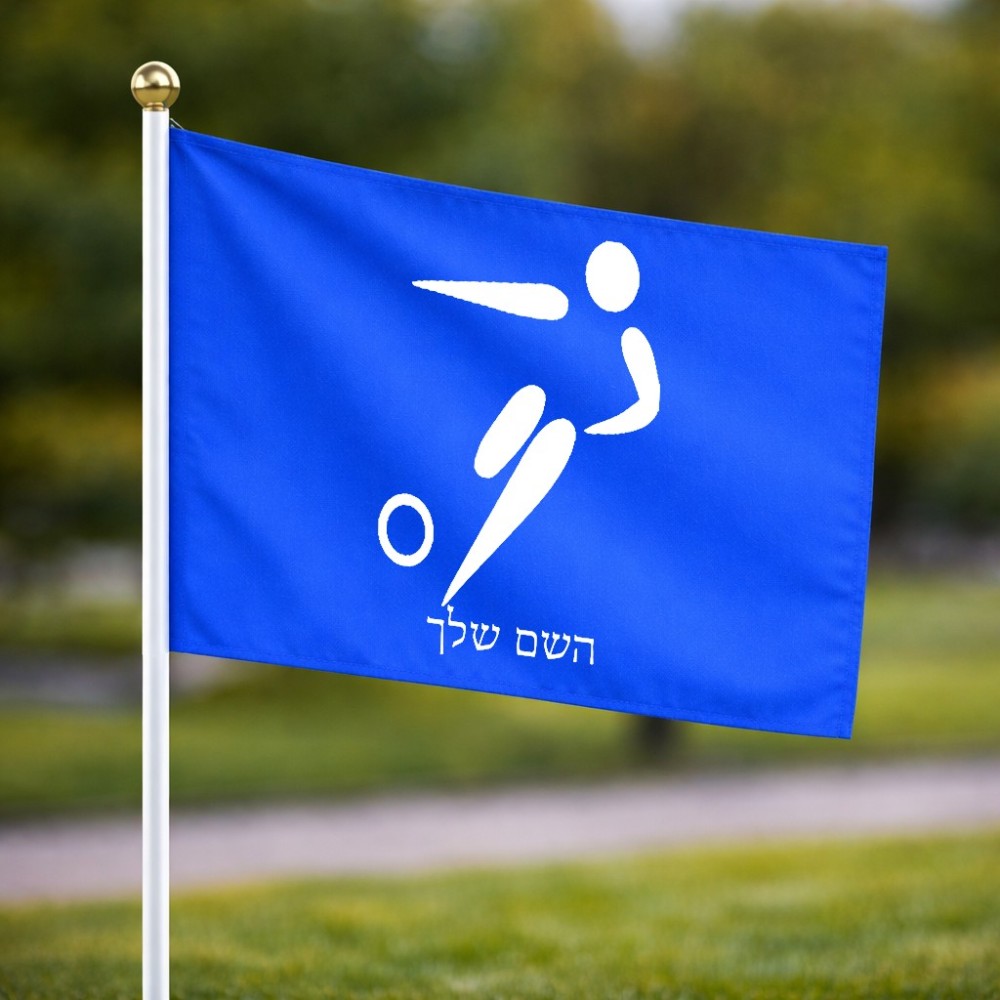 דיגלון בעיצוב אישי עם השם שלך בעיצוב כדורגל אולימפי גודל הדיגלון 20.5 × 14 ס"מ, ההדפסה מתבצעת בשני צידי הדגל, את השם המבוקש ניתן לציין בהזמנה, אם לא צויין אנחנו ניצור קשר לבירור.