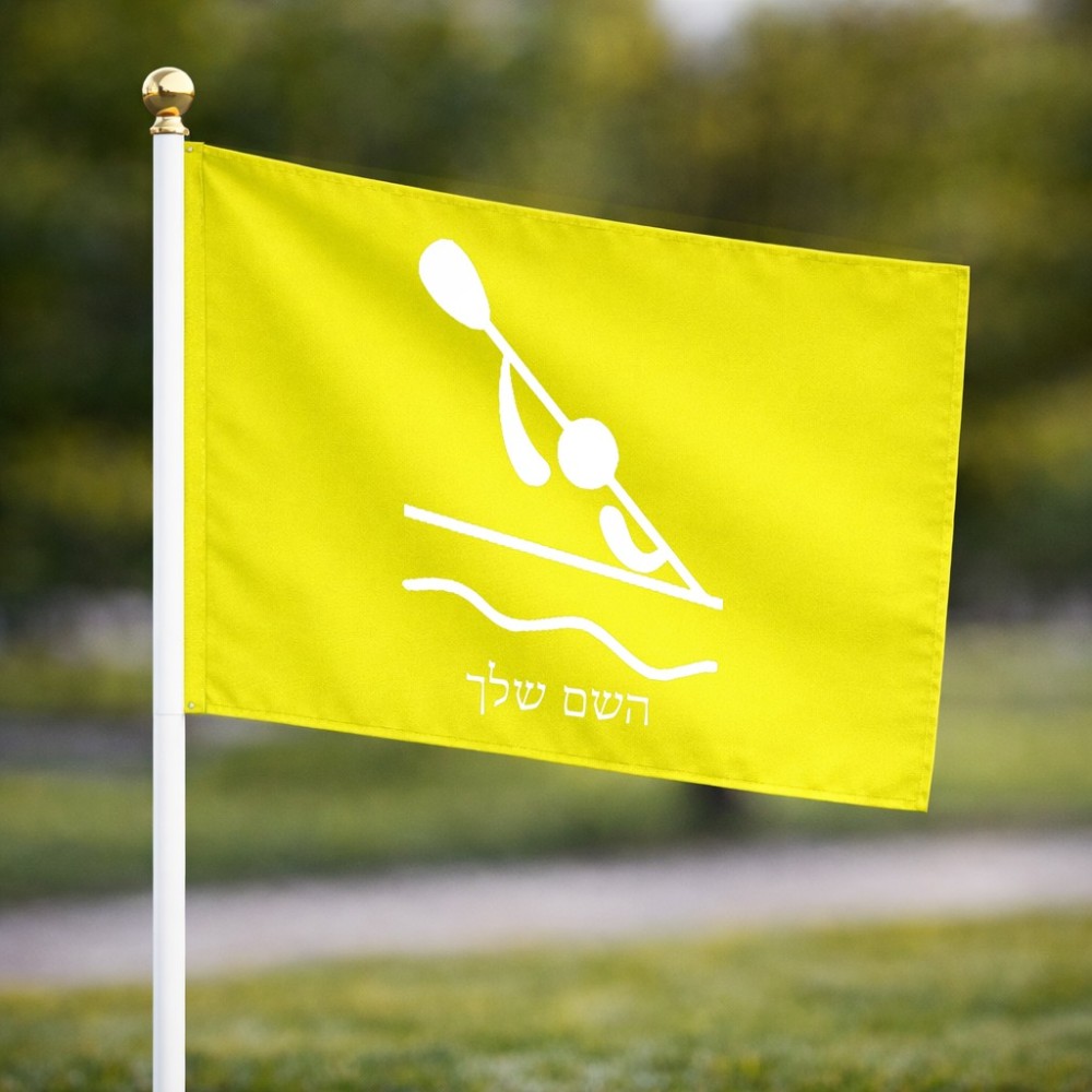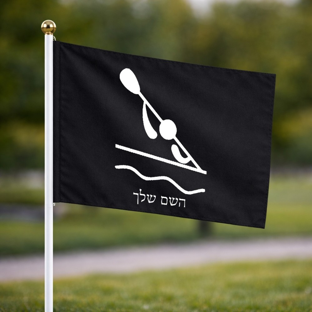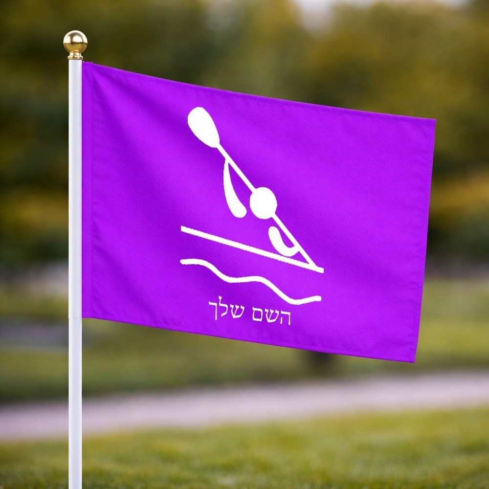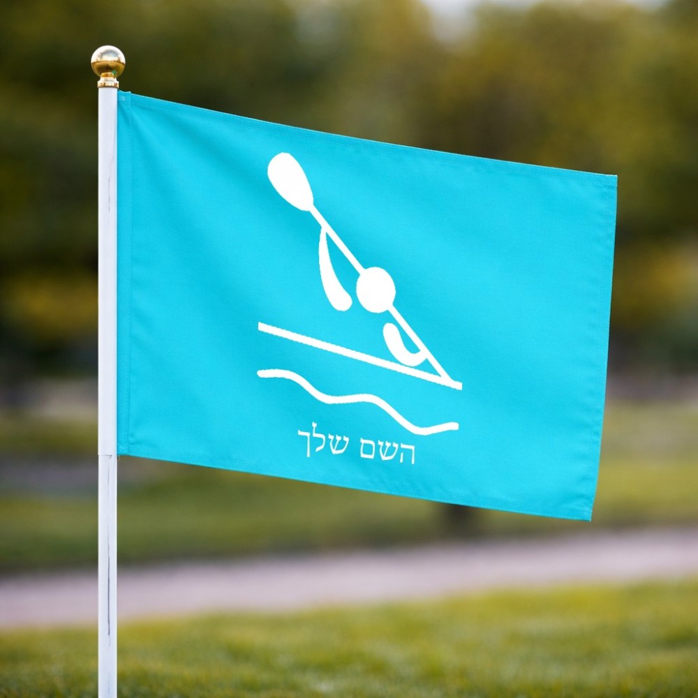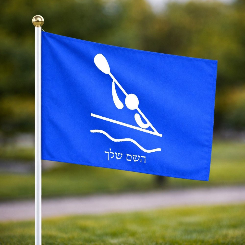 דיגלון בעיצוב אישי עם השם שלך בעיצוב קיאק אולימפי גודל הדיגלון 20.5 × 14 ס"מ, ההדפסה מתבצעת בשני צידי הדגל, את השם המבוקש ניתן לציין בהזמנה, אם לא צויין אנחנו ניצור קשר לבירור.