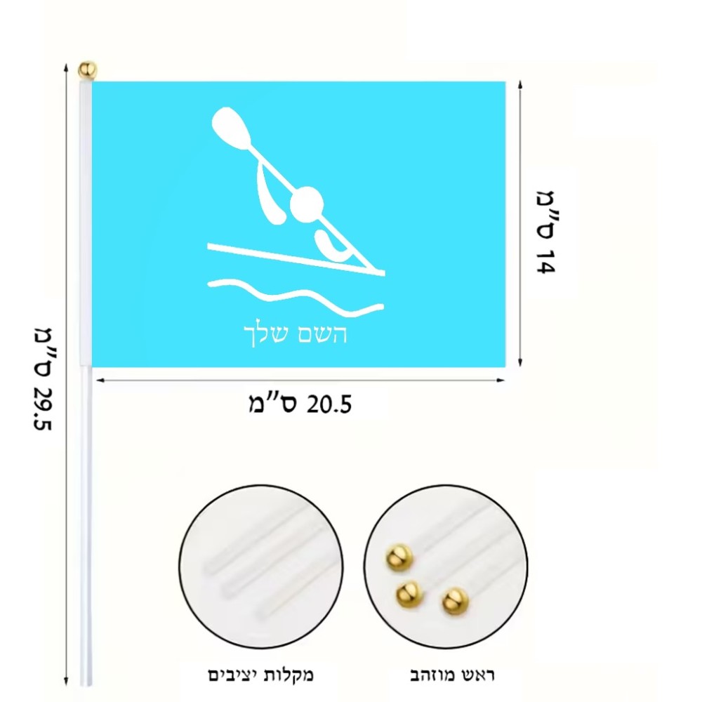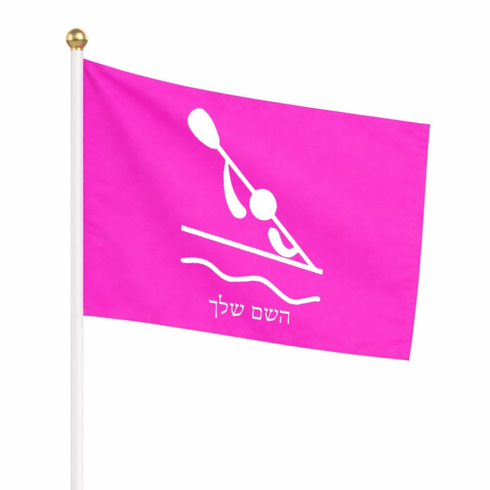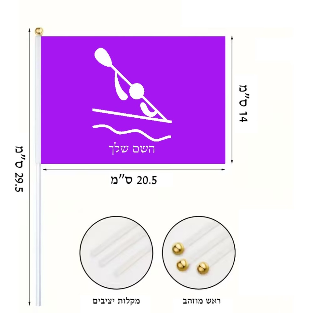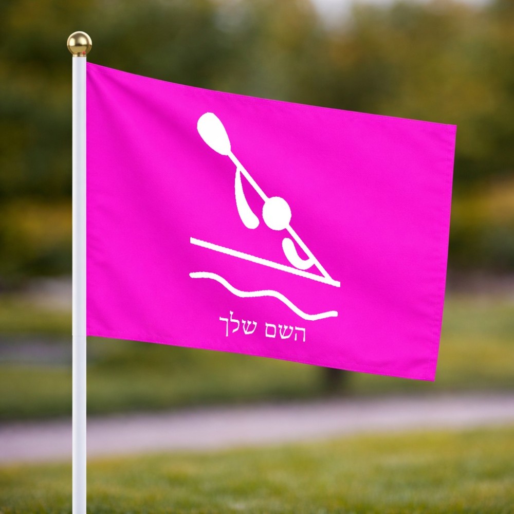 דיגלון בעיצוב אישי עם השם שלך בעיצוב קיאק אולימפי גודל הדיגלון 20.5 × 14 ס"מ, ההדפסה מתבצעת בשני צידי הדגל, את השם המבוקש ניתן לציין בהזמנה, אם לא צויין אנחנו ניצור קשר לבירור.