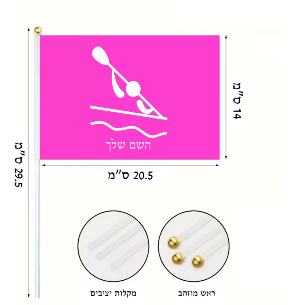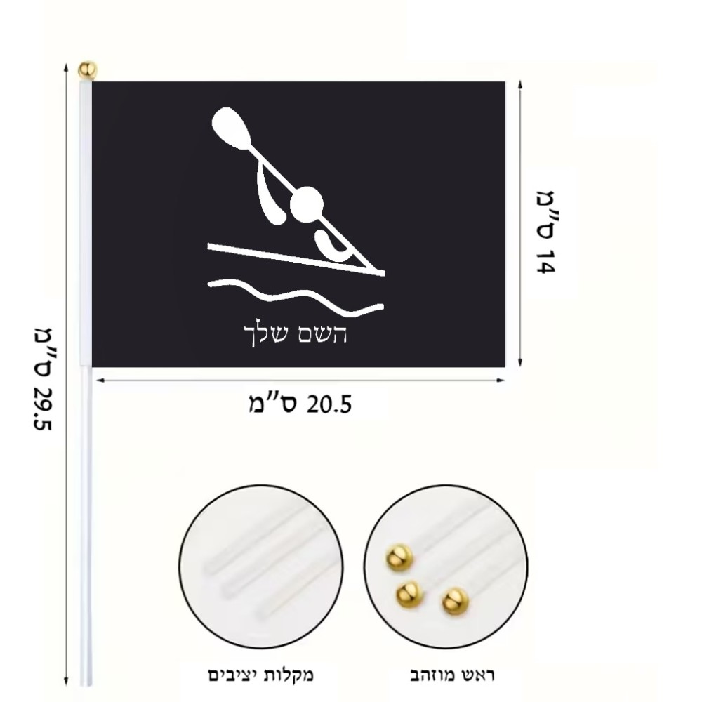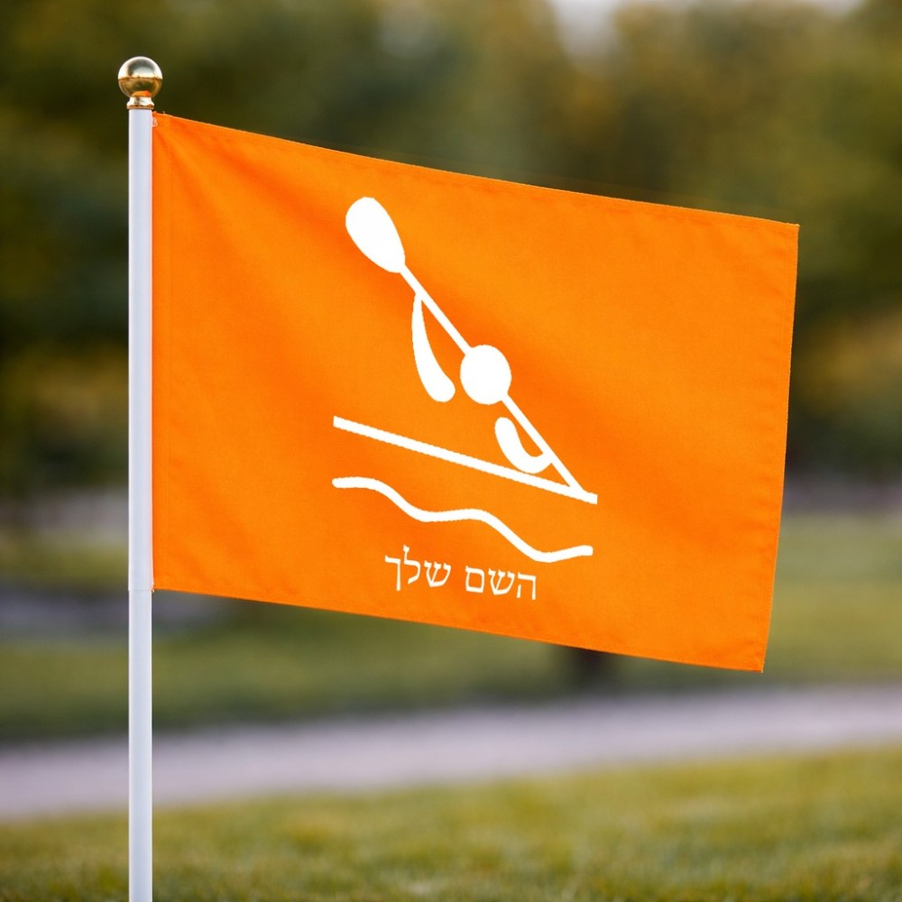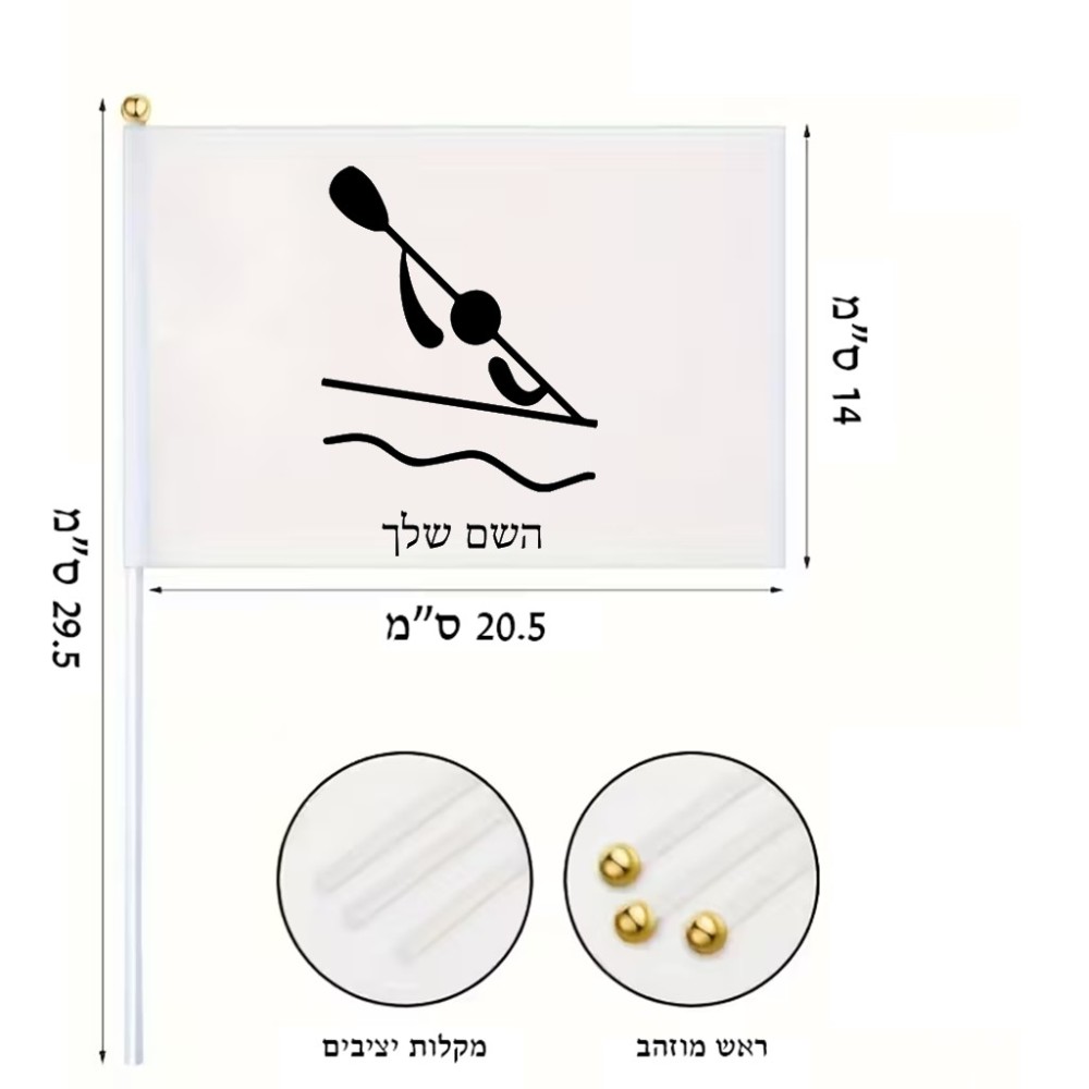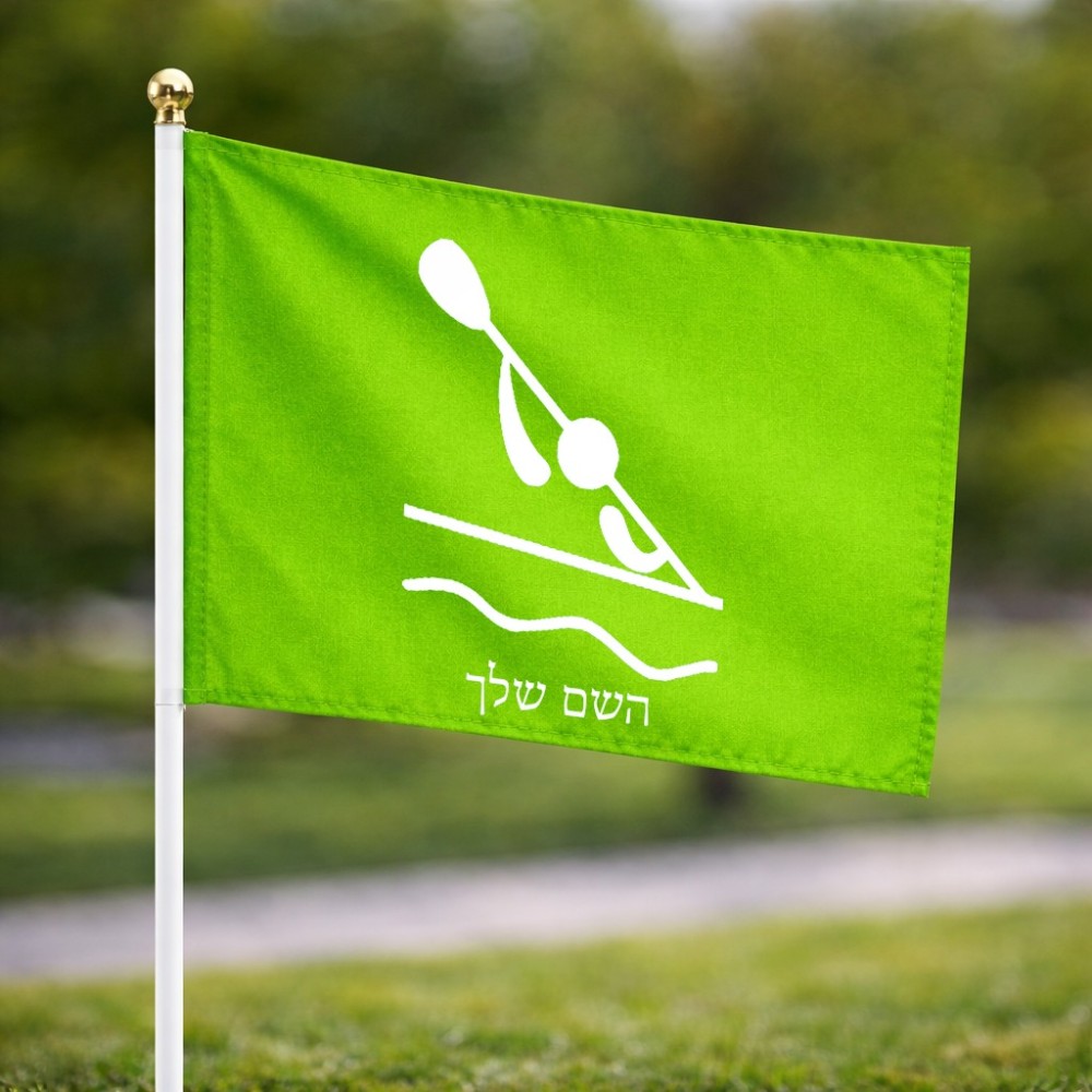 דיגלון בעיצוב אישי עם השם שלך בעיצוב קיאק אולימפי גודל הדיגלון 20.5 × 14 ס"מ, ההדפסה מתבצעת בשני צידי הדגל, את השם המבוקש ניתן לציין בהזמנה, אם לא צויין אנחנו ניצור קשר לבירור.