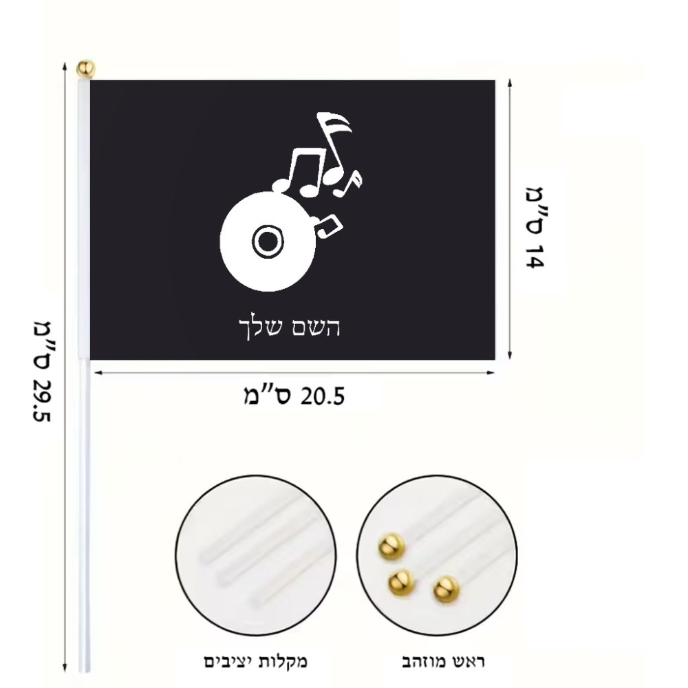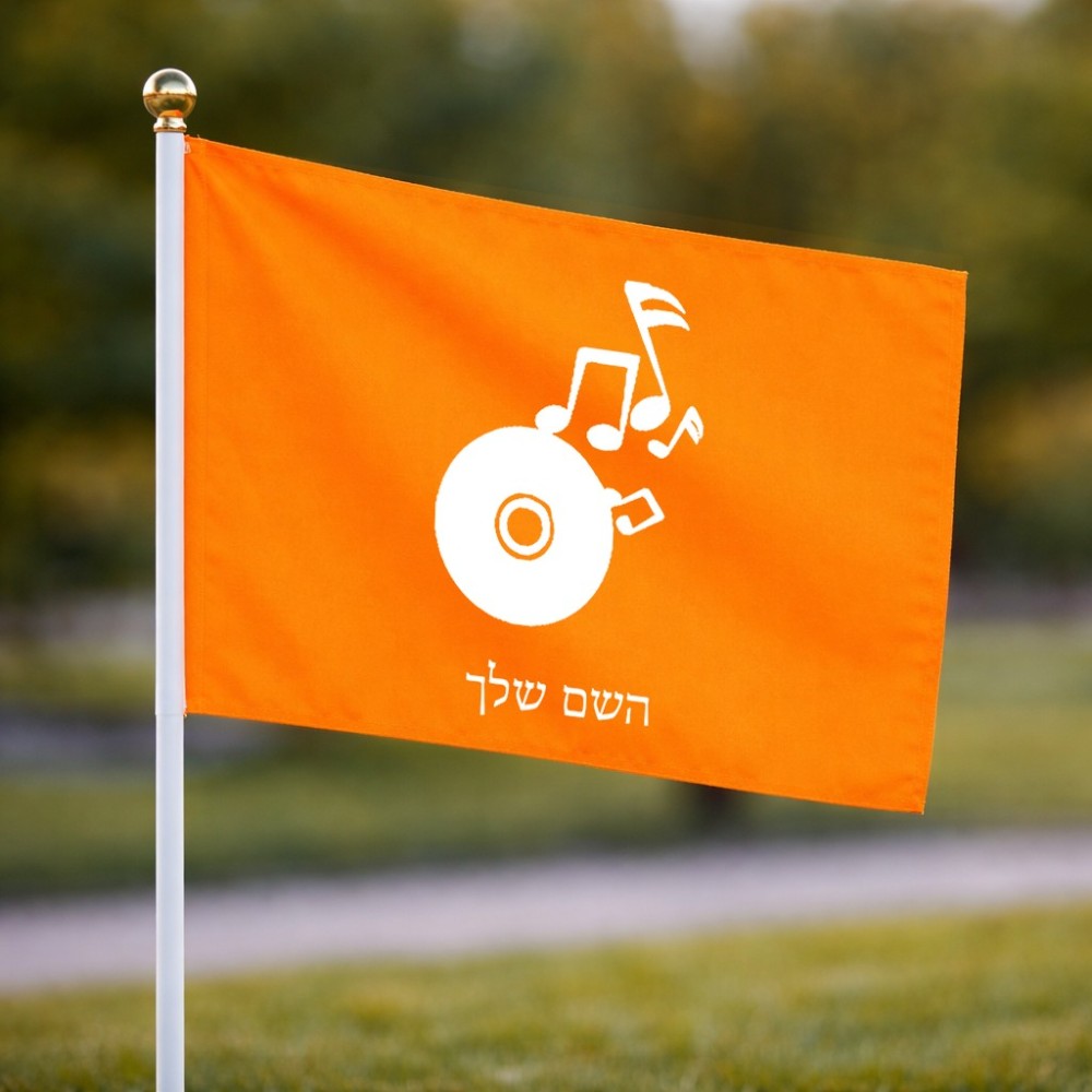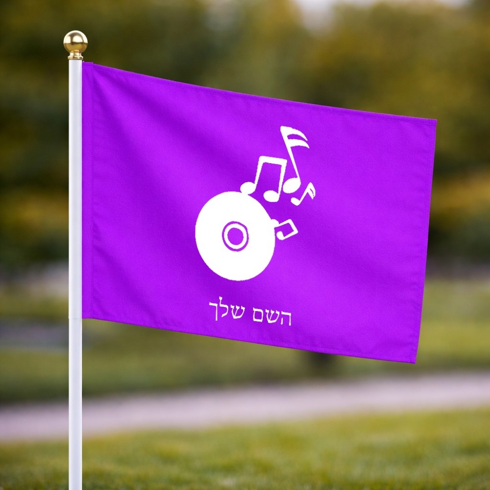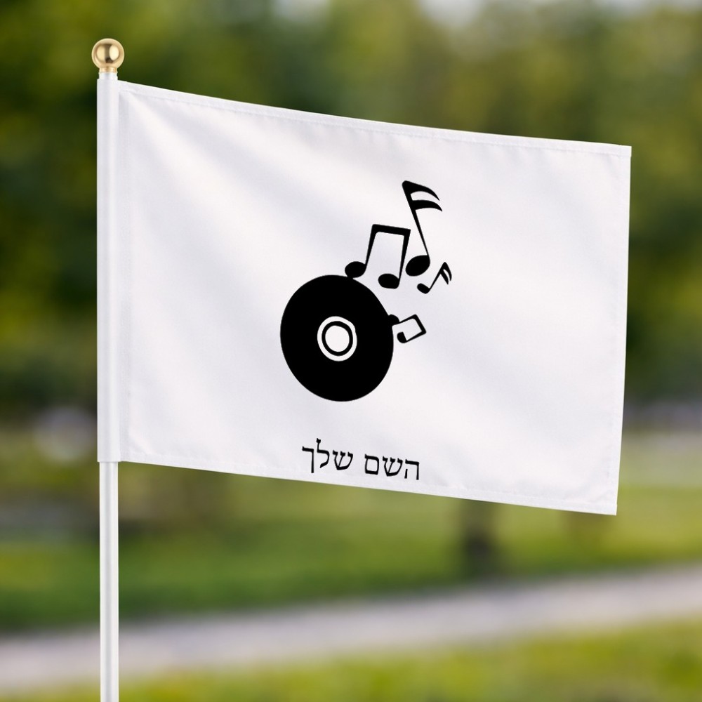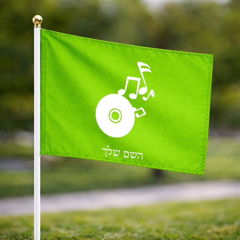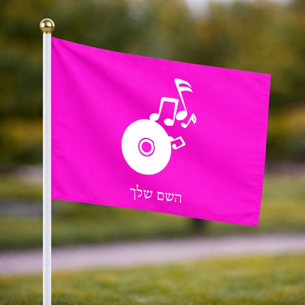 דיגלון בעיצוב אישי עם השם שלך בעיצוב תקליטור - אזור מוזיקה גודל הדיגלון 20.5 × 14 ס"מ, ההדפסה מתבצעת בשני צידי הדגל, את השם המבוקש ניתן לציין בהזמנה, אם לא צויין אנחנו ניצור קשר לבירור.