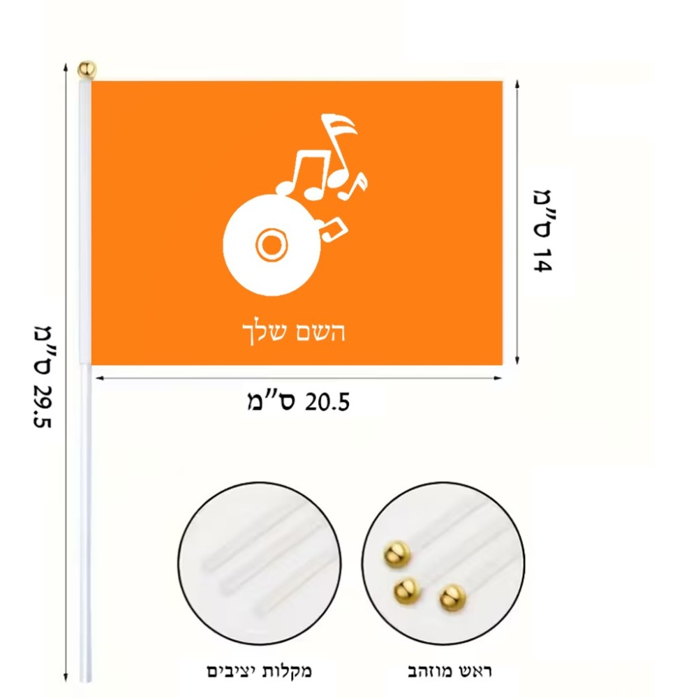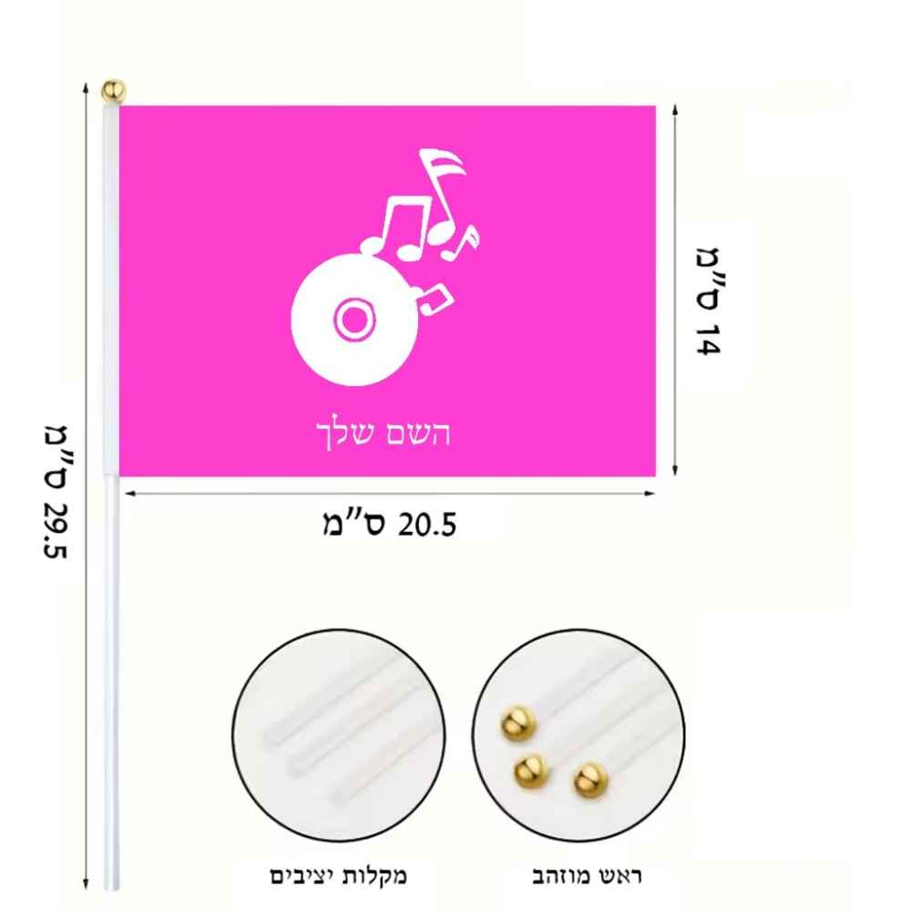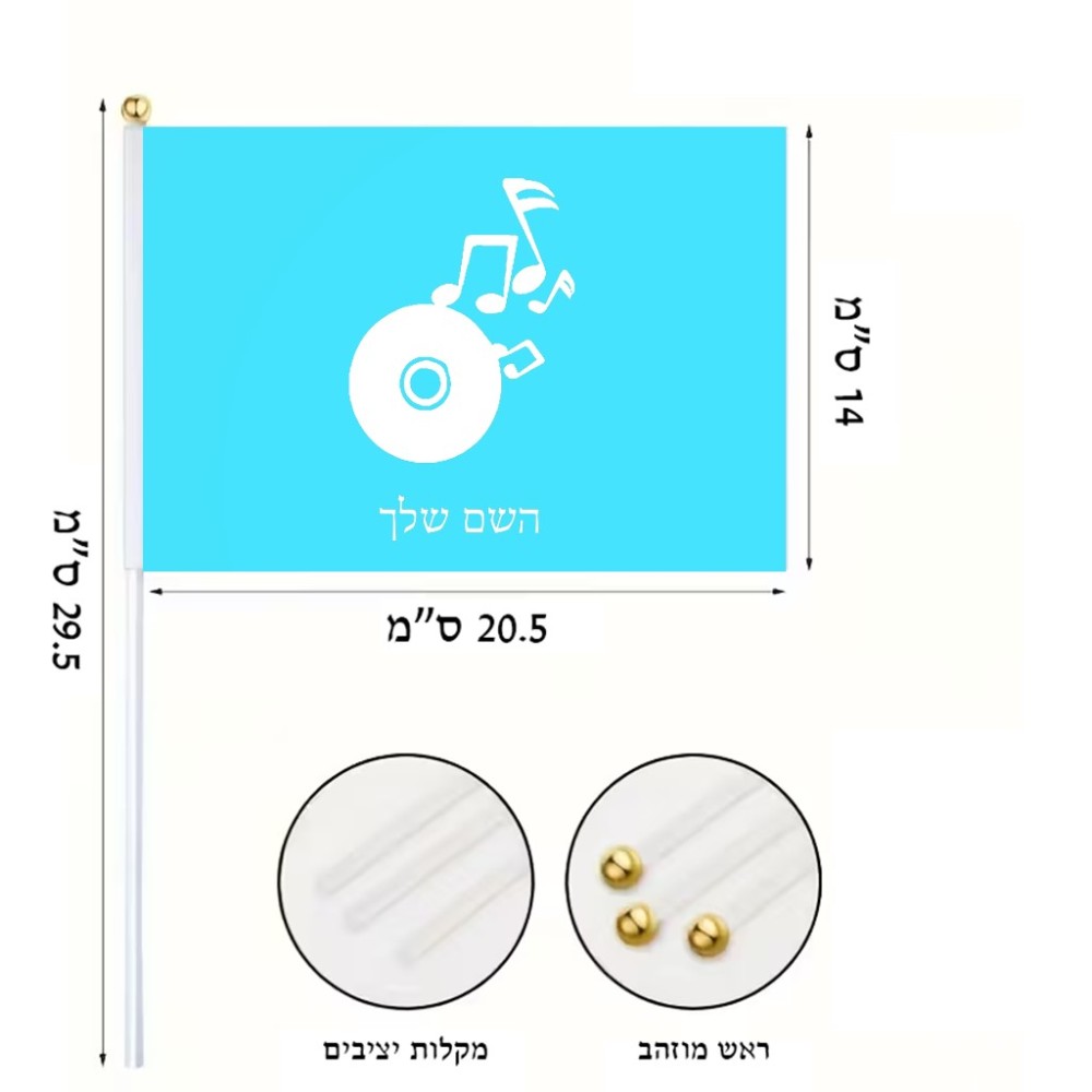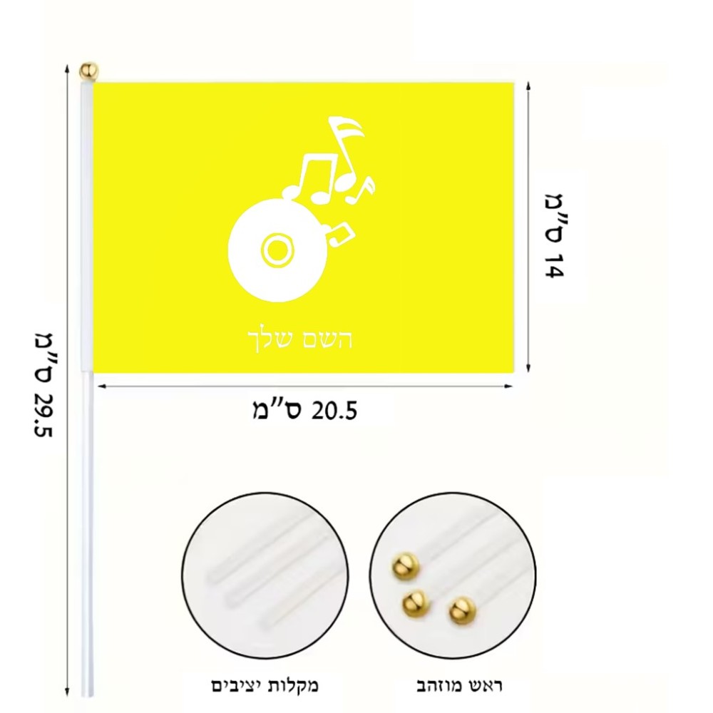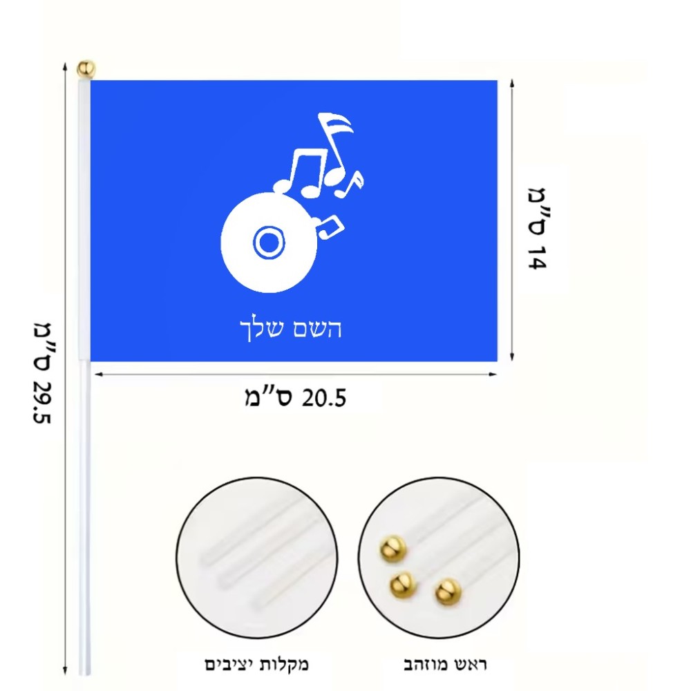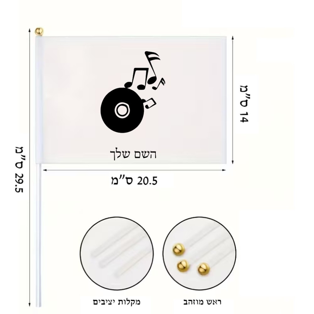 דיגלון בעיצוב אישי עם השם שלך בעיצוב תקליטור - אזור מוזיקה גודל הדיגלון 20.5 × 14 ס"מ, ההדפסה מתבצעת בשני צידי הדגל, את השם המבוקש ניתן לציין בהזמנה, אם לא צויין אנחנו ניצור קשר לבירור.