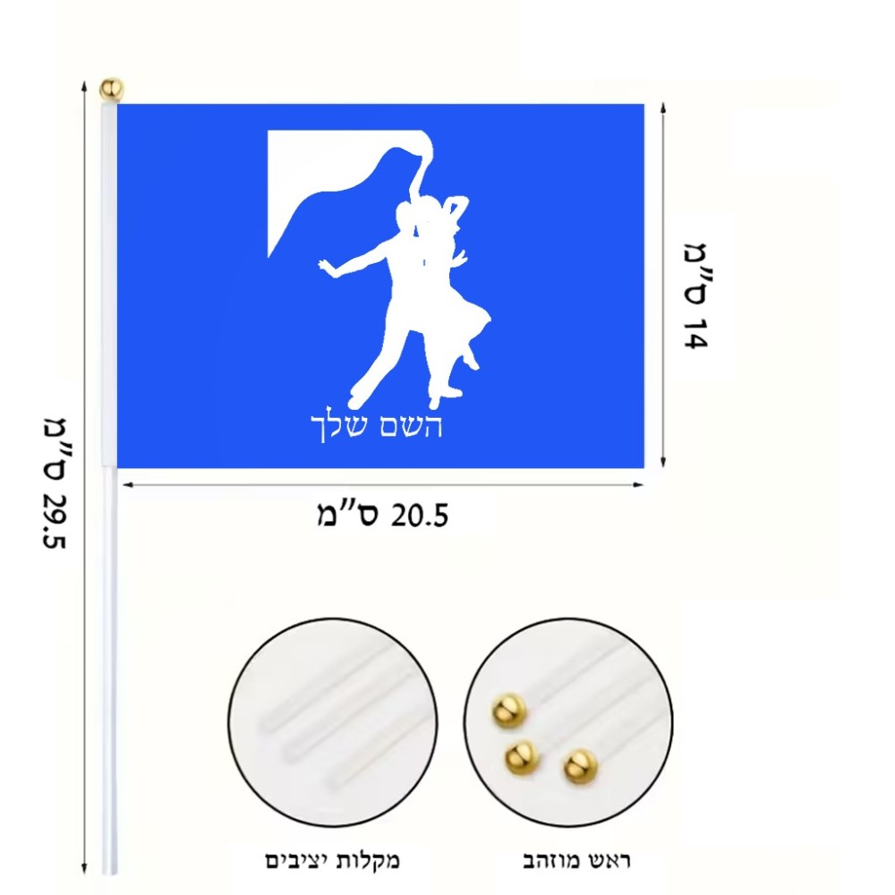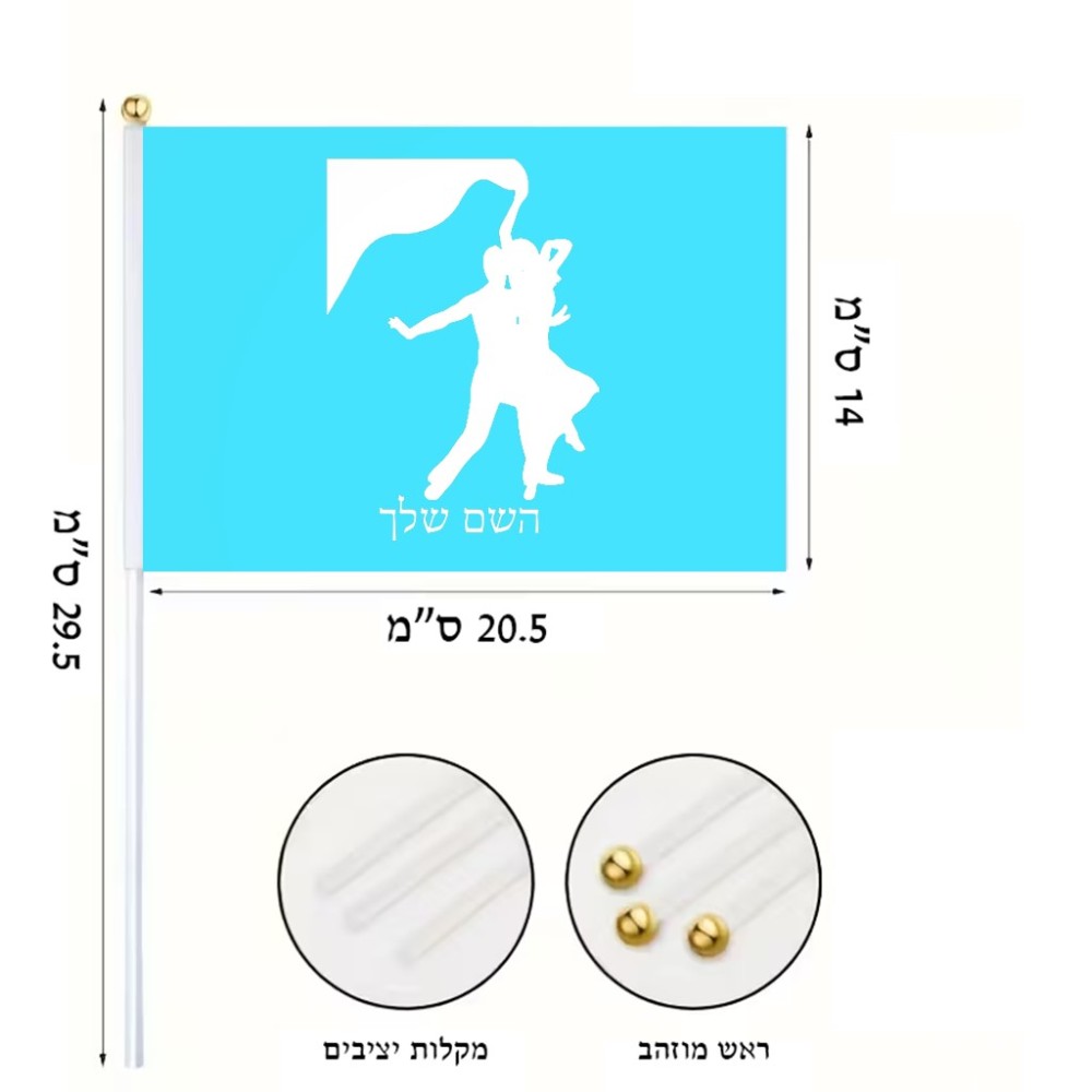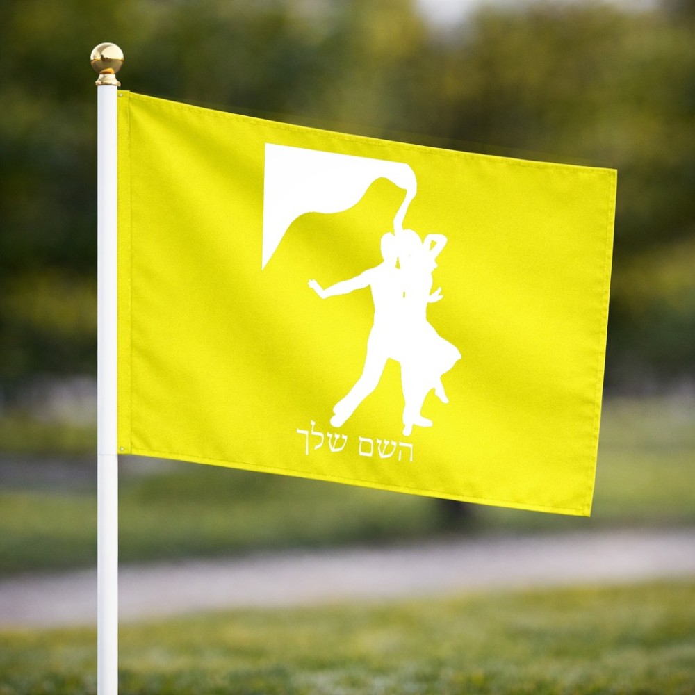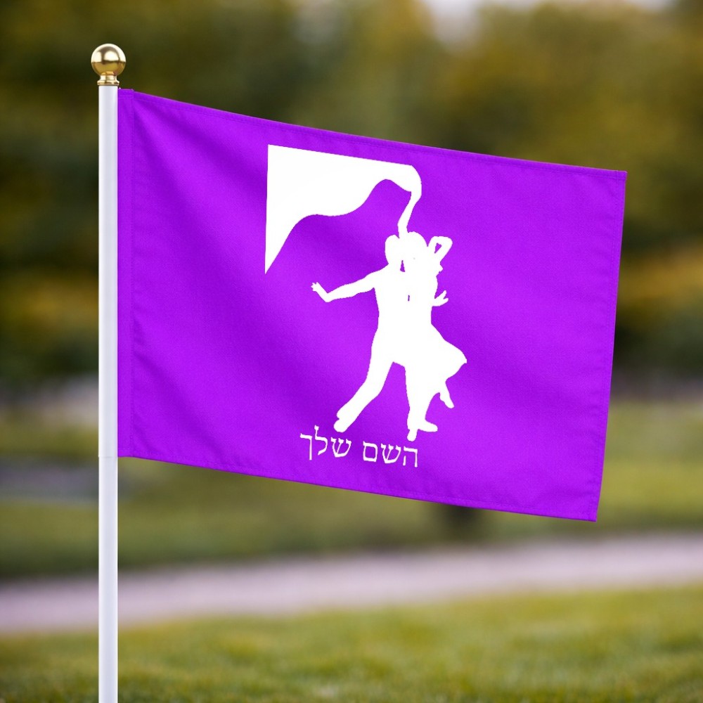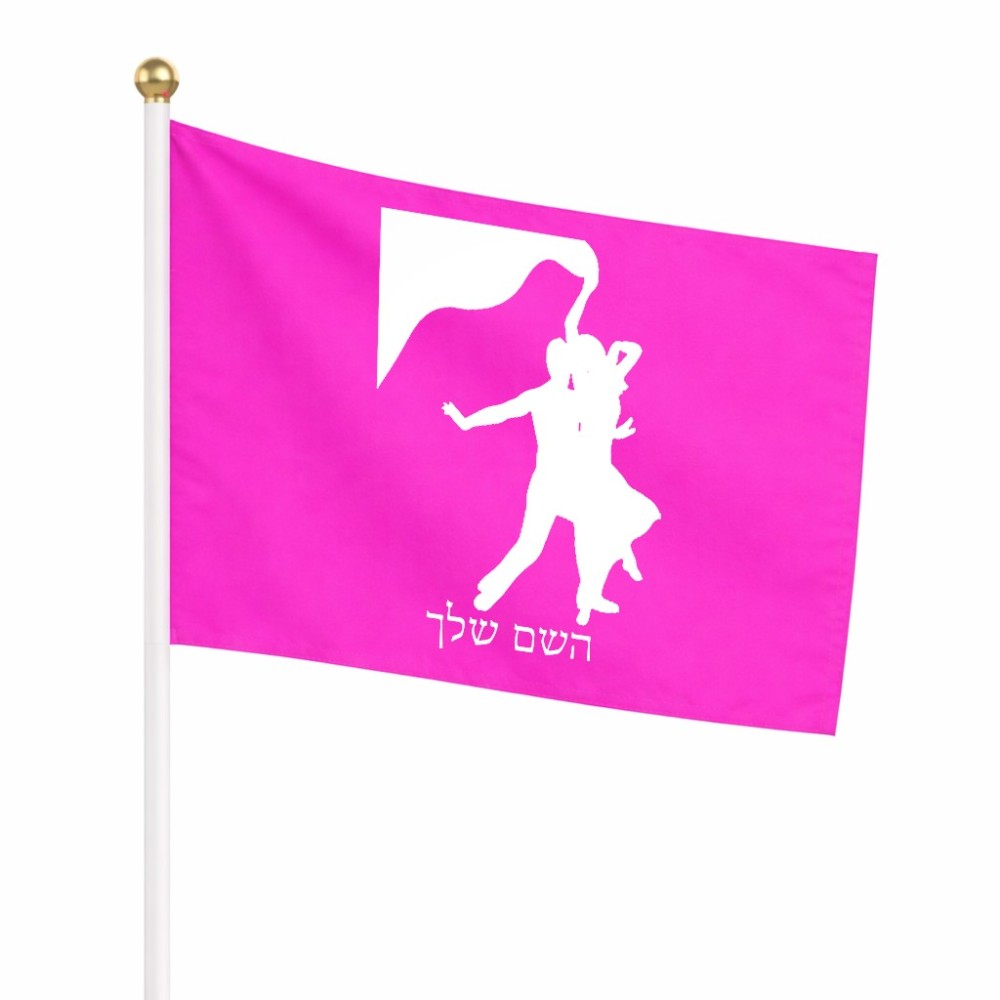 דיגלון בעיצוב אישי עם השם שלך בעיצוב אישה רוקדת עם גבר גודל הדיגלון 20.5 × 14 ס"מ, ההדפסה מתבצעת בשני צידי הדגל, את השם המבוקש ניתן לציין בהזמנה, אם לא צויין אנחנו ניצור קשר לבירור.