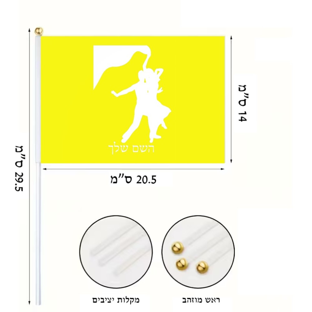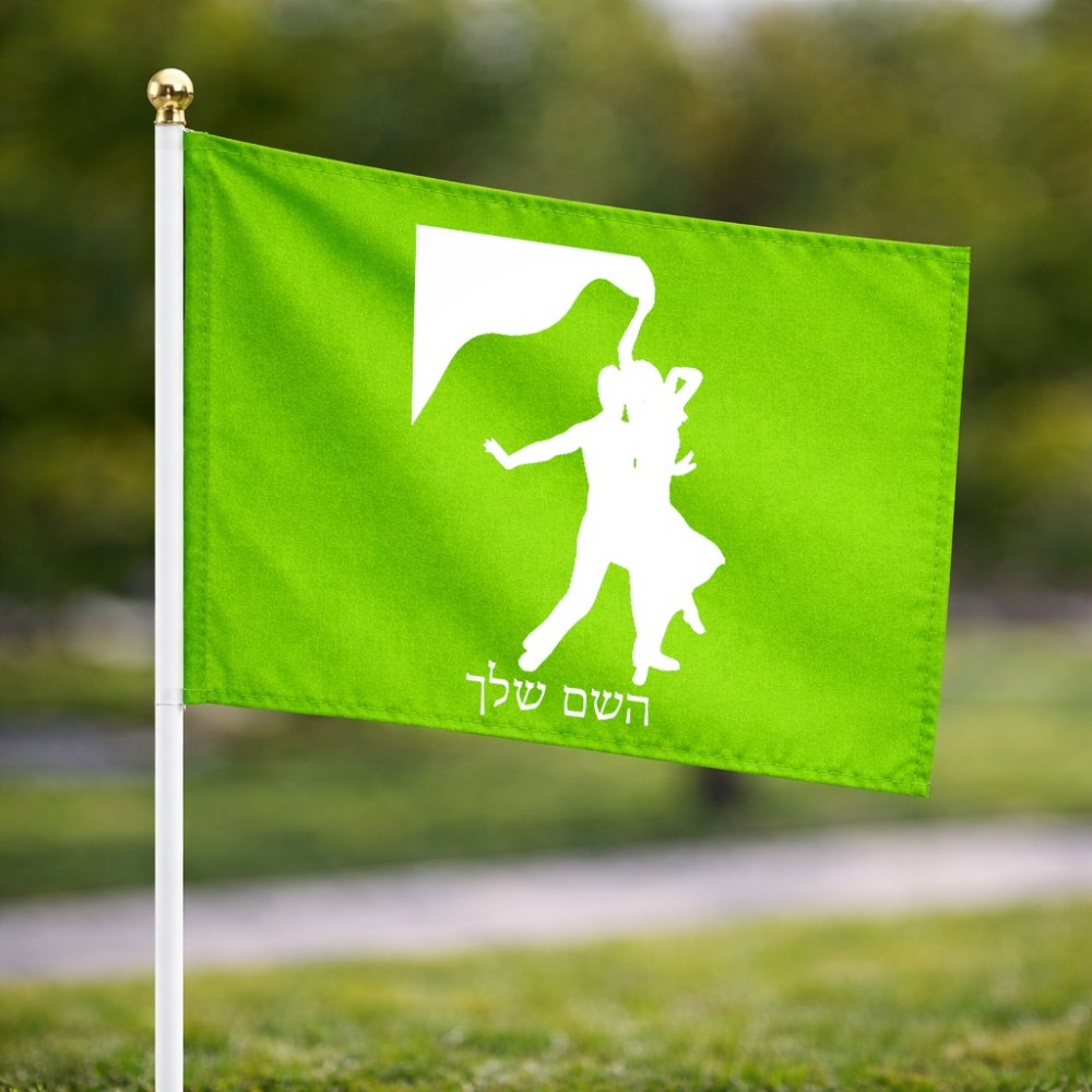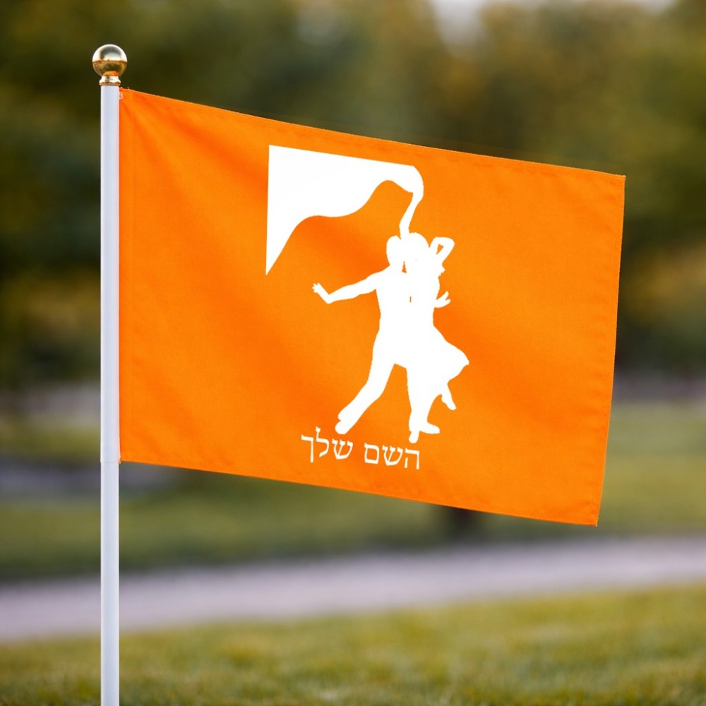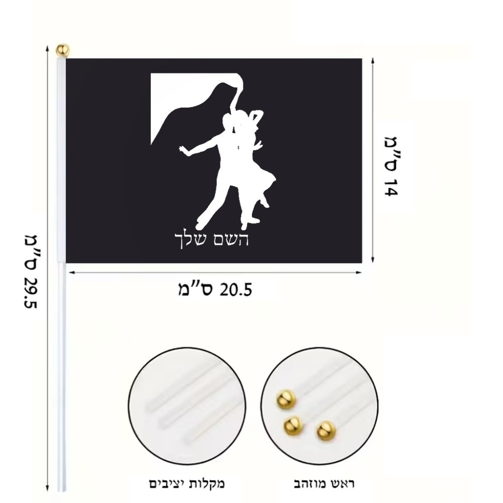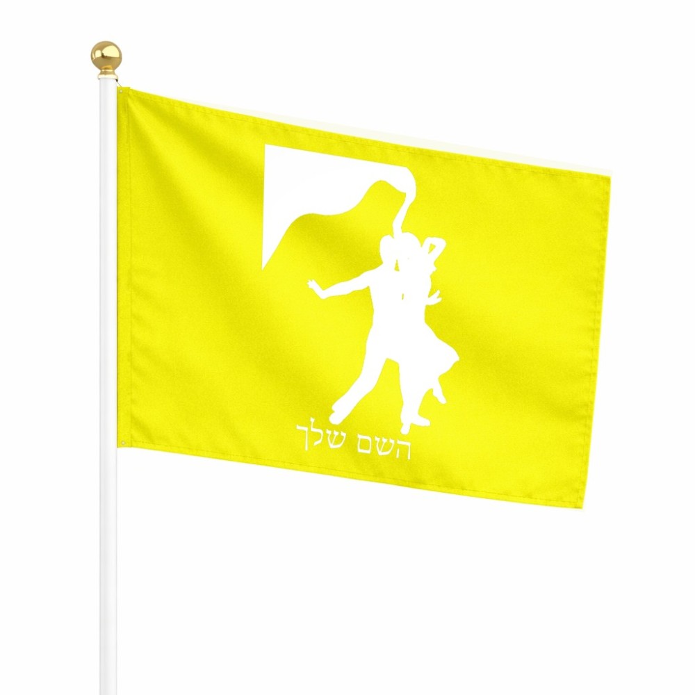 דיגלון בעיצוב אישי עם השם שלך בעיצוב אישה רוקדת עם גבר גודל הדיגלון 20.5 × 14 ס"מ, ההדפסה מתבצעת בשני צידי הדגל, את השם המבוקש ניתן לציין בהזמנה, אם לא צויין אנחנו ניצור קשר לבירור.
