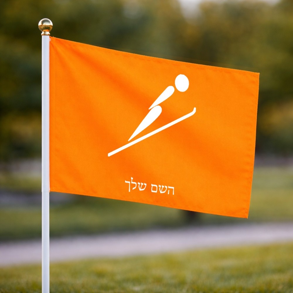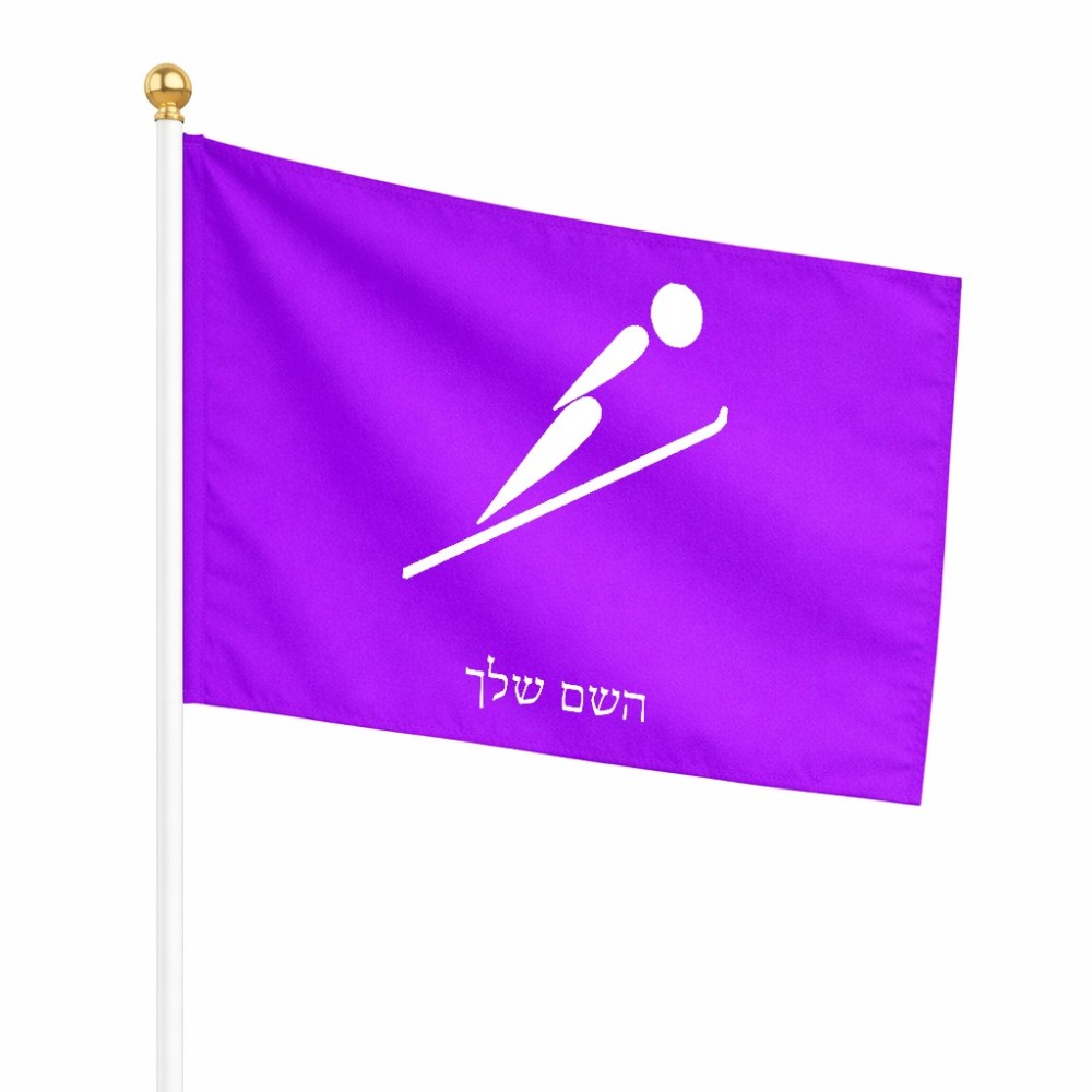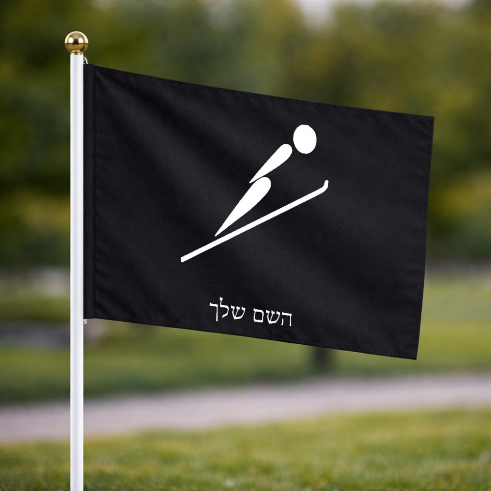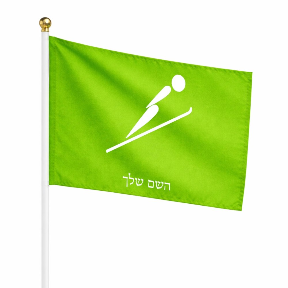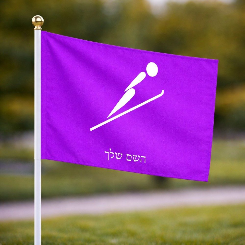 דיגלון בעיצוב אישי עם השם שלך בעיצוב קפיצת סקי אולימפית גודל הדיגלון 20.5 × 14 ס"מ, ההדפסה מתבצעת בשני צידי הדגל, את השם המבוקש ניתן לציין בהזמנה, אם לא צויין אנחנו ניצור קשר לבירור.