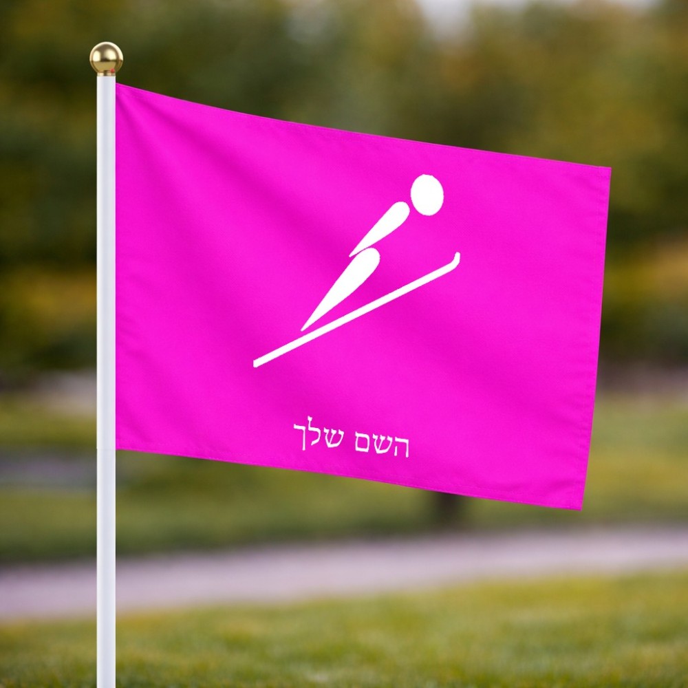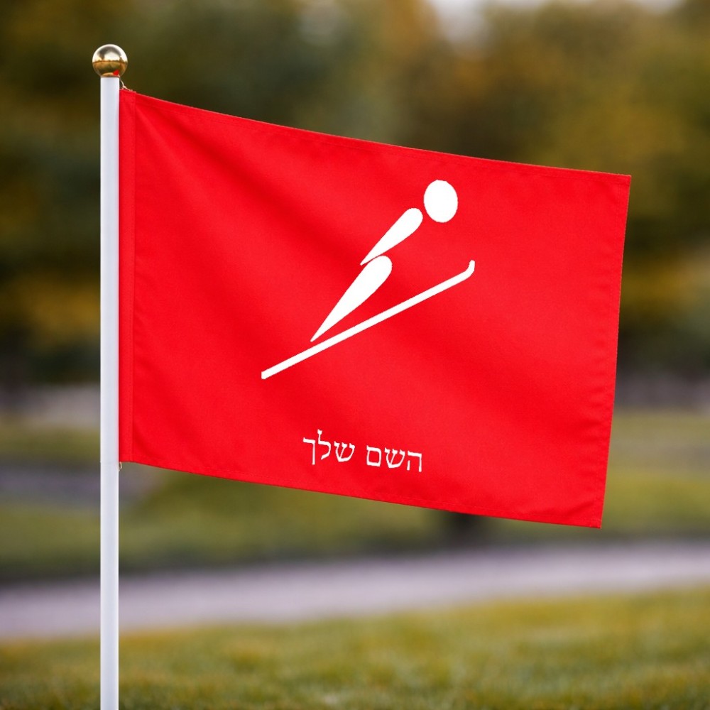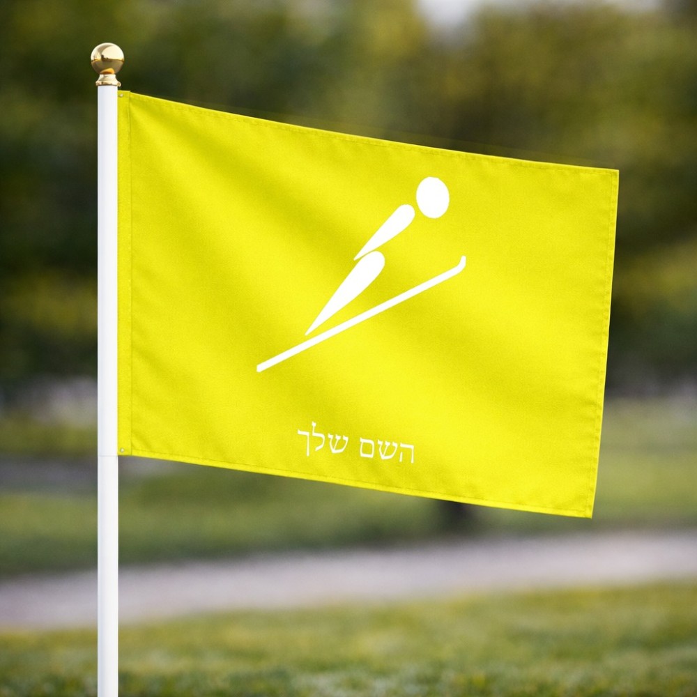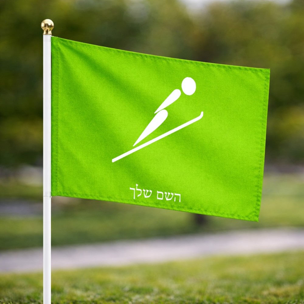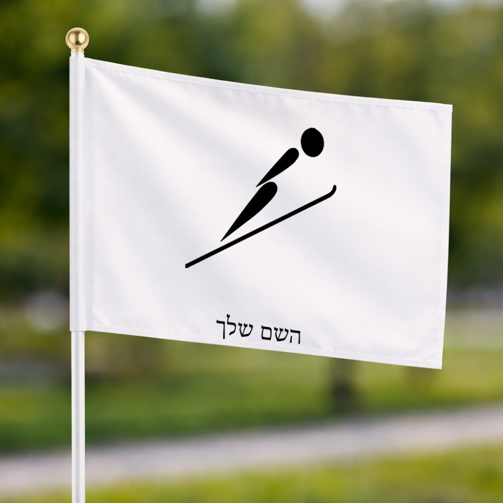 דיגלון בעיצוב אישי עם השם שלך בעיצוב קפיצת סקי אולימפית גודל הדיגלון 20.5 × 14 ס"מ, ההדפסה מתבצעת בשני צידי הדגל, את השם המבוקש ניתן לציין בהזמנה, אם לא צויין אנחנו ניצור קשר לבירור.