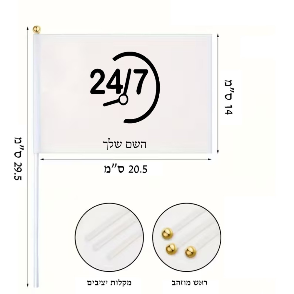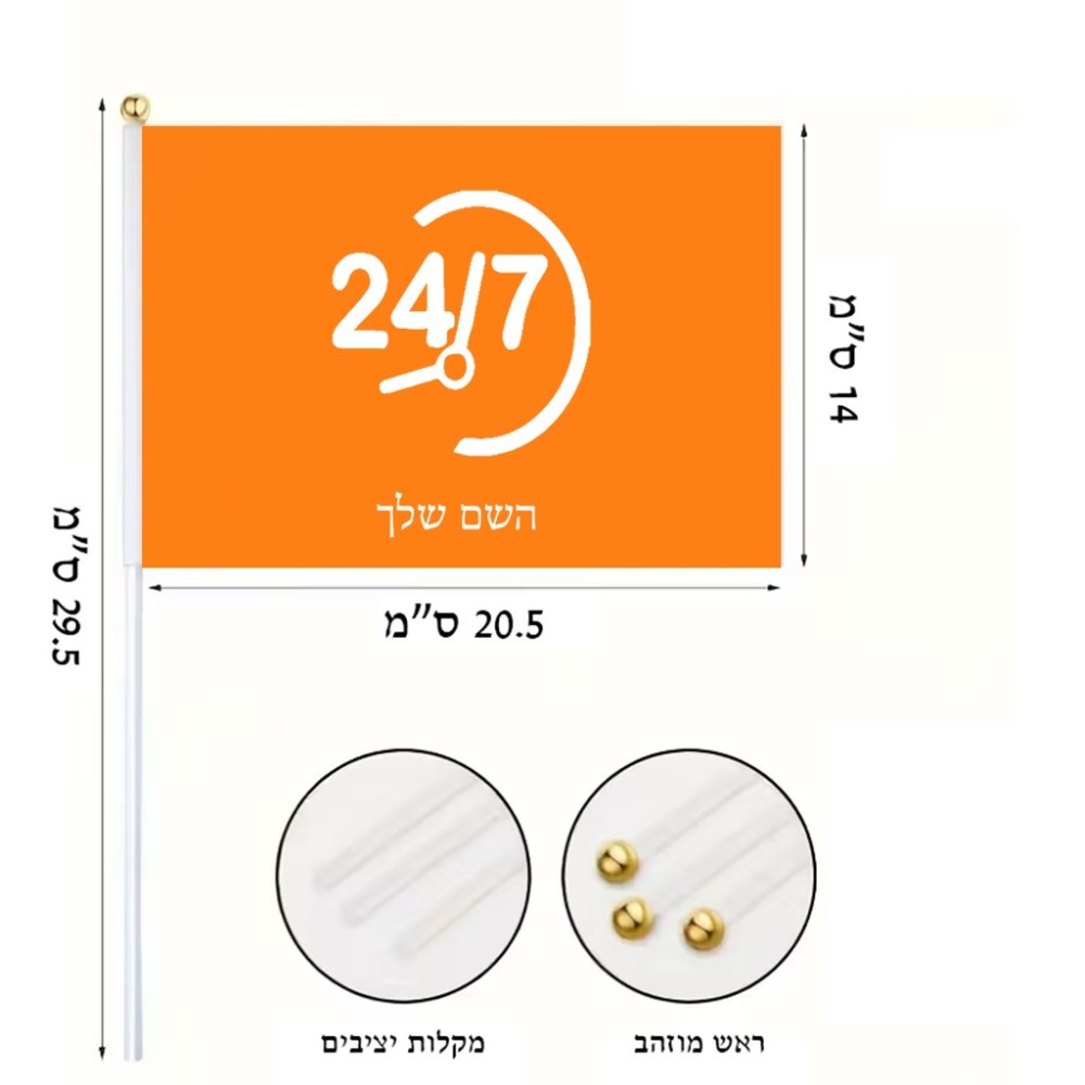 דיגלון בעיצוב אישי עם השם שלך בעיצוב 24 ביולי גודל הדיגלון 20.5 × 14 ס"מ, ההדפסה מתבצעת בשני צידי הדגל, את השם המבוקש ניתן לציין בהזמנה, אם לא צויין אנחנו ניצור קשר לבירור.