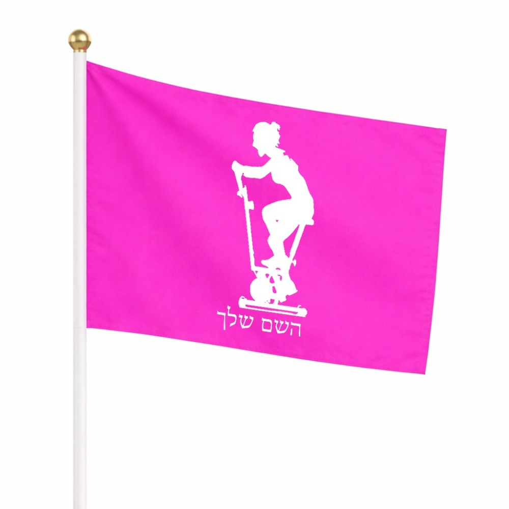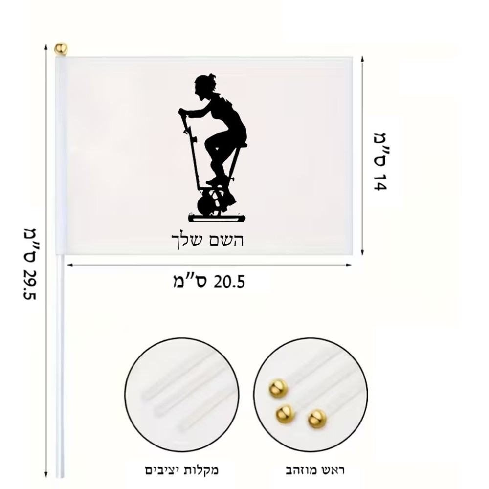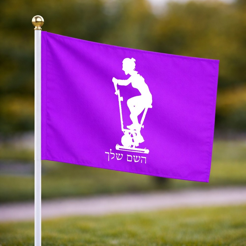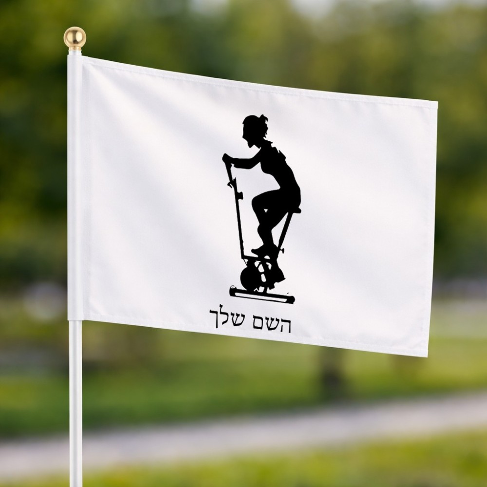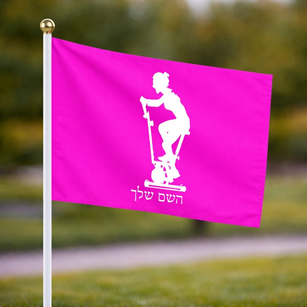 דיגלון בעיצוב אישי עם השם שלך בעיצוב אימון ספינינג - אישה גודל הדיגלון 20.5 × 14 ס"מ, ההדפסה מתבצעת בשני צידי הדגל, את השם המבוקש ניתן לציין בהזמנה, אם לא צויין אנחנו ניצור קשר לבירור.