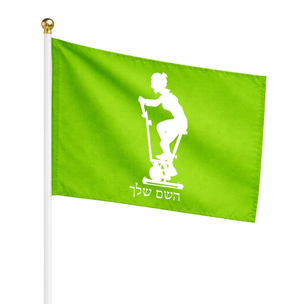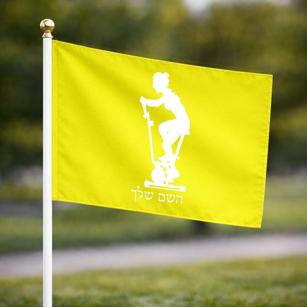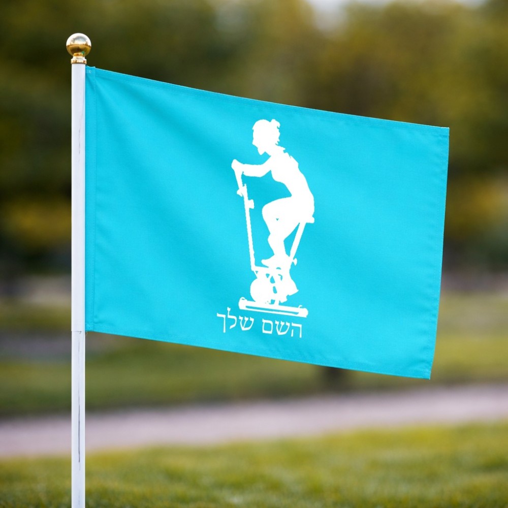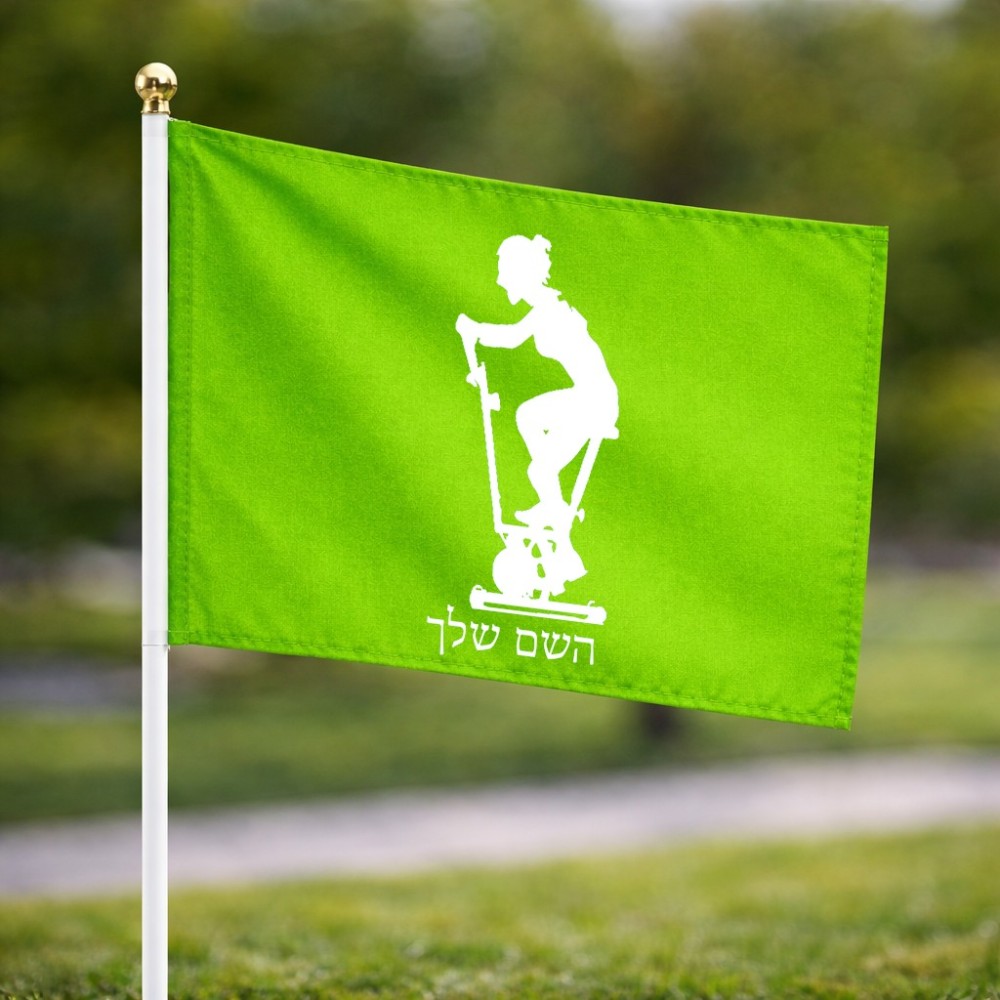 דיגלון בעיצוב אישי עם השם שלך בעיצוב אימון ספינינג - אישה גודל הדיגלון 20.5 × 14 ס"מ, ההדפסה מתבצעת בשני צידי הדגל, את השם המבוקש ניתן לציין בהזמנה, אם לא צויין אנחנו ניצור קשר לבירור.