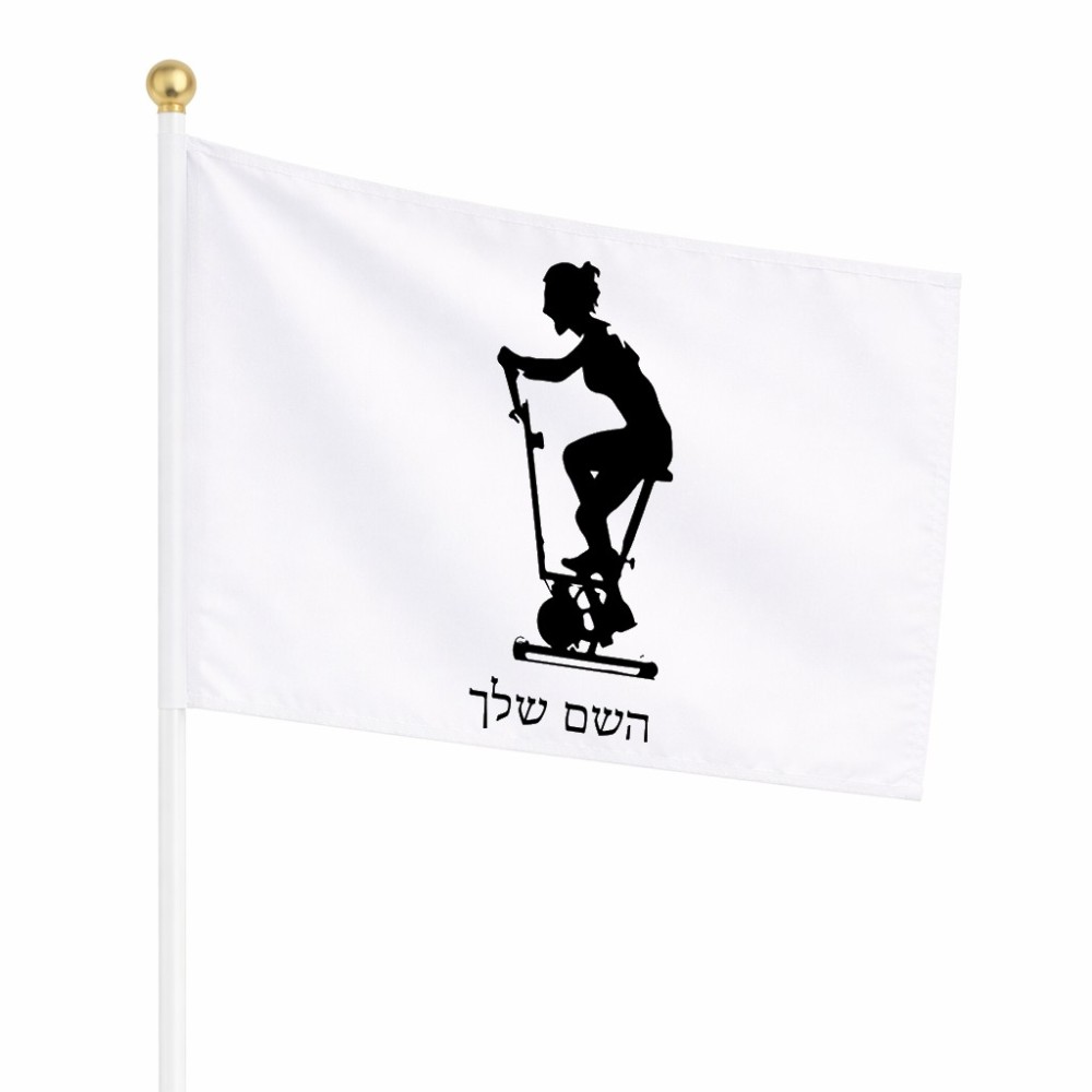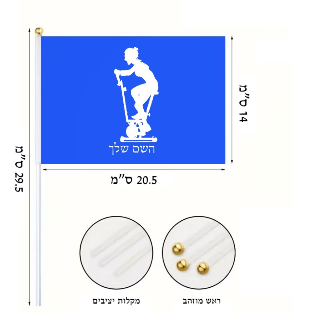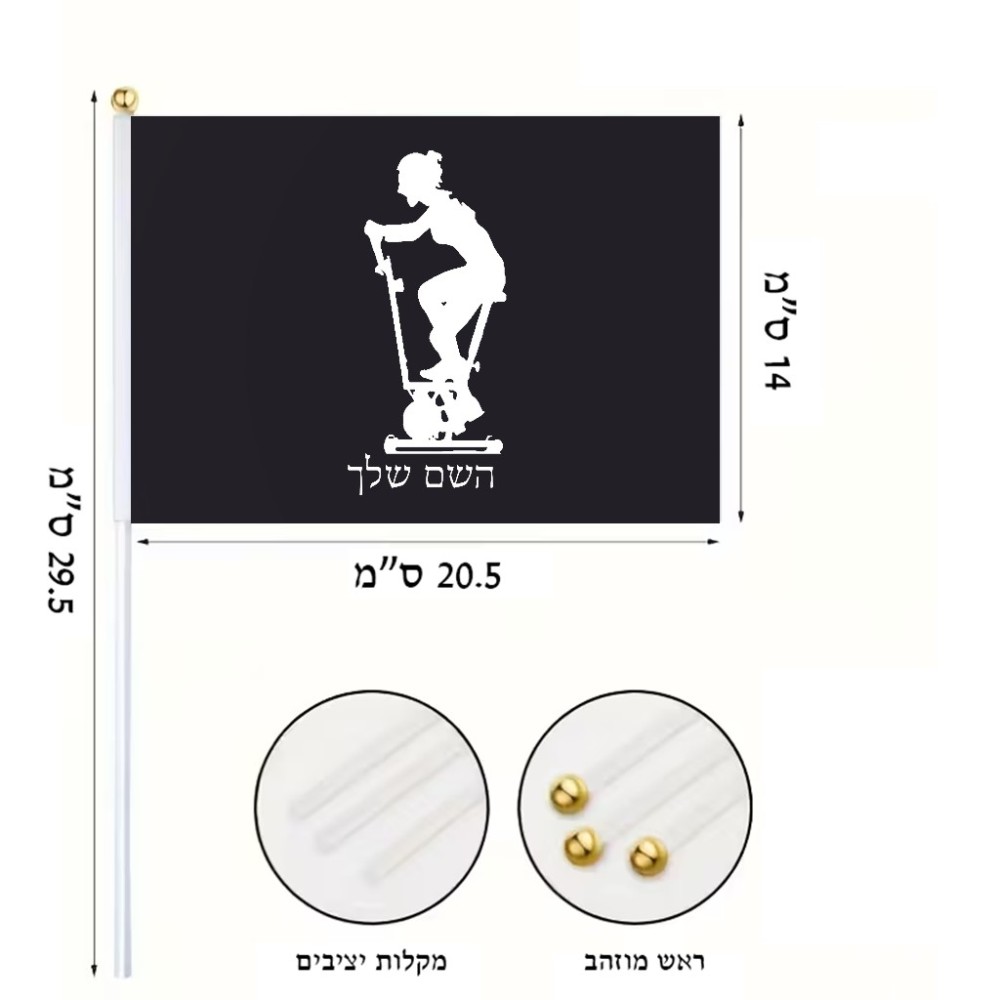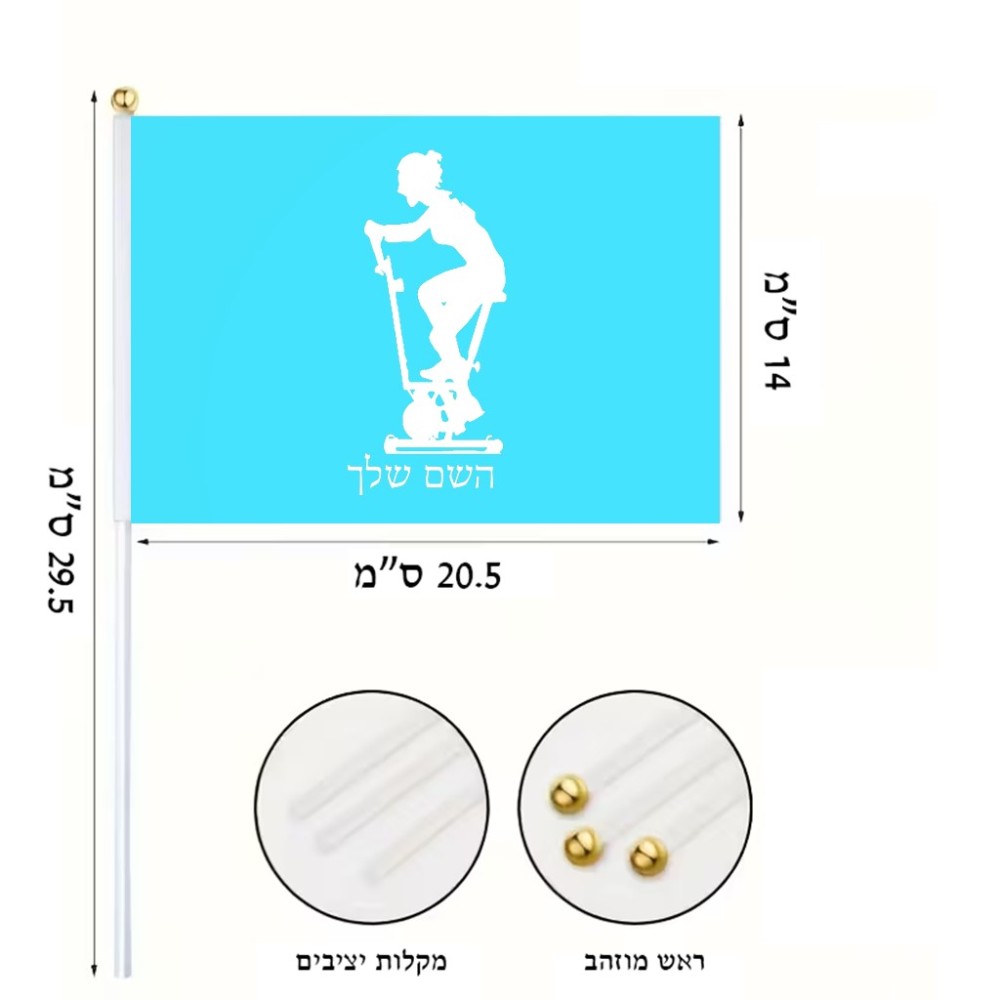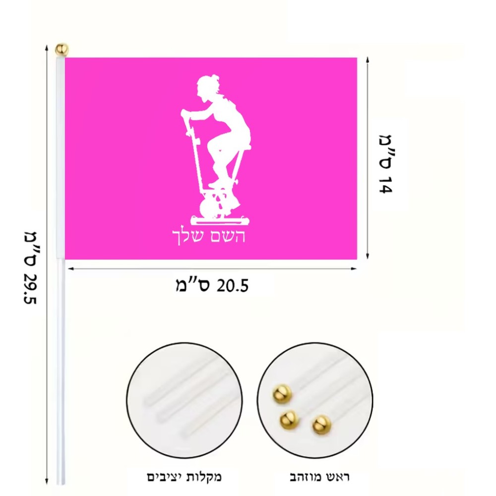 דיגלון בעיצוב אישי עם השם שלך בעיצוב אימון ספינינג - אישה גודל הדיגלון 20.5 × 14 ס"מ, ההדפסה מתבצעת בשני צידי הדגל, את השם המבוקש ניתן לציין בהזמנה, אם לא צויין אנחנו ניצור קשר לבירור.