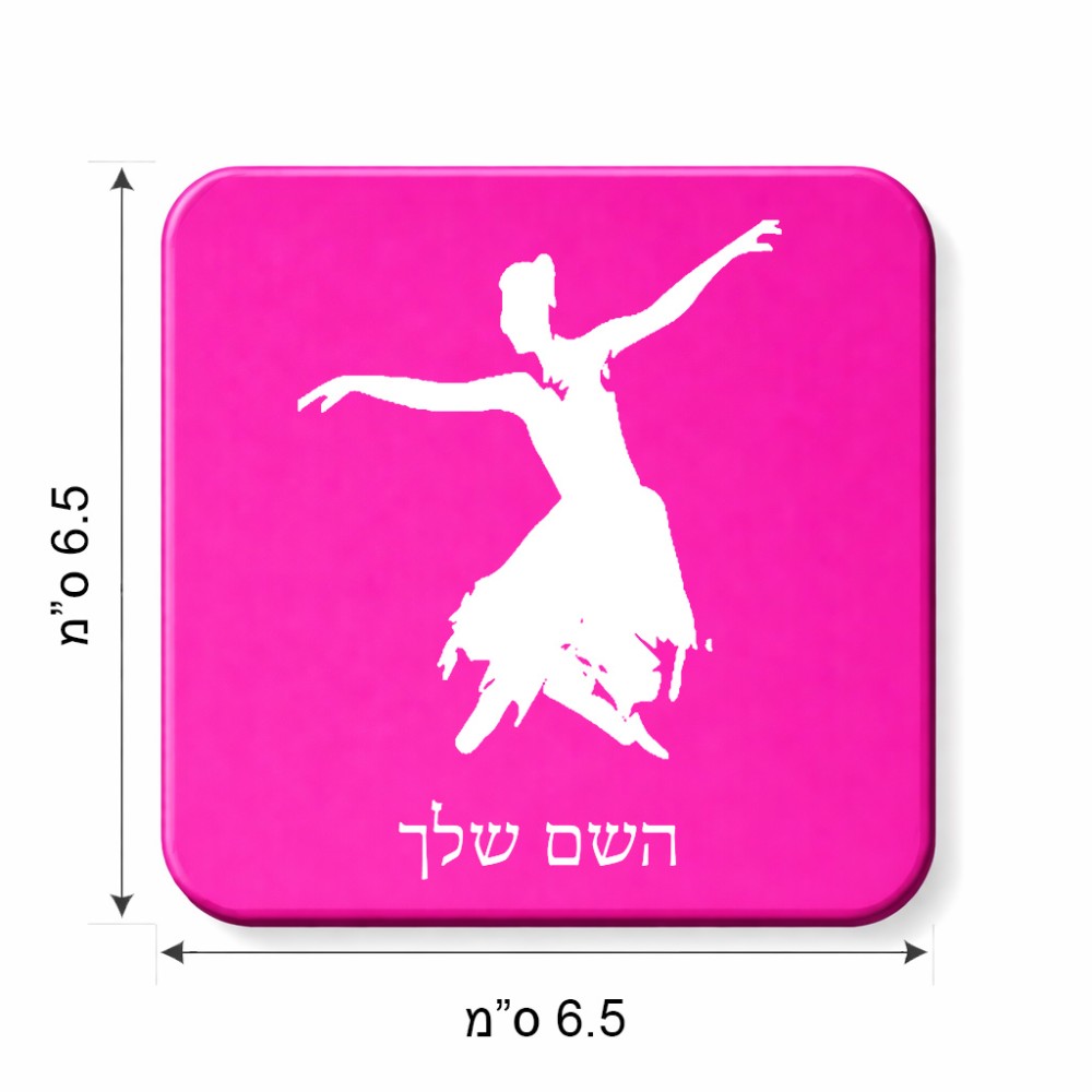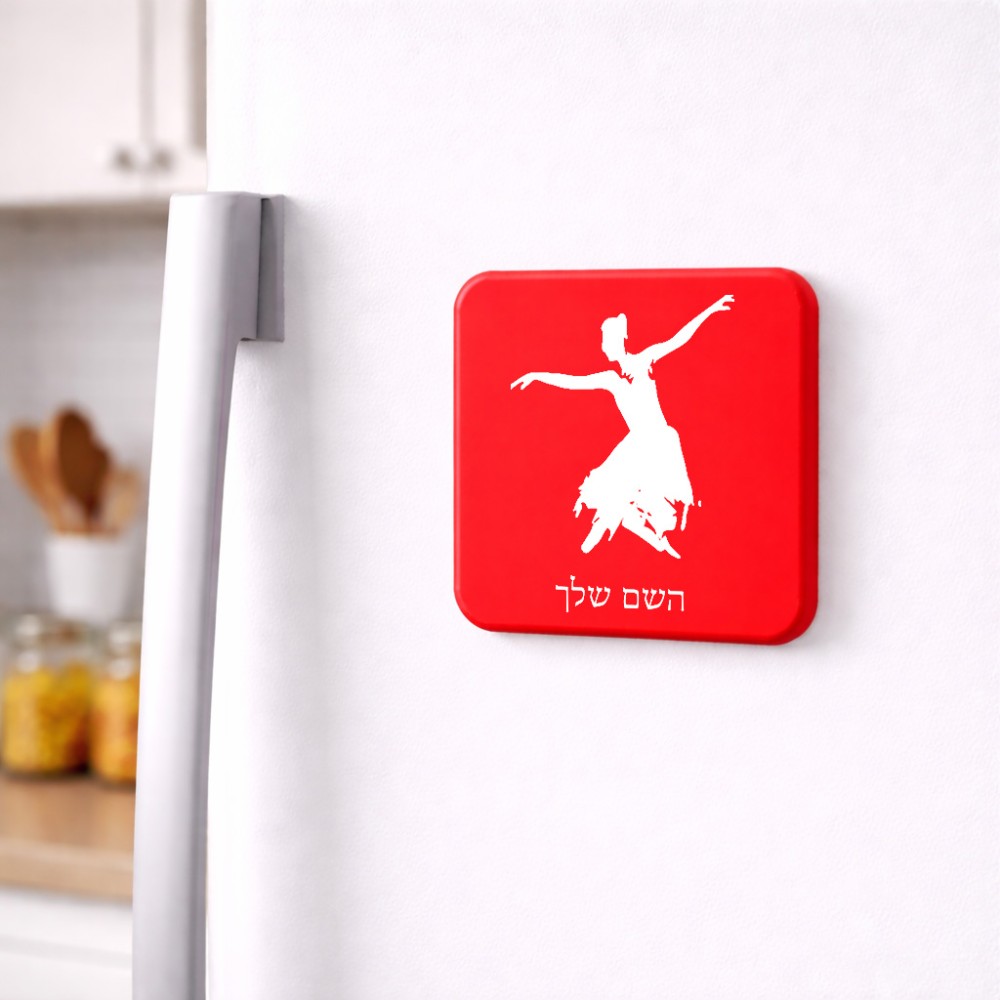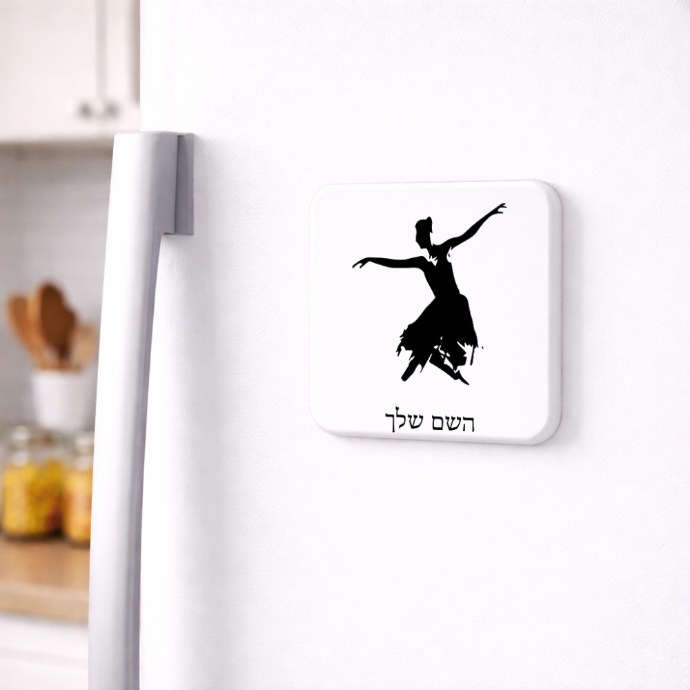 מגנט למקרר בעיצוב אישי עם השם שלך בעיצוב בלרינה גודל המגנט 6.5 × 6.5 ס"מ. את השם המבוקש ניתן לציין בהזמנה, אם לא צויין אנחנו ניצור קשר לבירור.