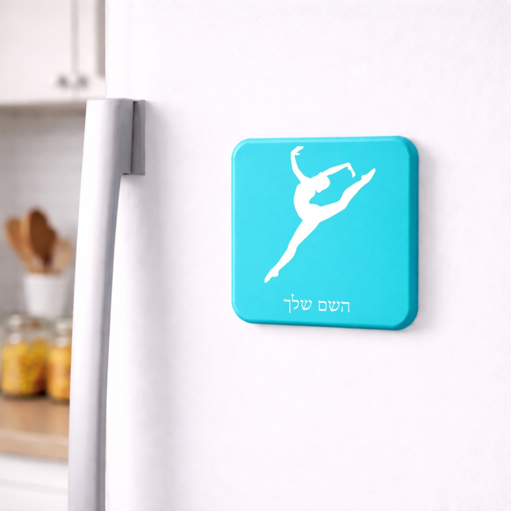 מגנט למקרר בעיצוב אישי עם השם שלך בעיצוב בלט גודל המגנט 6.5 × 6.5 ס"מ