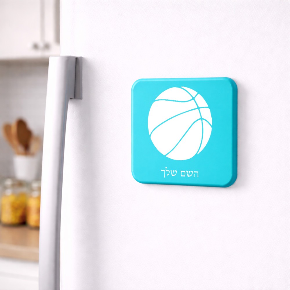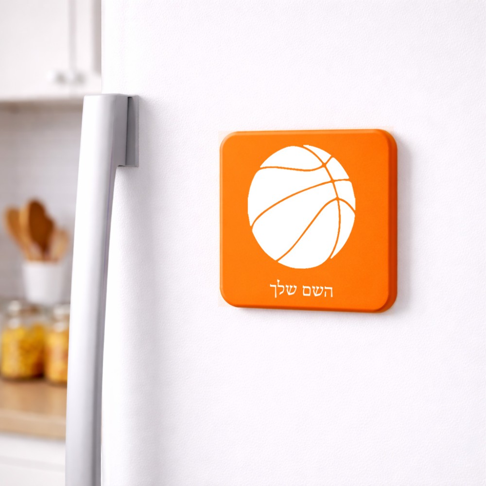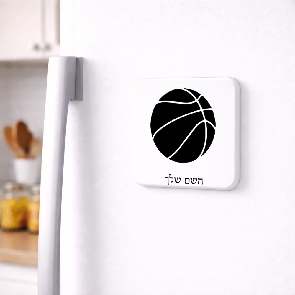 מגנט למקרר בעיצוב אישי עם השם שלך בעיצוב כדורסל גודל המגנט 6.5 × 6.5 ס"מ. את השם המבוקש ניתן לציין בהזמנה, אם לא צויין אנחנו ניצור קשר לבירור.