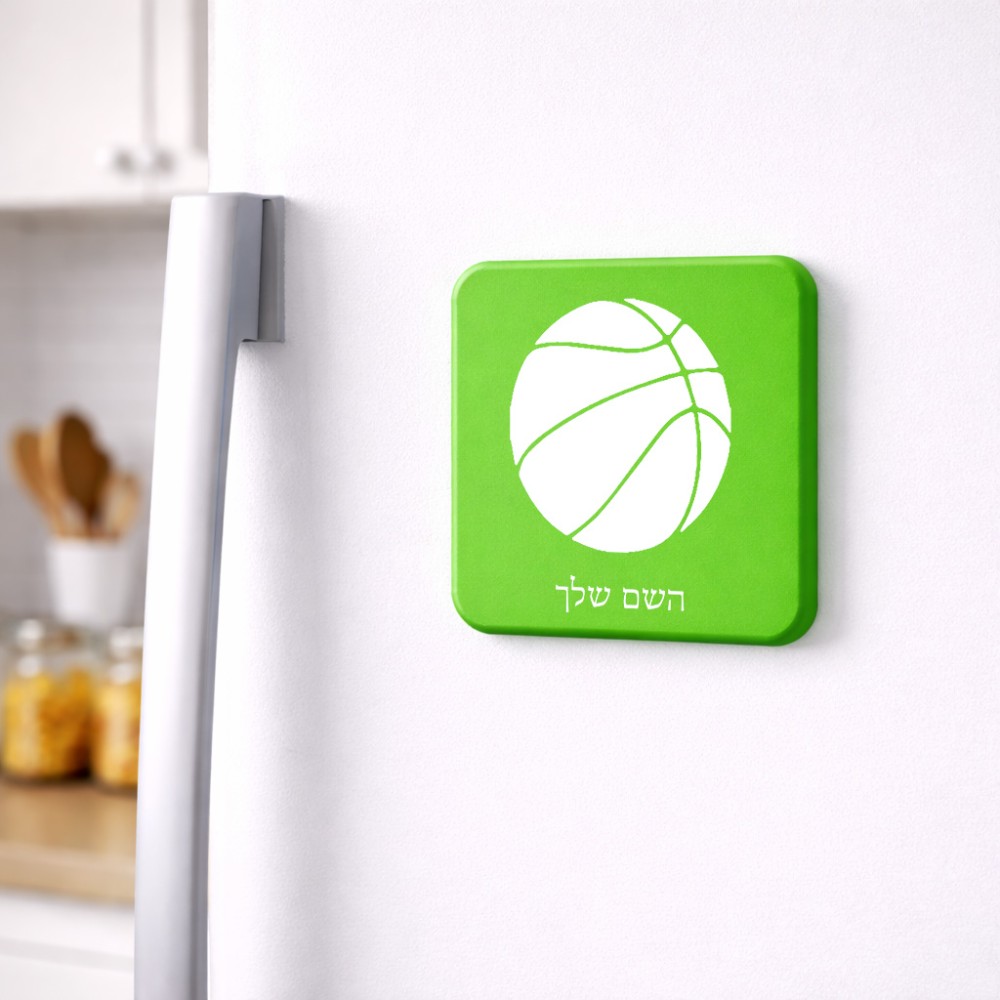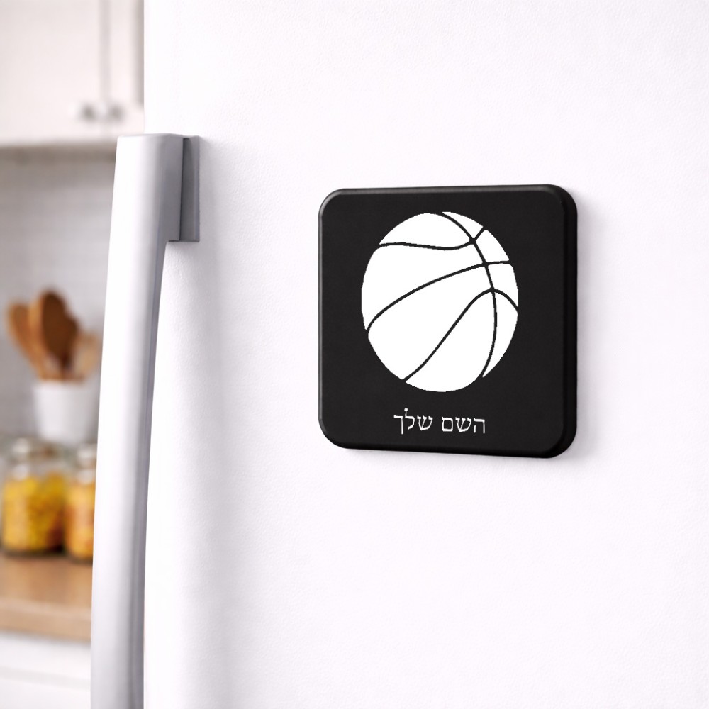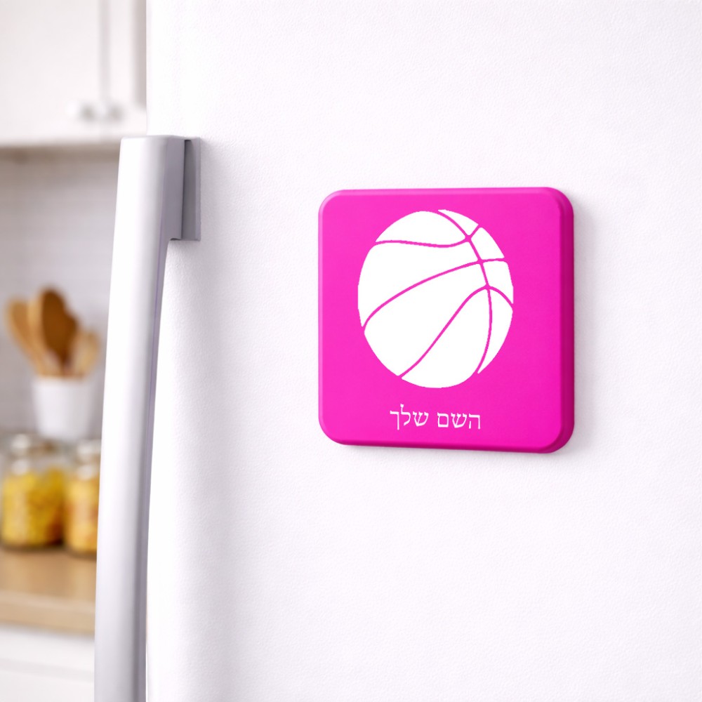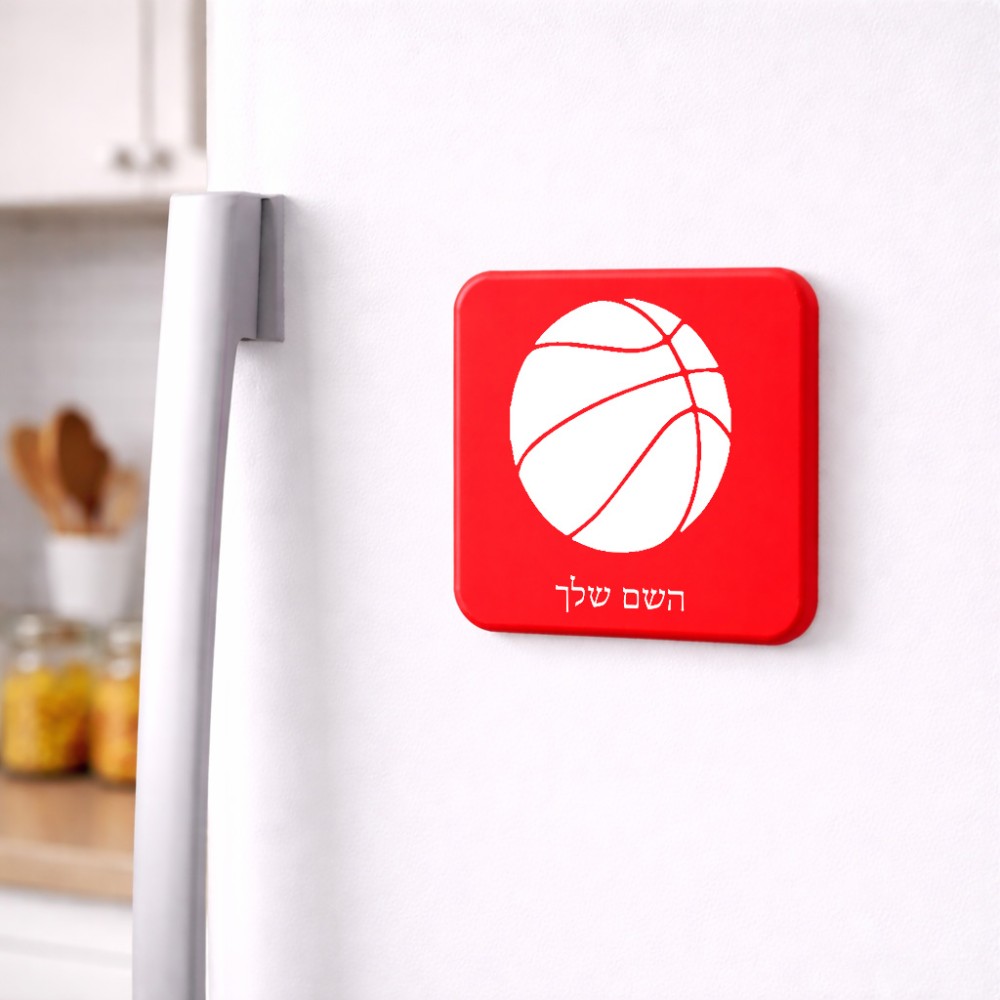 מגנט למקרר בעיצוב אישי עם השם שלך בעיצוב כדורסל גודל המגנט 6.5 × 6.5 ס"מ. את השם המבוקש ניתן לציין בהזמנה, אם לא צויין אנחנו ניצור קשר לבירור.