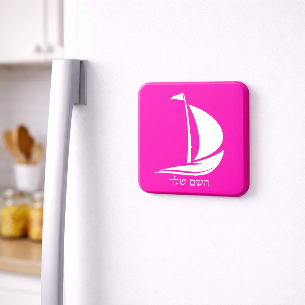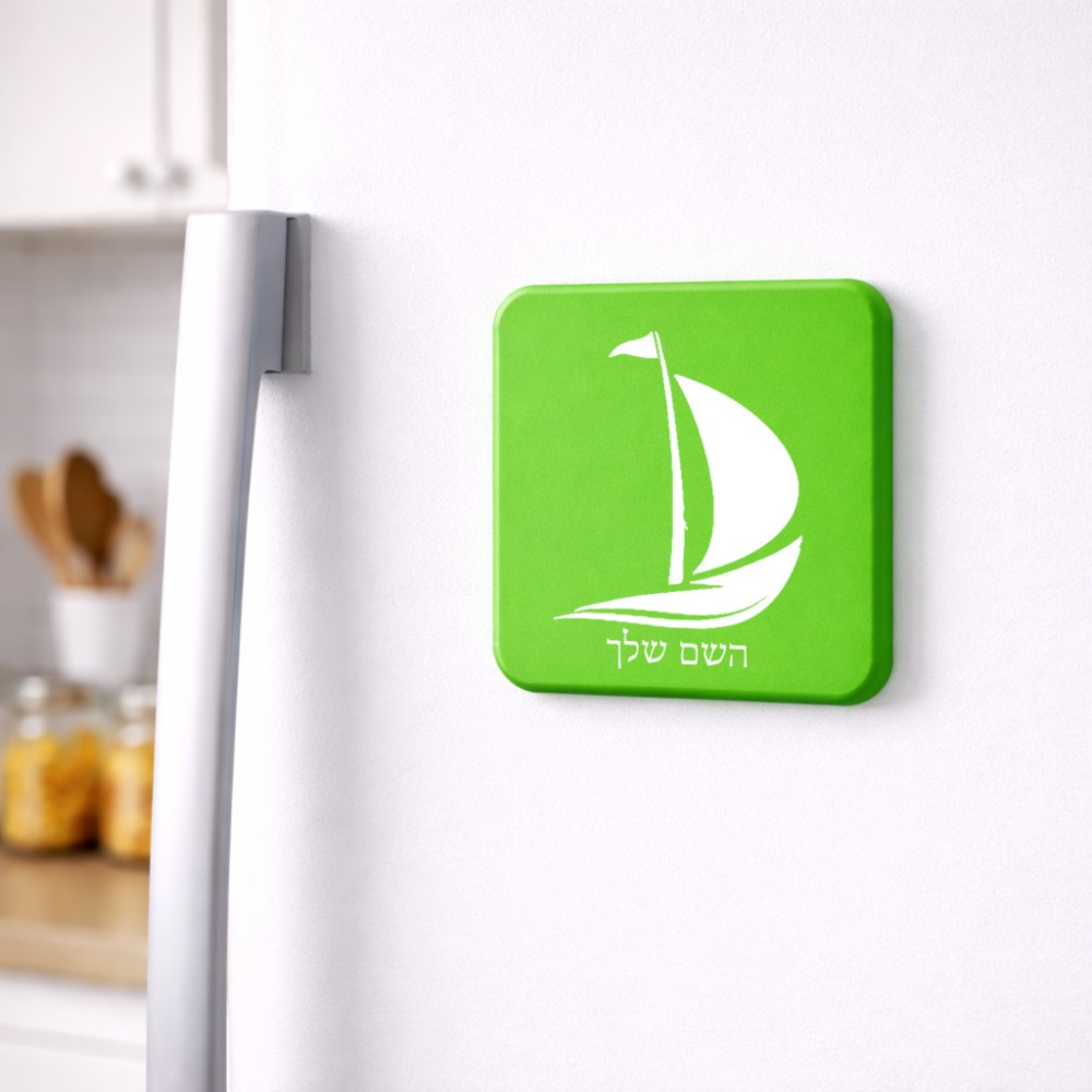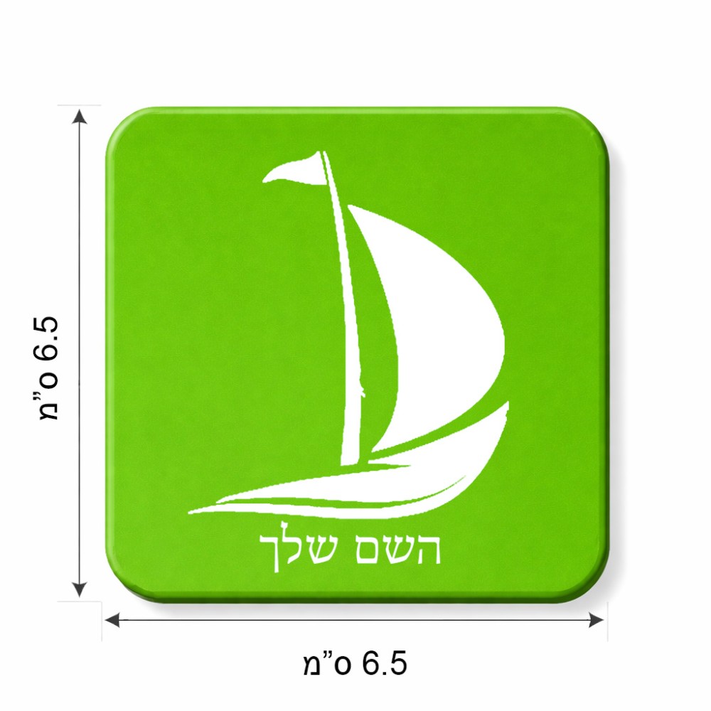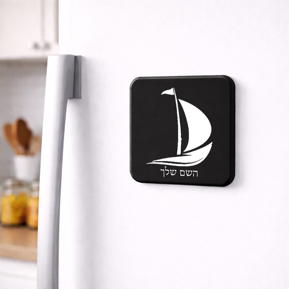 מגנט למקרר בעיצוב אישי עם השם שלך בעיצוב סירה גודל המגנט 6.5 × 6.5 ס"מ. את השם המבוקש ניתן לציין בהזמנה, אם לא צויין אנחנו ניצור קשר לבירור.