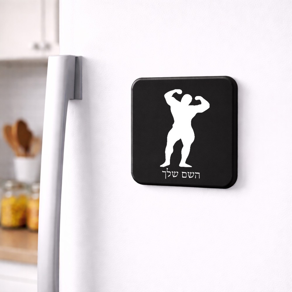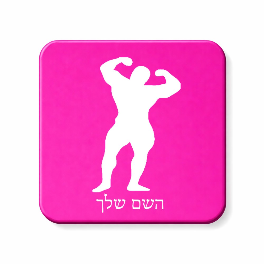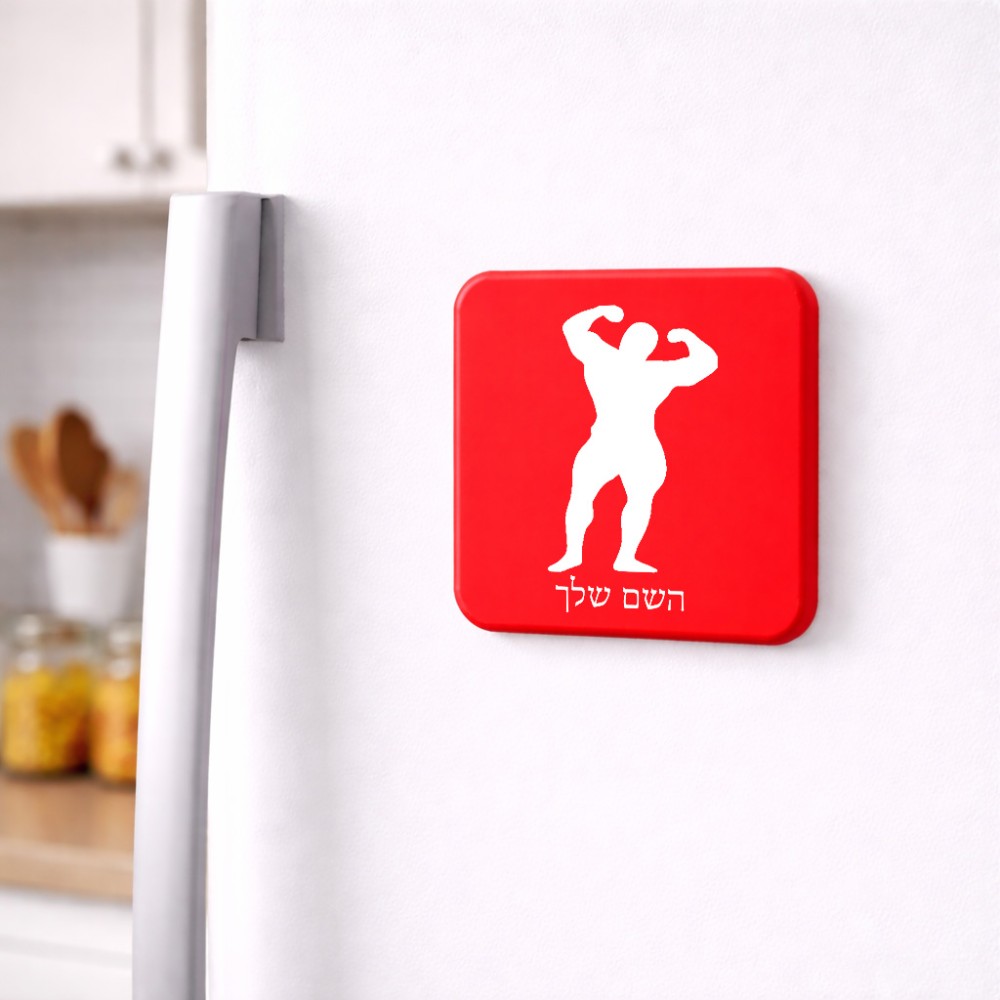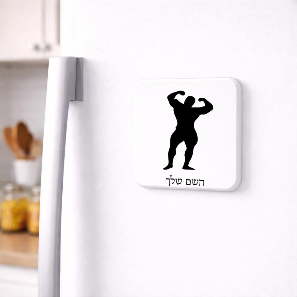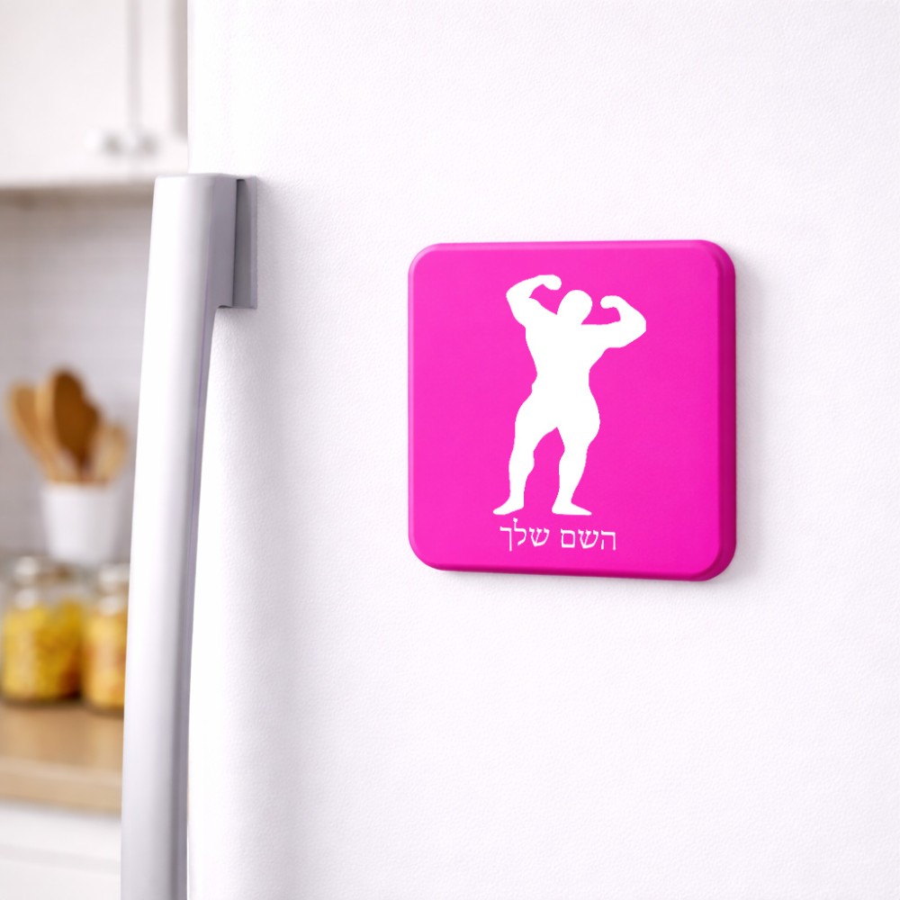 מגנט למקרר בעיצוב אישי עם השם שלך בעיצוב פיתוח גוף גודל המגנט 6.5 × 6.5 ס"מ. את השם המבוקש ניתן לציין בהזמנה, אם לא צויין אנחנו ניצור קשר לבירור.