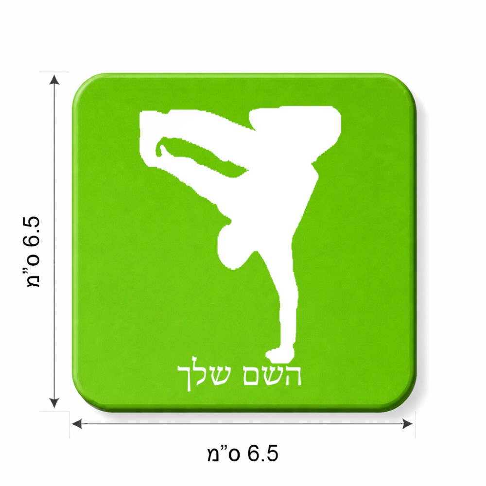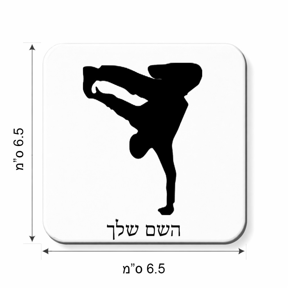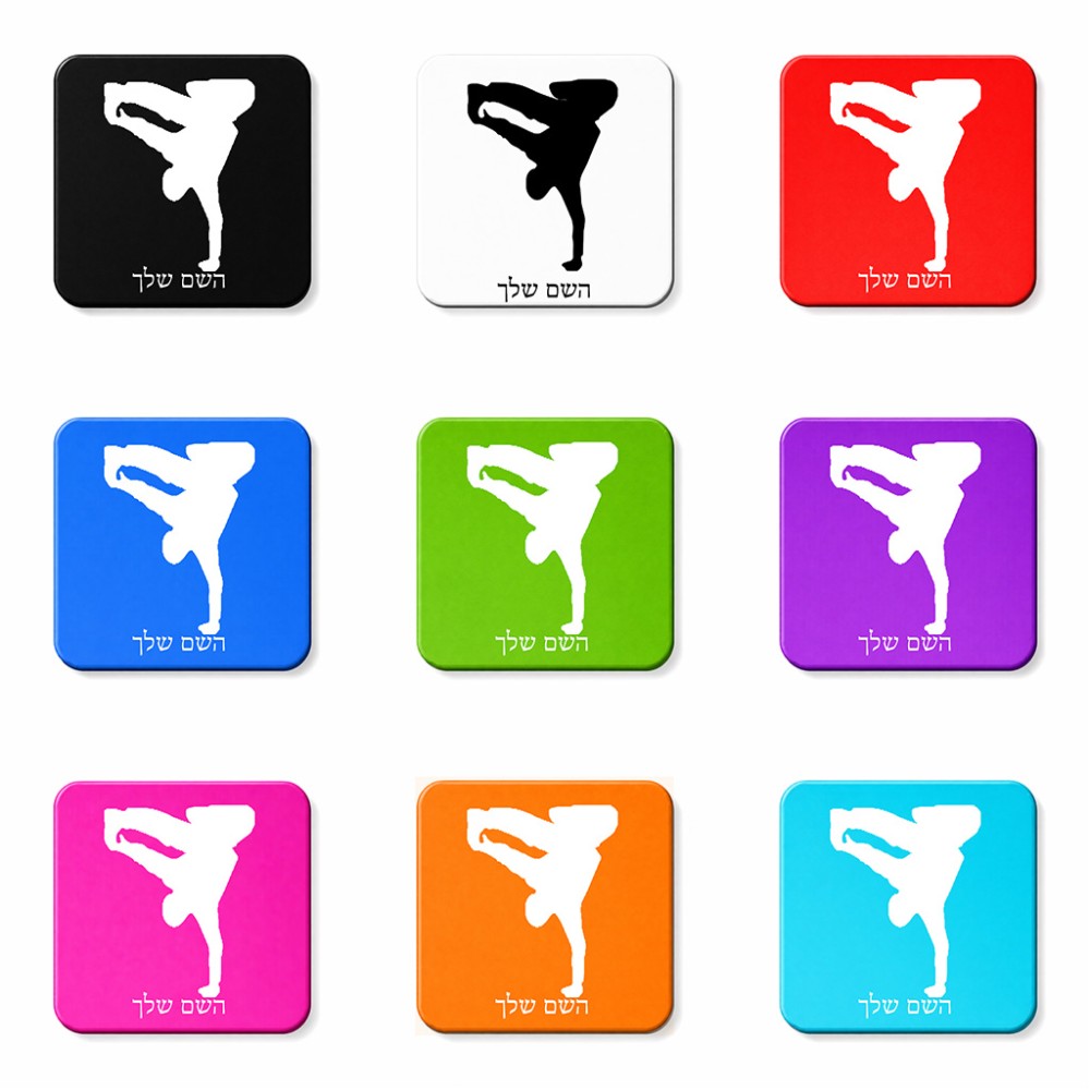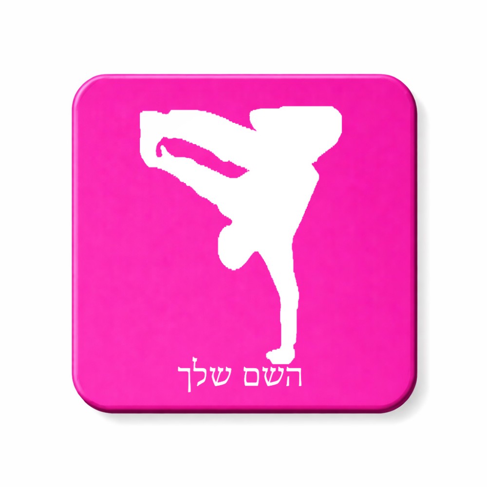 מגנט למקרר בעיצוב אישי עם השם שלך בעיצוב ברייקדאנס גודל המגנט 6.5 × 6.5 ס"מ. את השם המבוקש ניתן לציין בהזמנה, אם לא צויין אנחנו ניצור קשר לבירור.