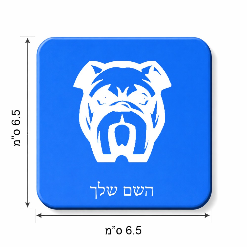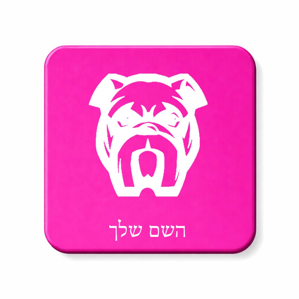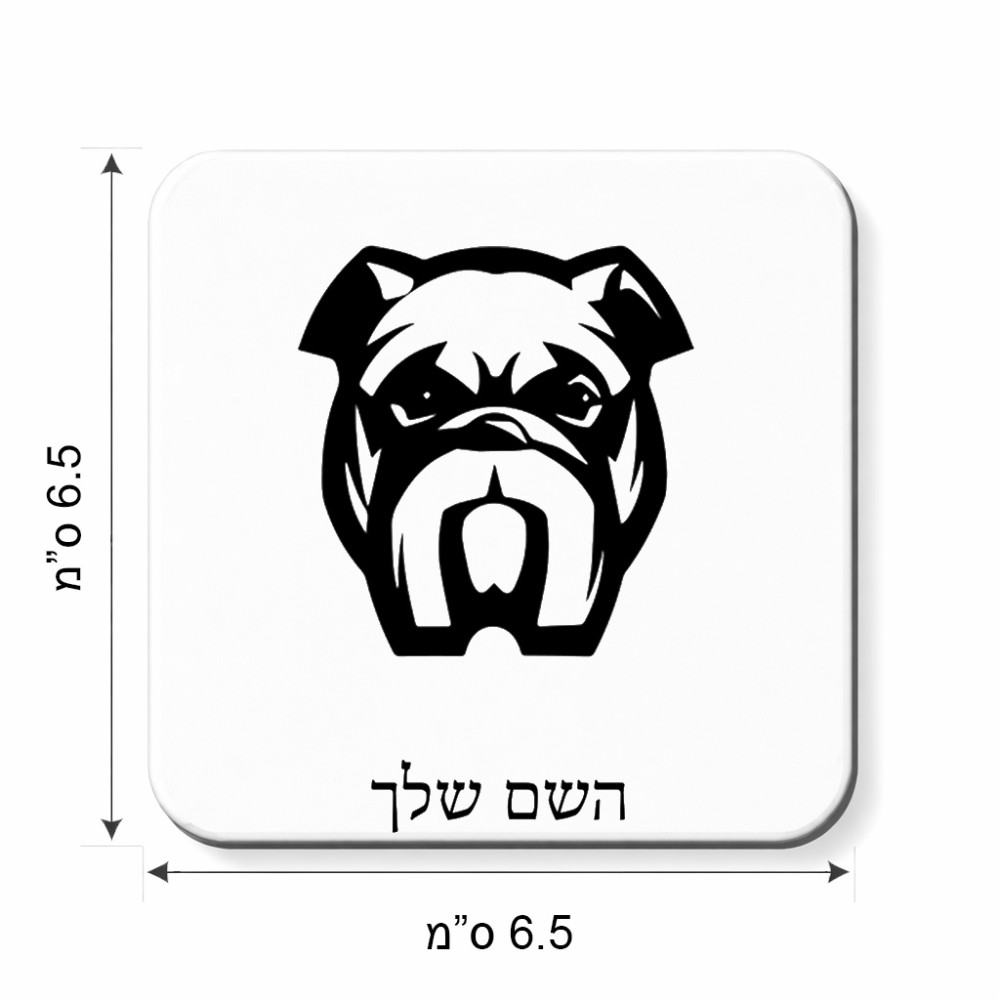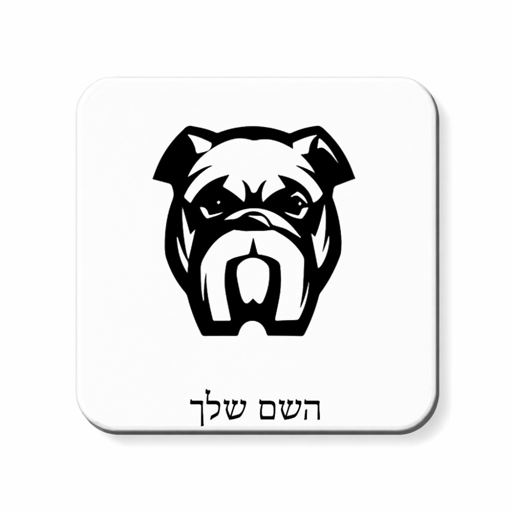 מגנט למקרר בעיצוב אישי עם השם שלך בעיצוב פרצוף בולדוג גודל המגנט 6.5 × 6.5 ס"מ. את השם המבוקש ניתן לציין בהזמנה, אם לא צויין אנחנו ניצור קשר לבירור.