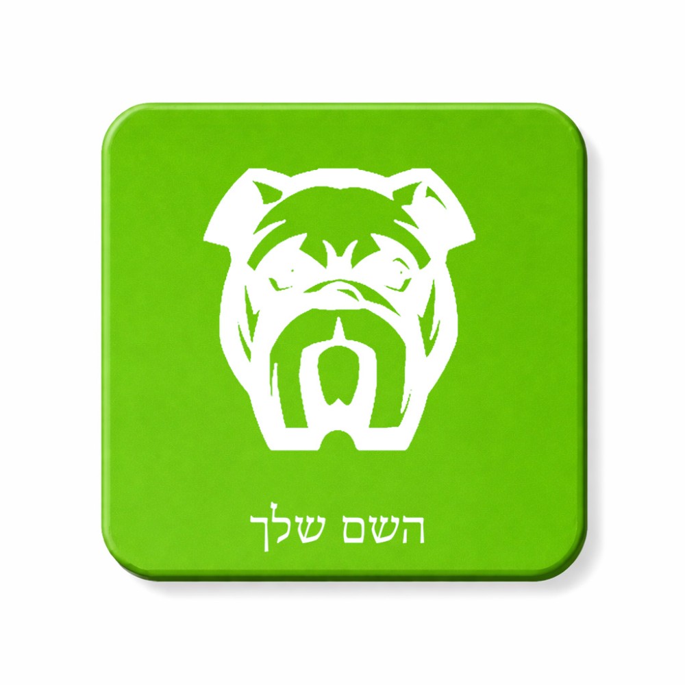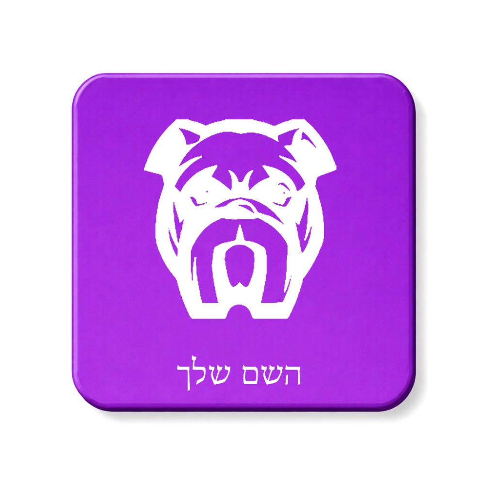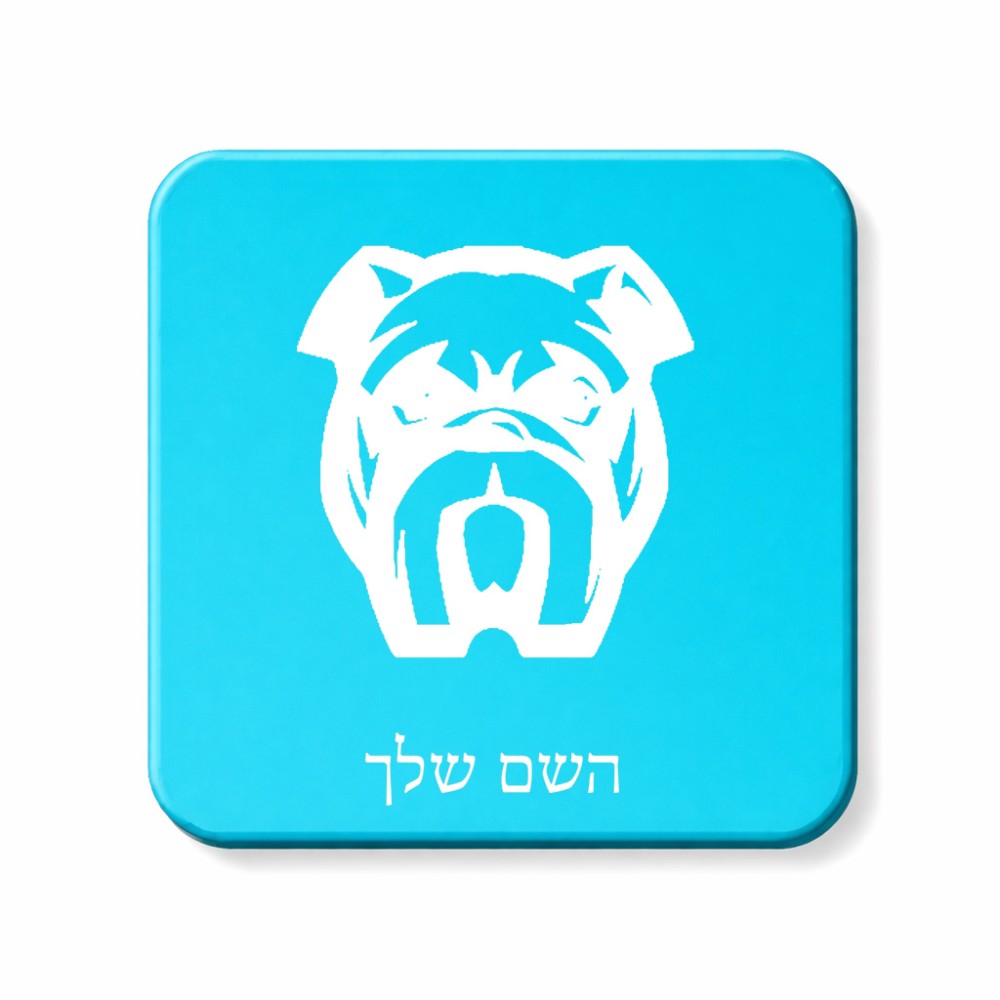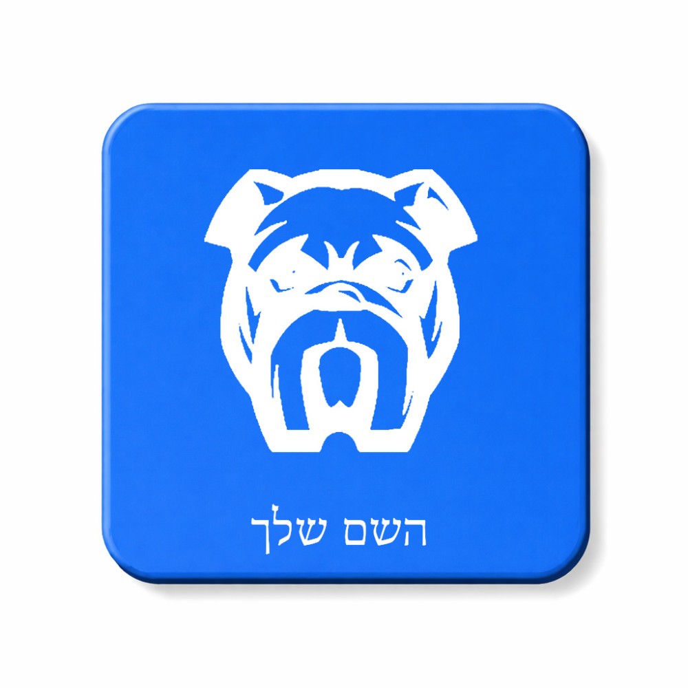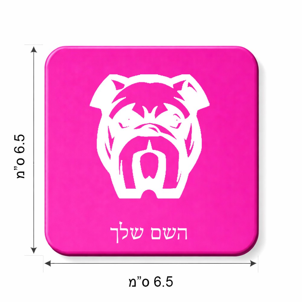 מגנט למקרר בעיצוב אישי עם השם שלך בעיצוב פרצוף בולדוג גודל המגנט 6.5 × 6.5 ס"מ. את השם המבוקש ניתן לציין בהזמנה, אם לא צויין אנחנו ניצור קשר לבירור.