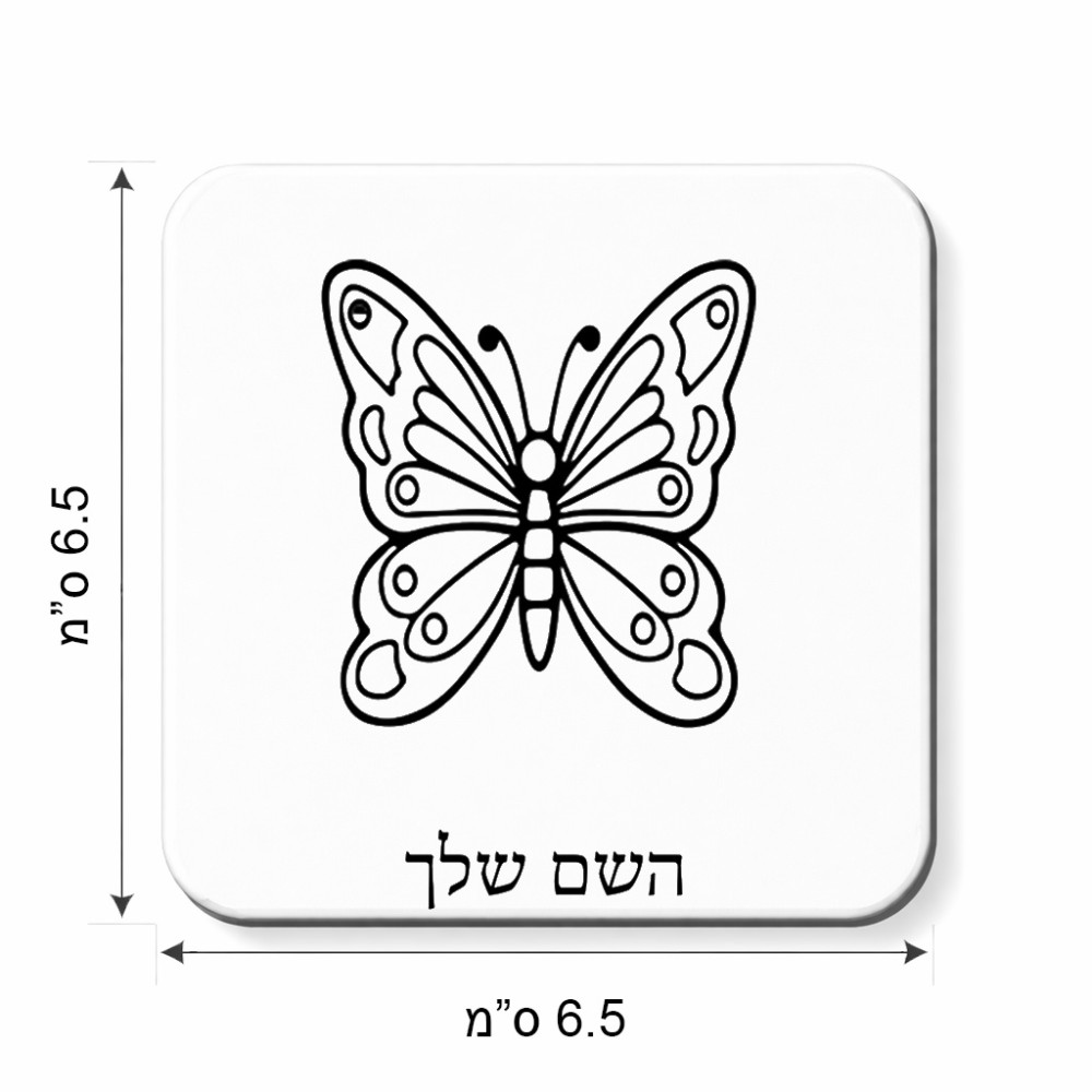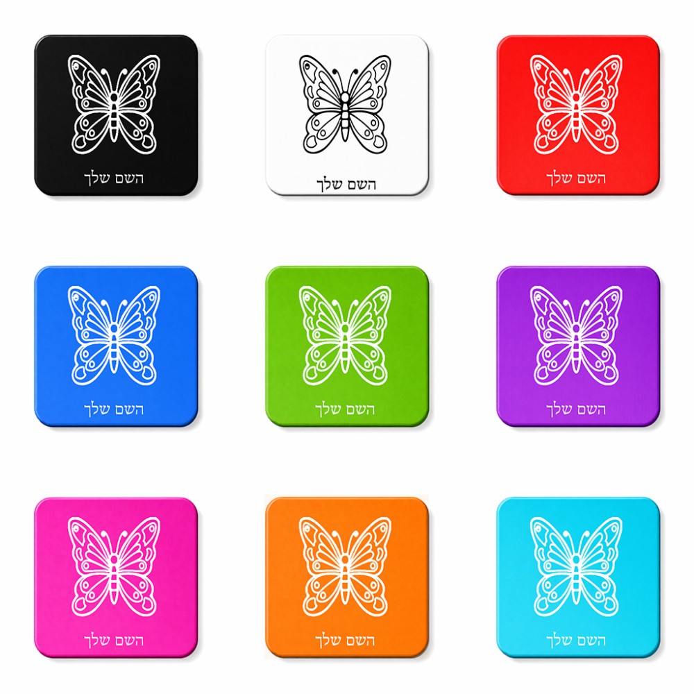 מגנט למקרר בעיצוב אישי עם השם שלך בעיצוב פרפר גודל המגנט 6.5 × 6.5 ס"מ