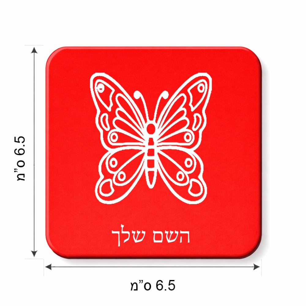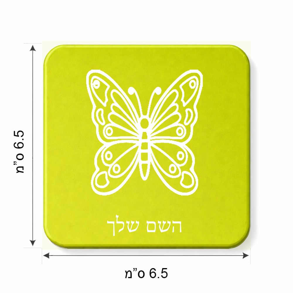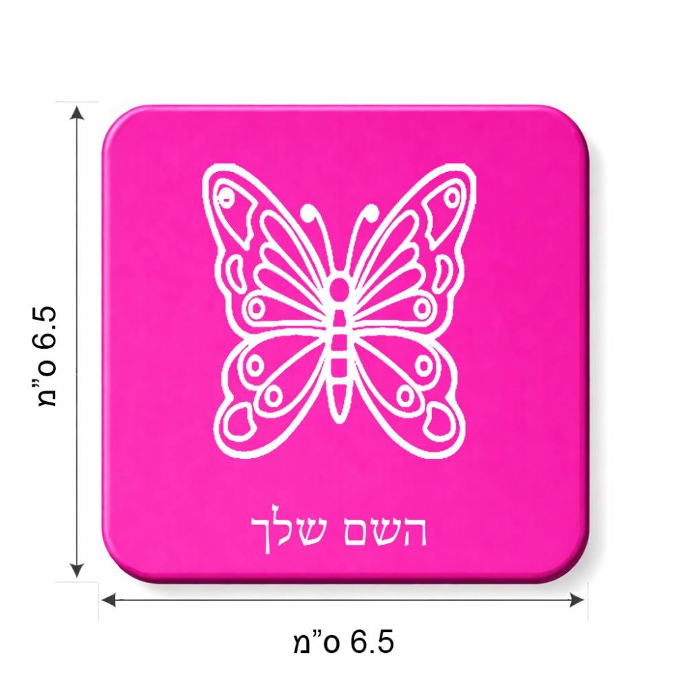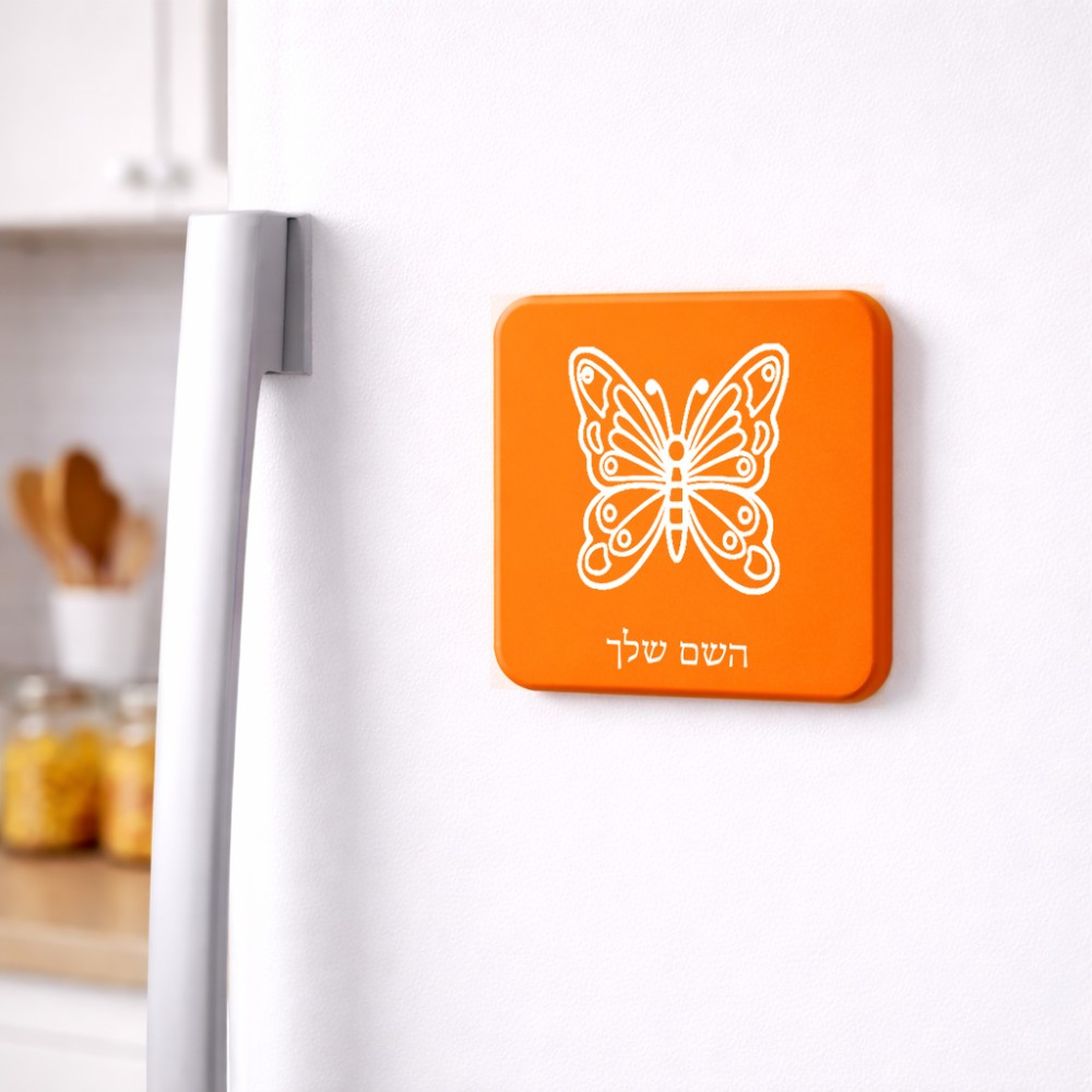 מגנט למקרר בעיצוב אישי עם השם שלך בעיצוב פרפר גודל המגנט 6.5 × 6.5 ס"מ. את השם המבוקש ניתן לציין בהזמנה, אם לא צויין אנחנו ניצור קשר לבירור.