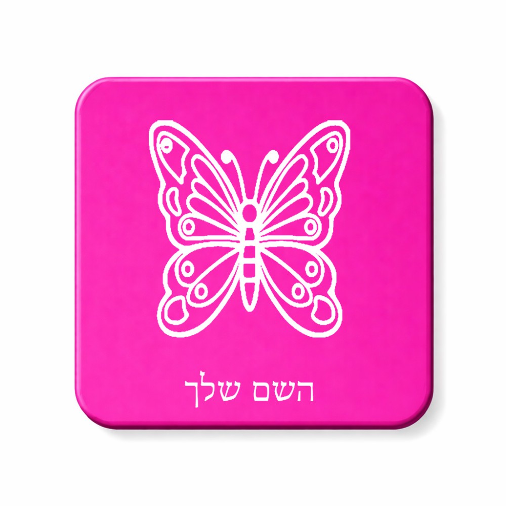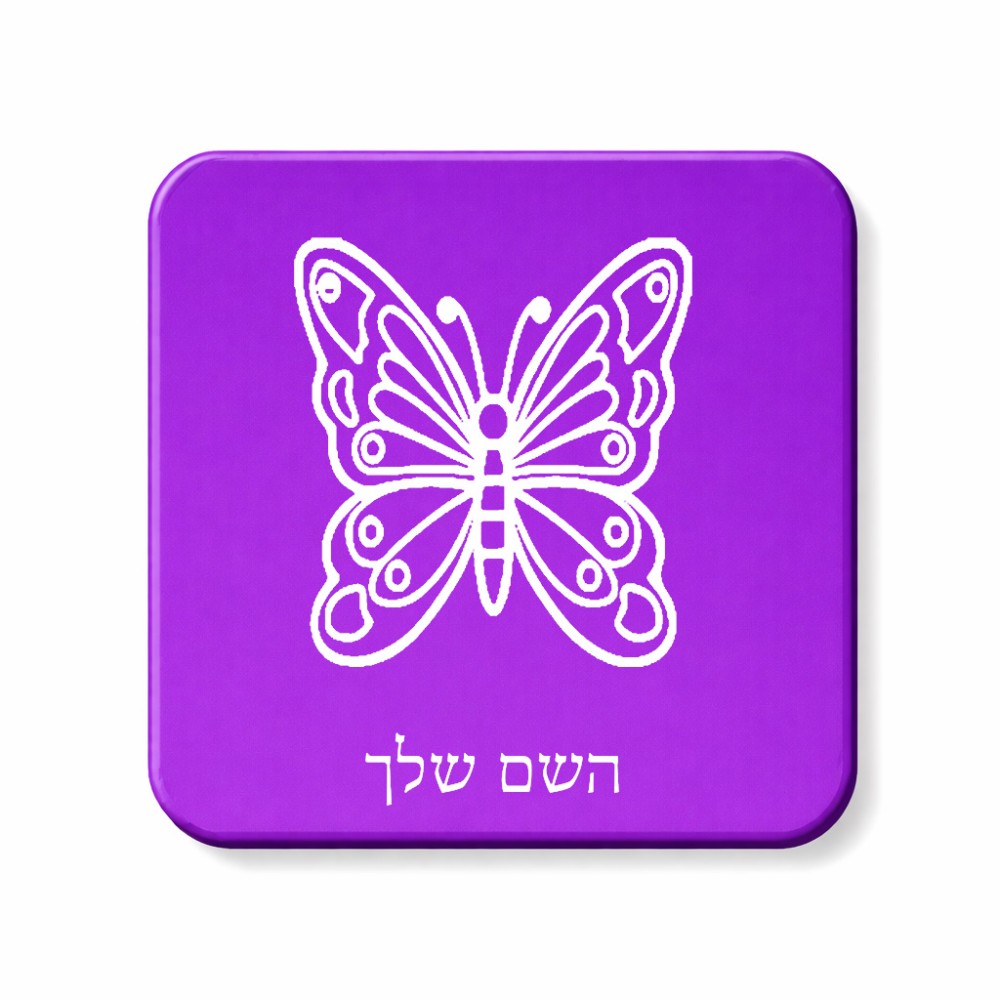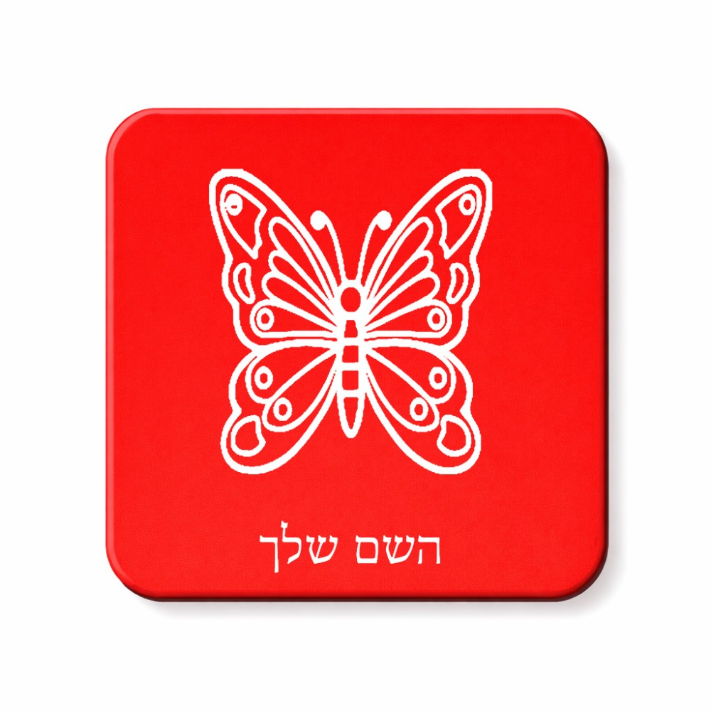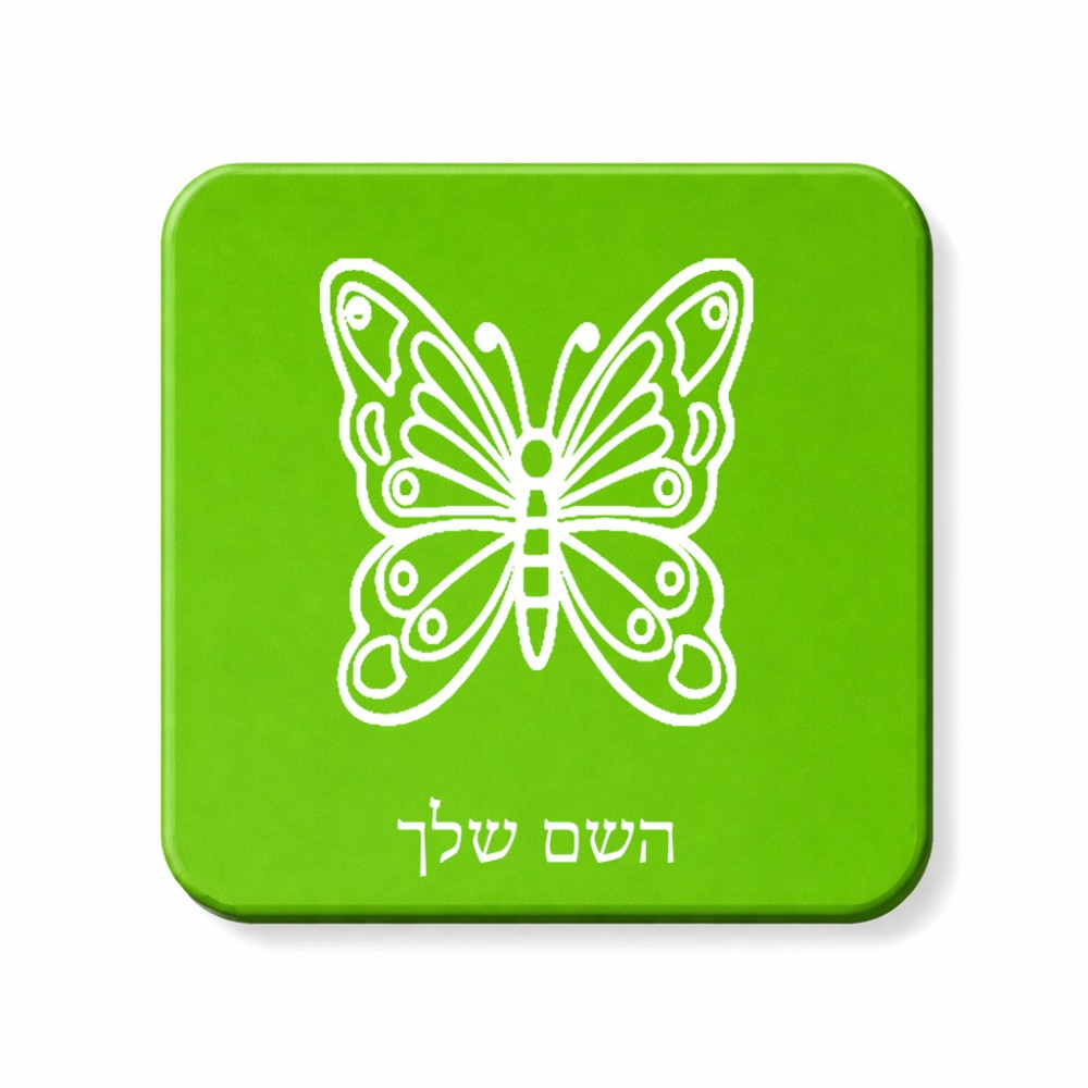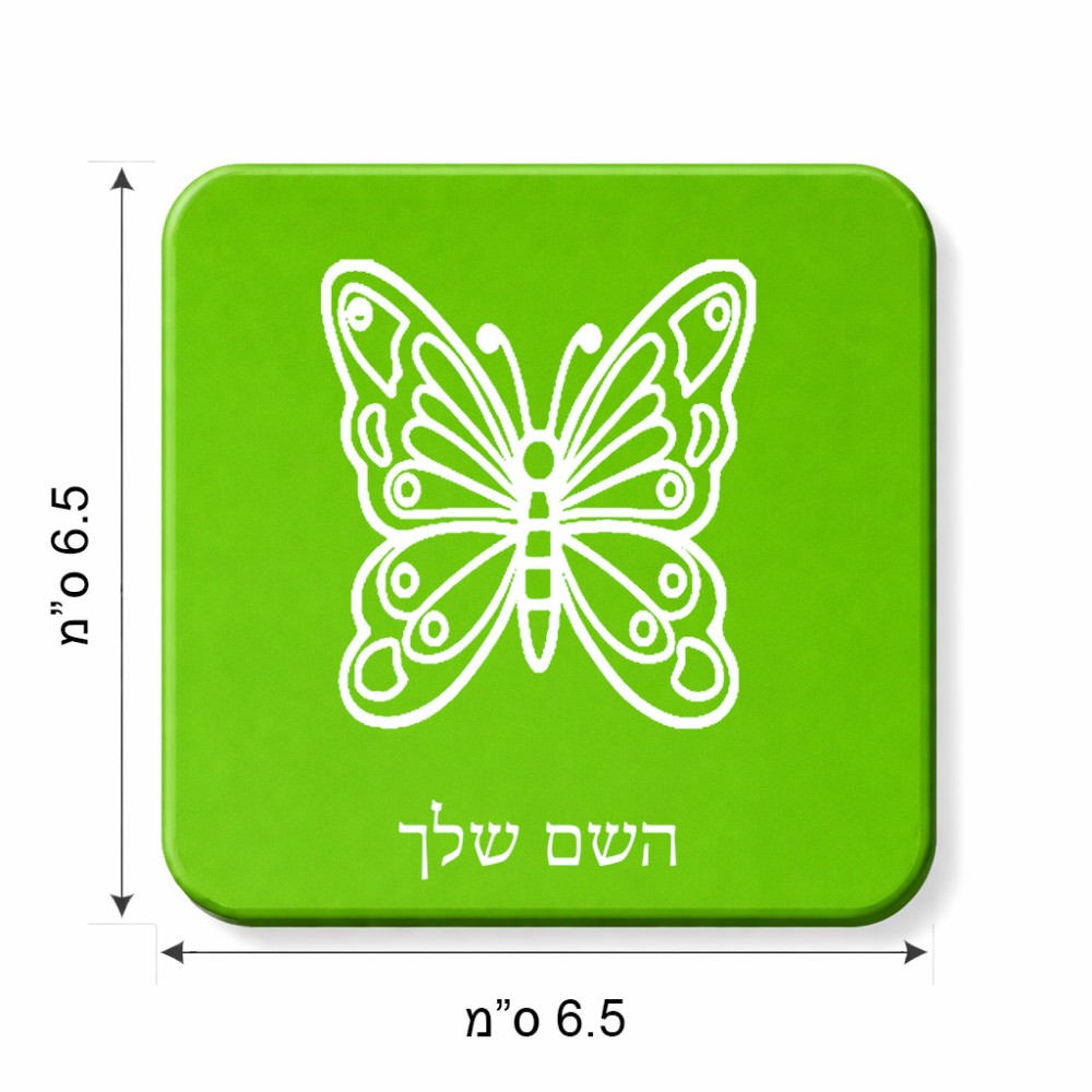 מגנט למקרר בעיצוב אישי עם השם שלך בעיצוב פרפר גודל המגנט 6.5 × 6.5 ס"מ. את השם המבוקש ניתן לציין בהזמנה, אם לא צויין אנחנו ניצור קשר לבירור.