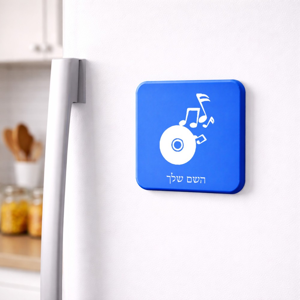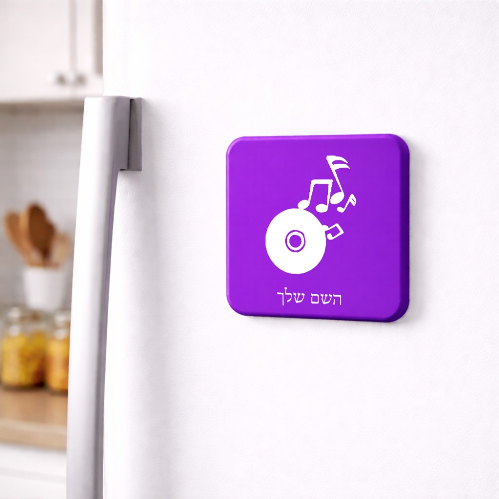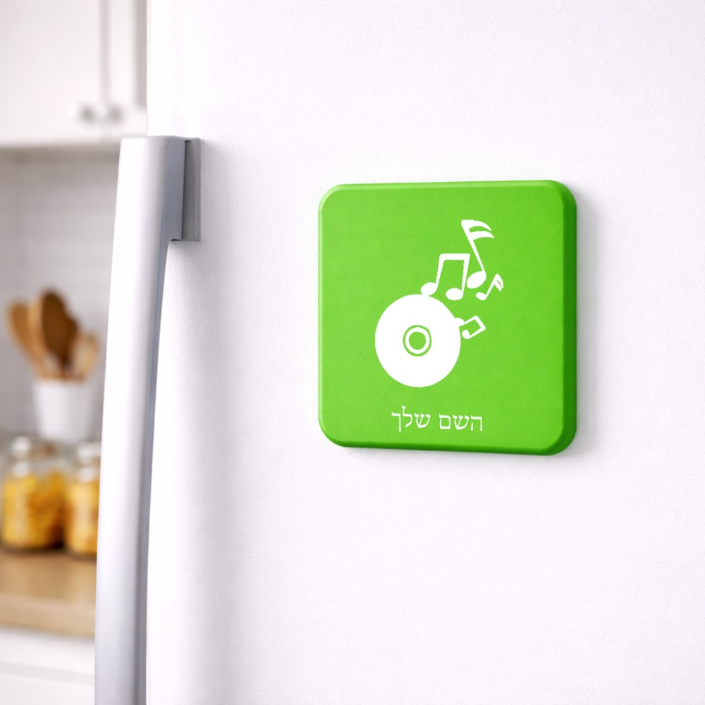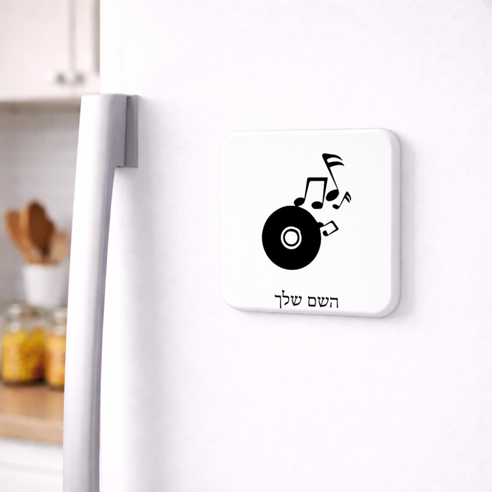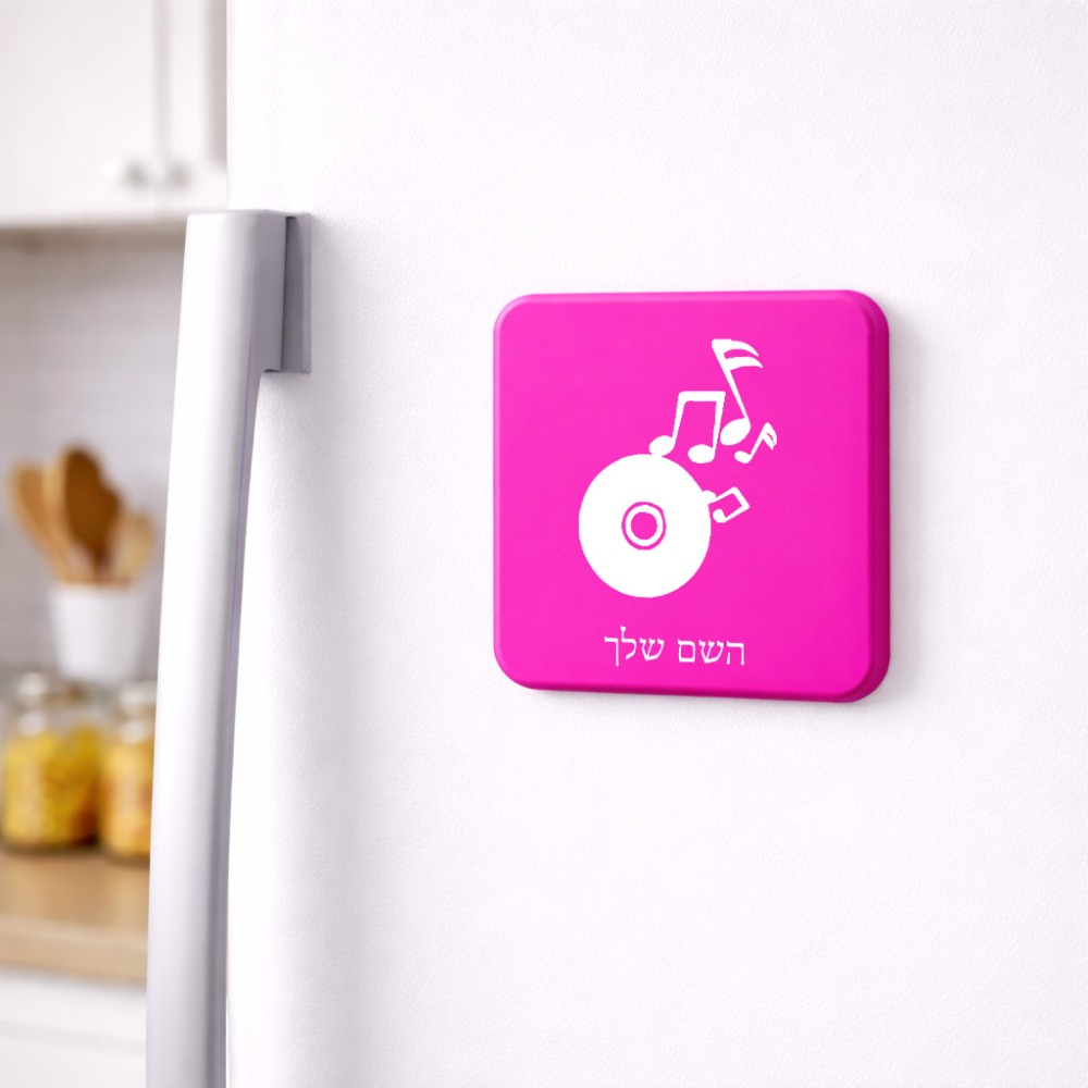 מגנט למקרר בעיצוב אישי עם השם שלך בעיצוב תקליטור - אזור מוזיקה גודל המגנט 6.5 × 6.5 ס"מ. את השם המבוקש ניתן לציין בהזמנה, אם לא צויין אנחנו ניצור קשר לבירור.