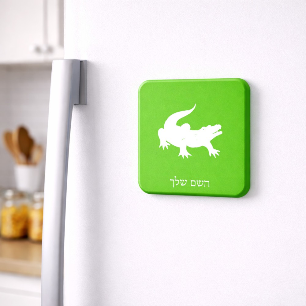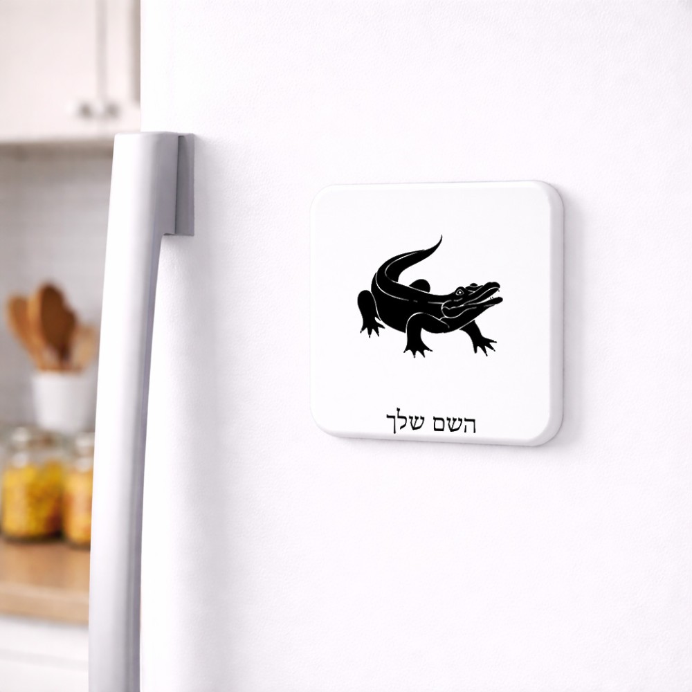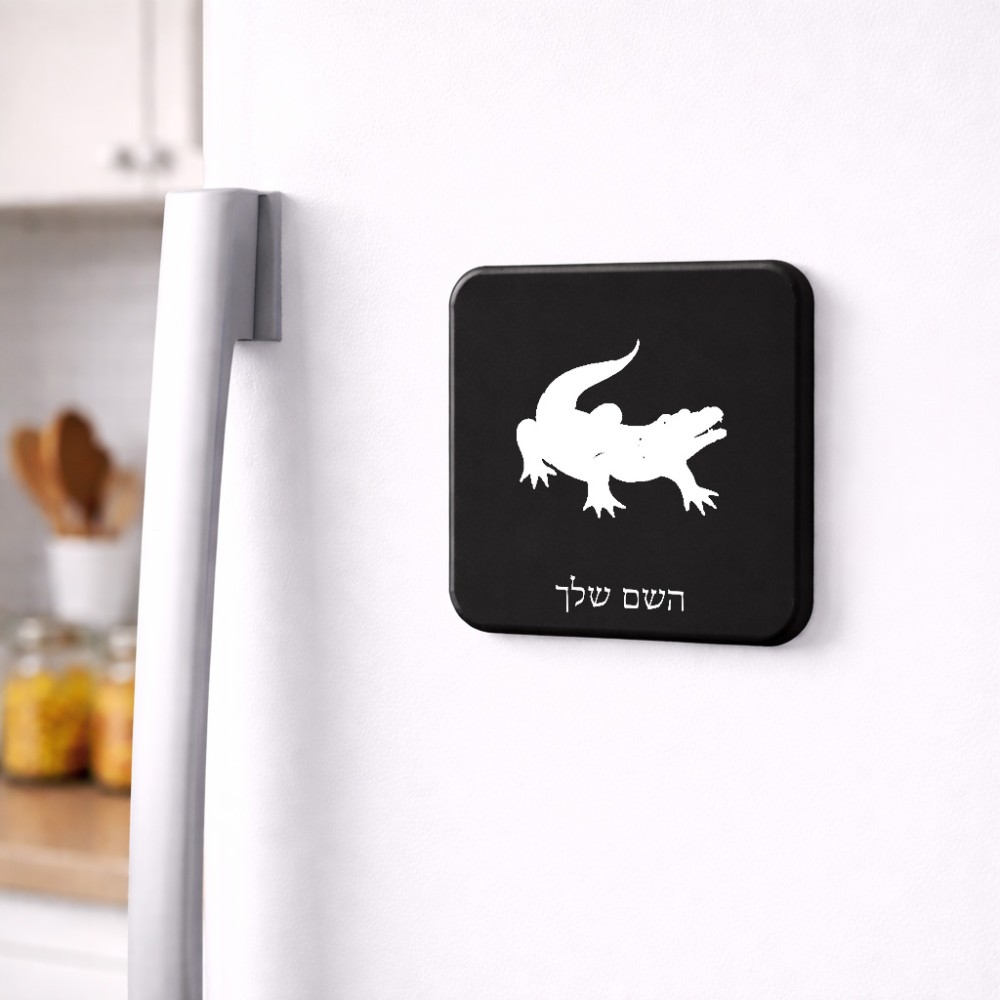 מגנט למקרר בעיצוב אישי עם השם שלך בעיצוב תנין גודל המגנט 6.5 × 6.5 ס"מ