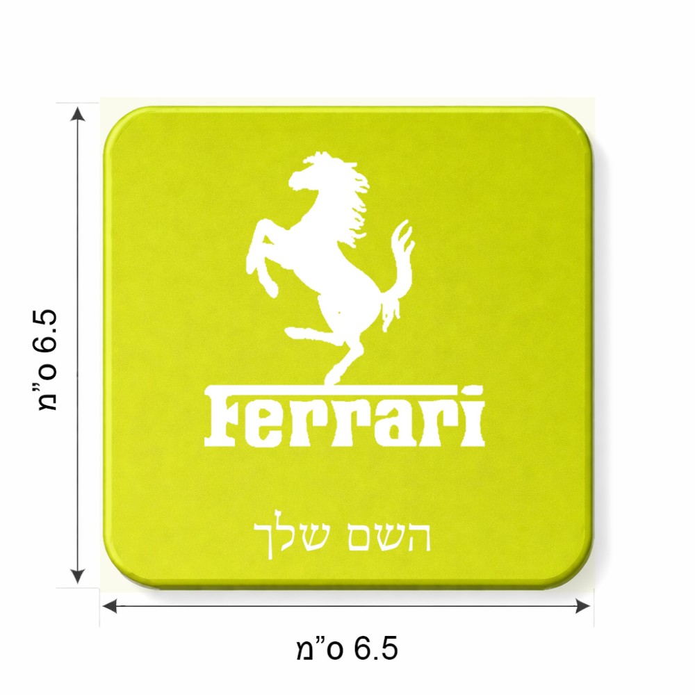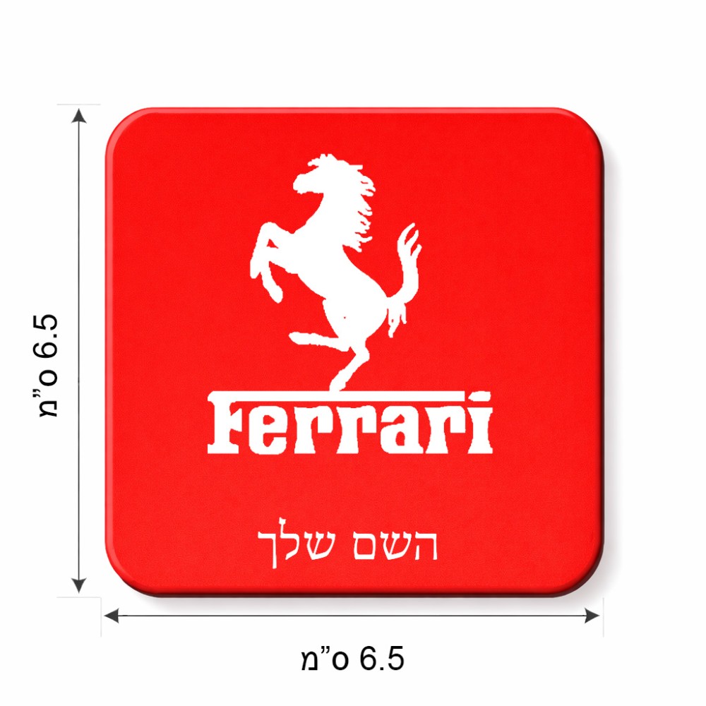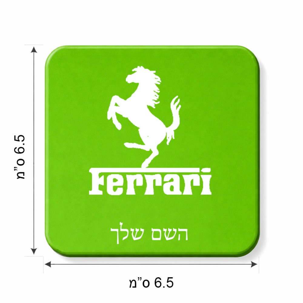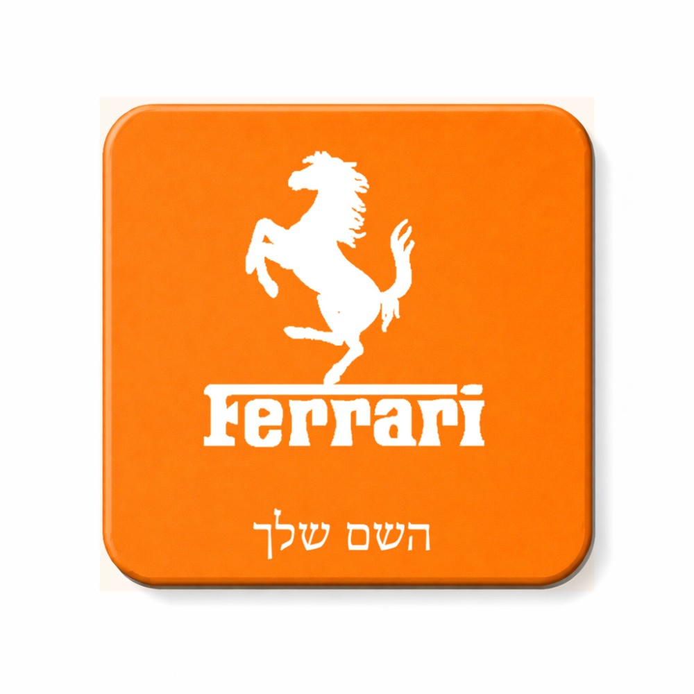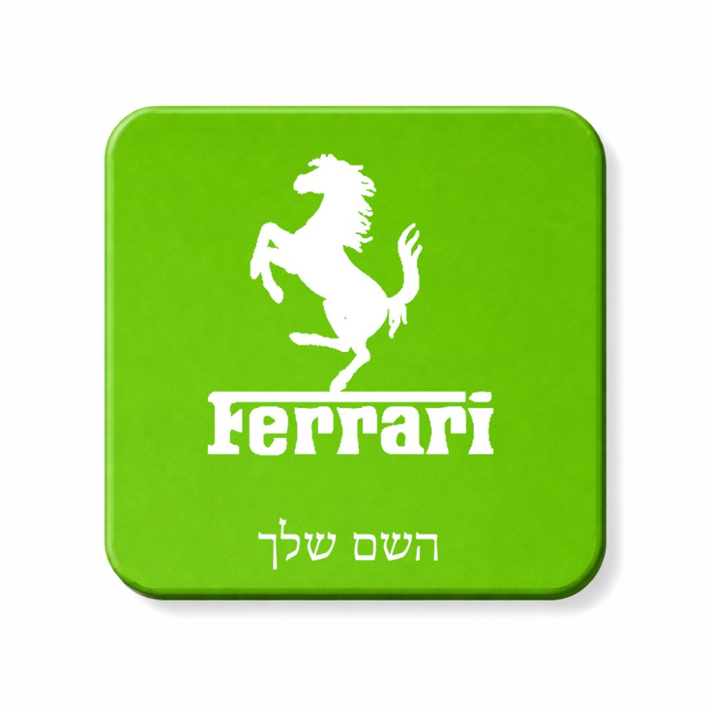 מגנט למקרר בעיצוב אישי עם השם שלך בעיצוב פרארי גודל המגנט 6.5 × 6.5 ס"מ. את השם המבוקש ניתן לציין בהזמנה, אם לא צויין אנחנו ניצור קשר לבירור.