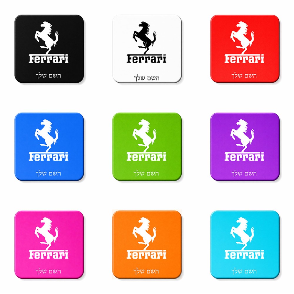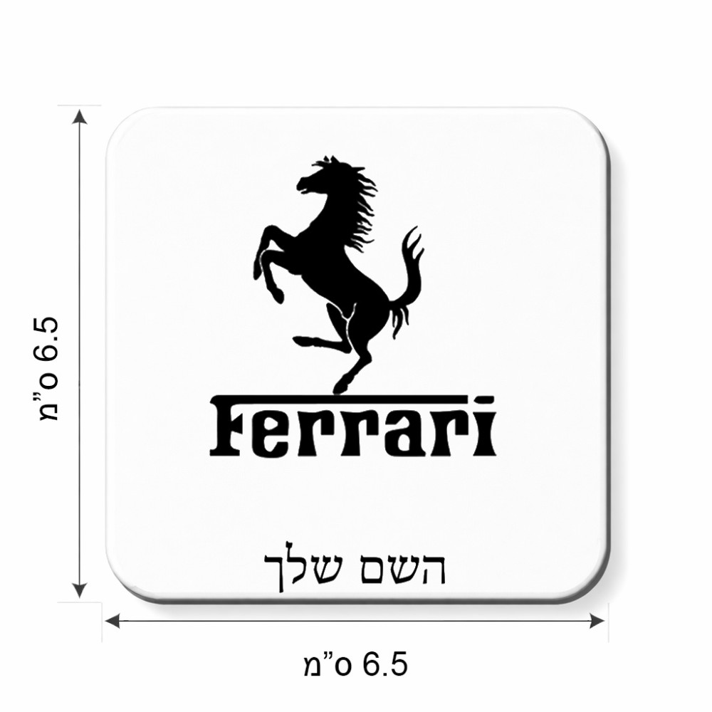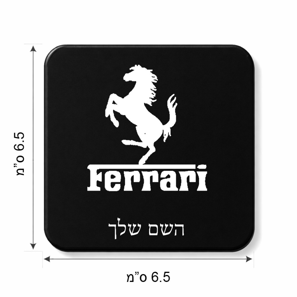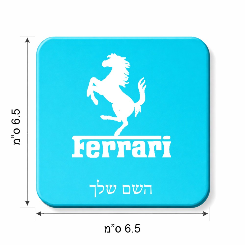 מגנט למקרר בעיצוב אישי עם השם שלך בעיצוב פרארי גודל המגנט 6.5 × 6.5 ס"מ. את השם המבוקש ניתן לציין בהזמנה, אם לא צויין אנחנו ניצור קשר לבירור.