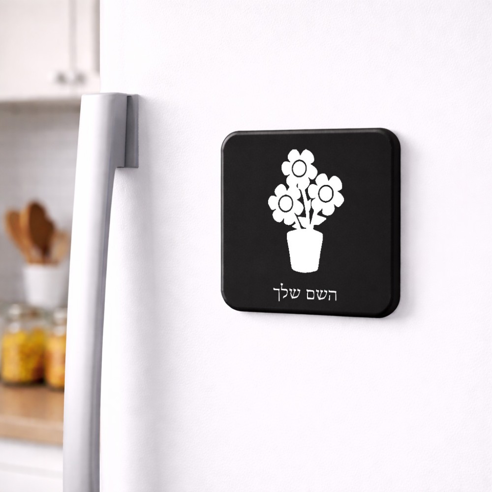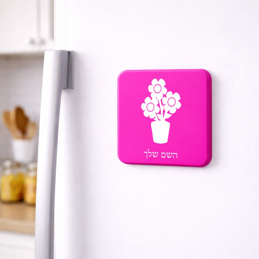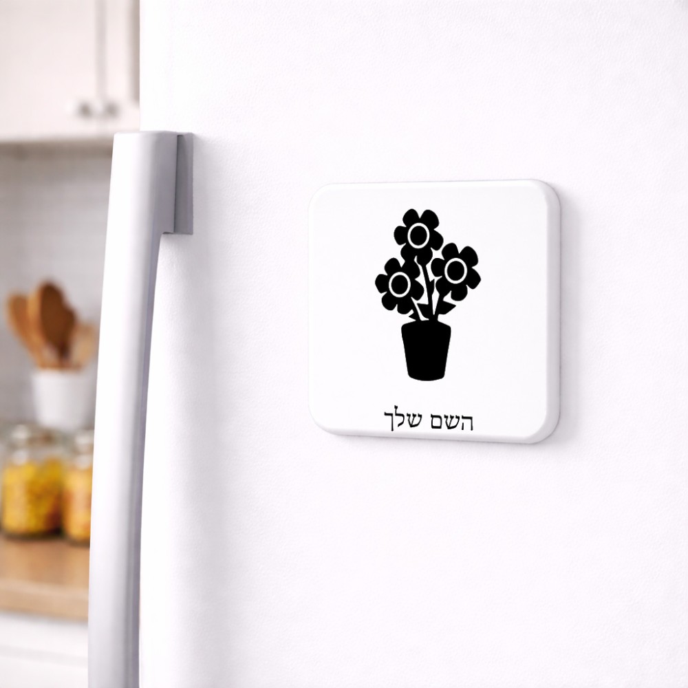 מגנט למקרר בעיצוב אישי עם השם שלך בעיצוב פרח גודל המגנט 6.5 × 6.5 ס"מ. את השם המבוקש ניתן לציין בהזמנה, אם לא צויין אנחנו ניצור קשר לבירור.
