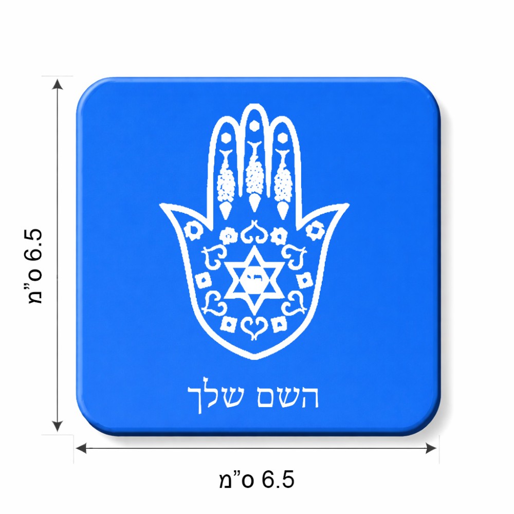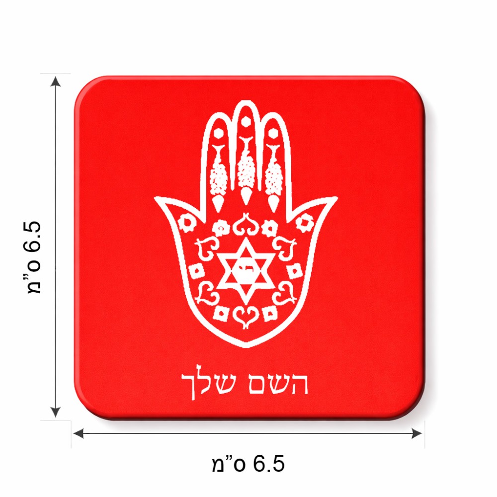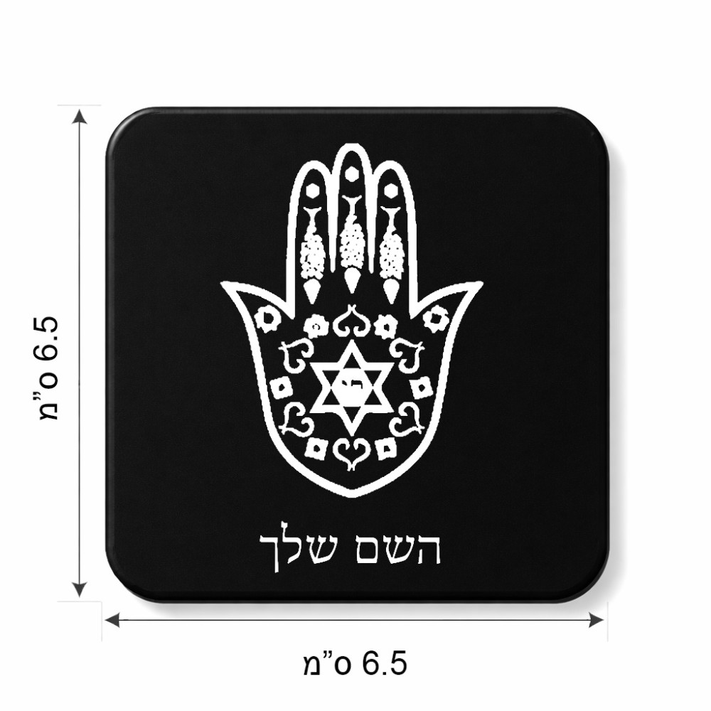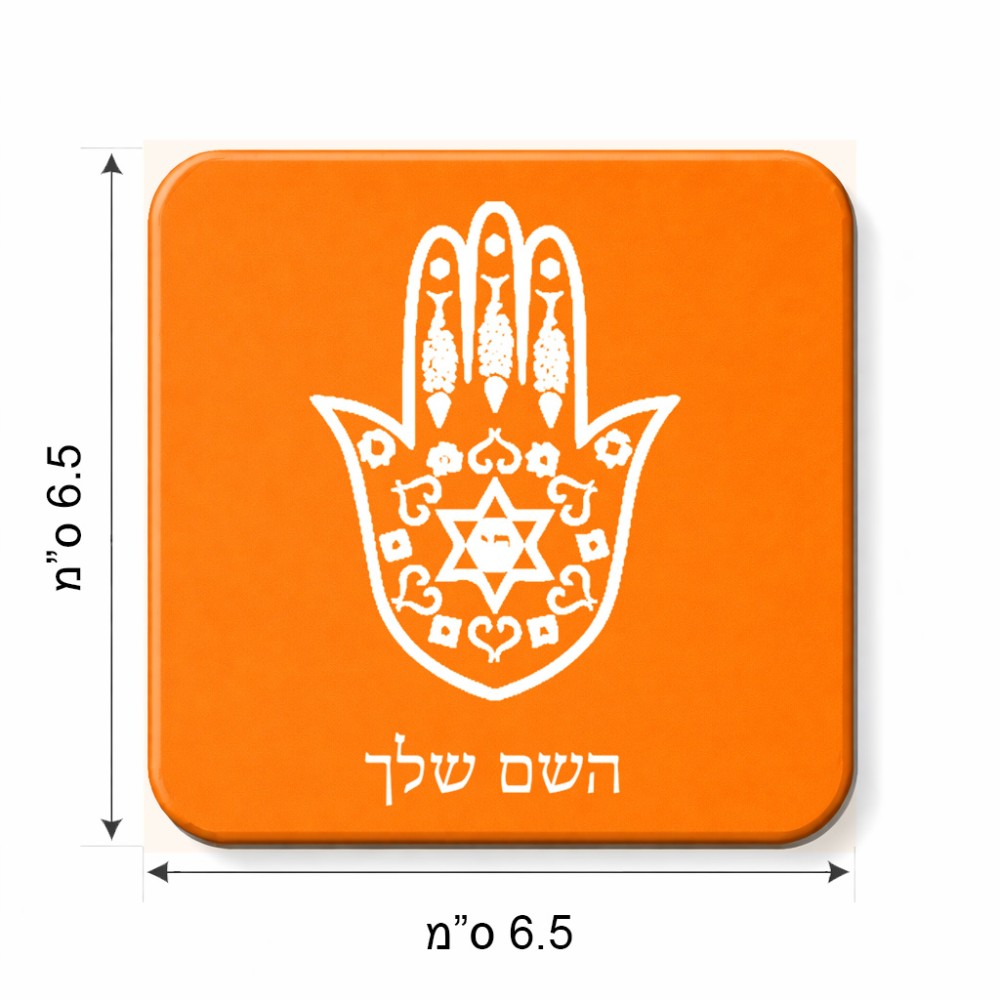 מגנט למקרר בעיצוב אישי עם השם שלך בעיצוב חמסה - קבלה גודל המגנט 6.5 × 6.5 ס"מ. את השם המבוקש ניתן לציין בהזמנה, אם לא צויין אנחנו ניצור קשר לבירור.