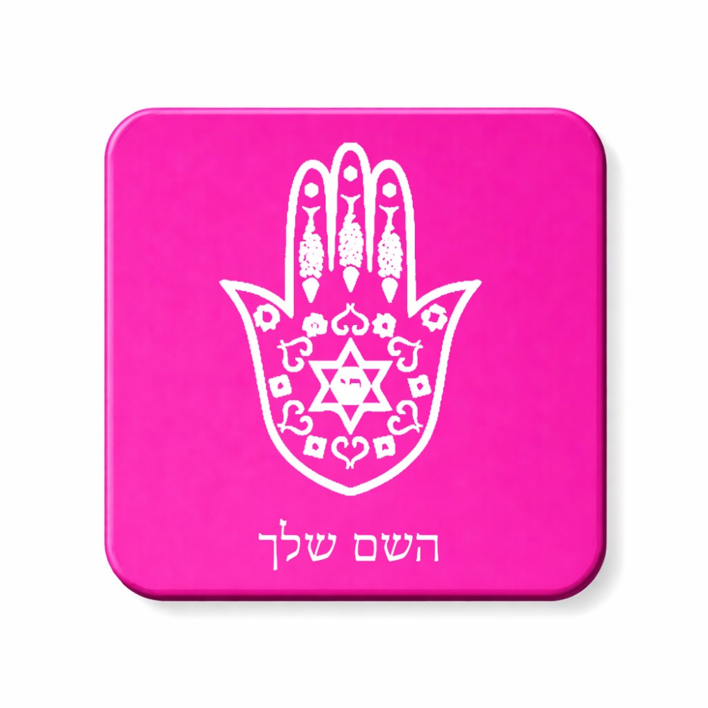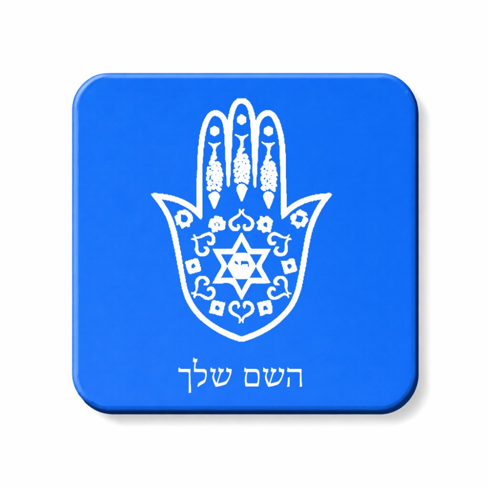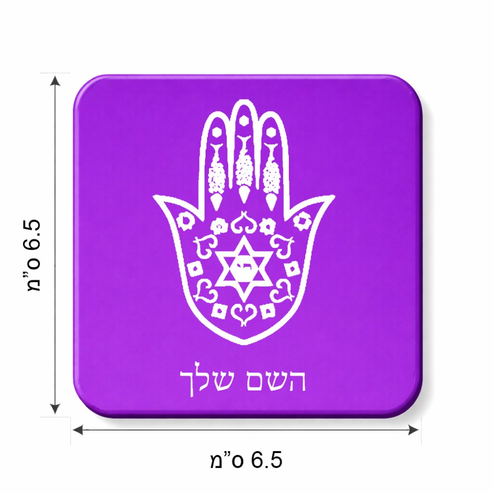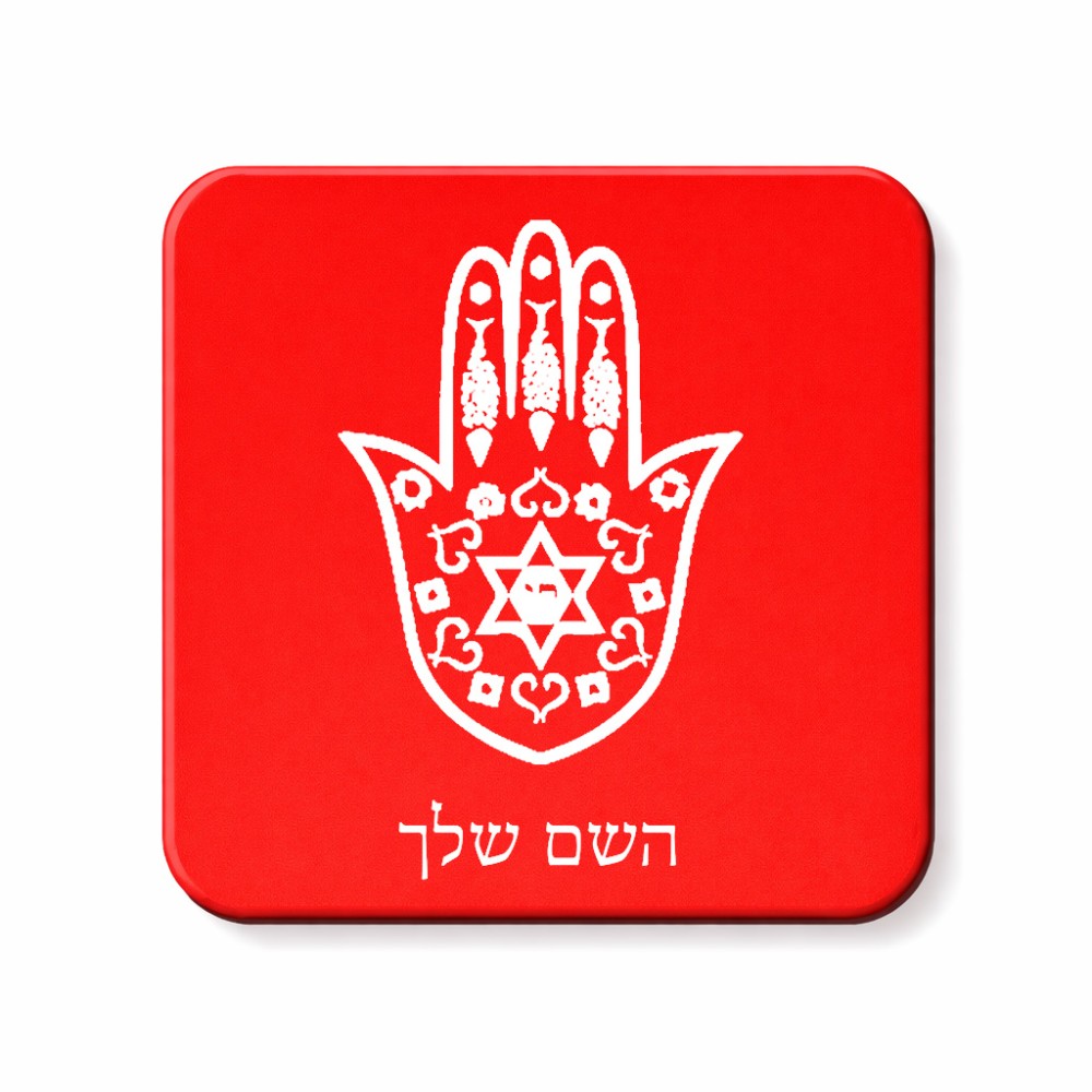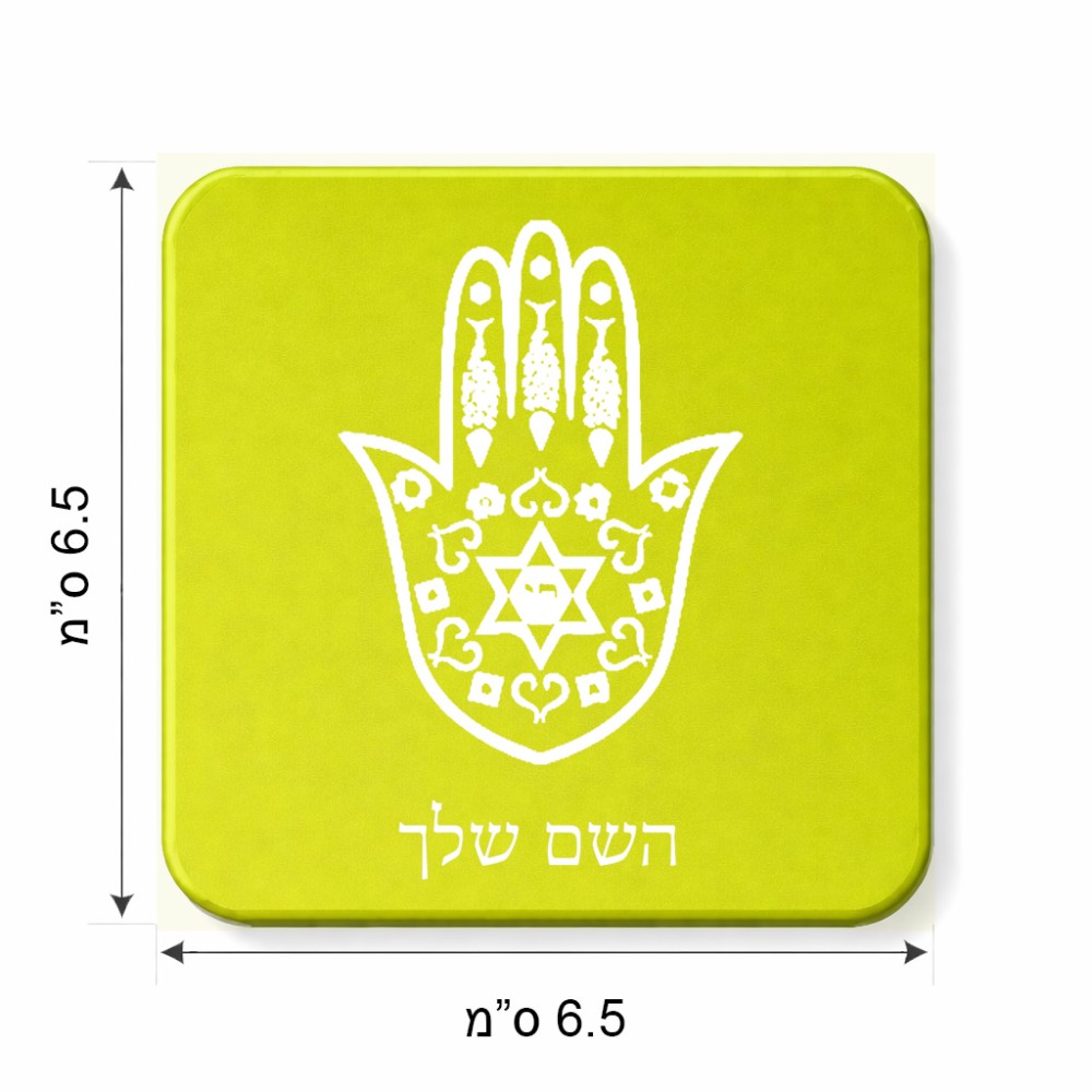 מגנט למקרר בעיצוב אישי עם השם שלך בעיצוב חמסה - קבלה גודל המגנט 6.5 × 6.5 ס"מ. את השם המבוקש ניתן לציין בהזמנה, אם לא צויין אנחנו ניצור קשר לבירור.