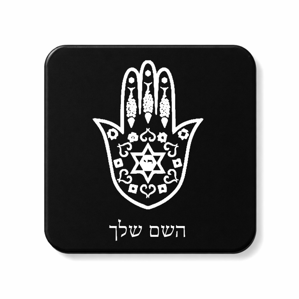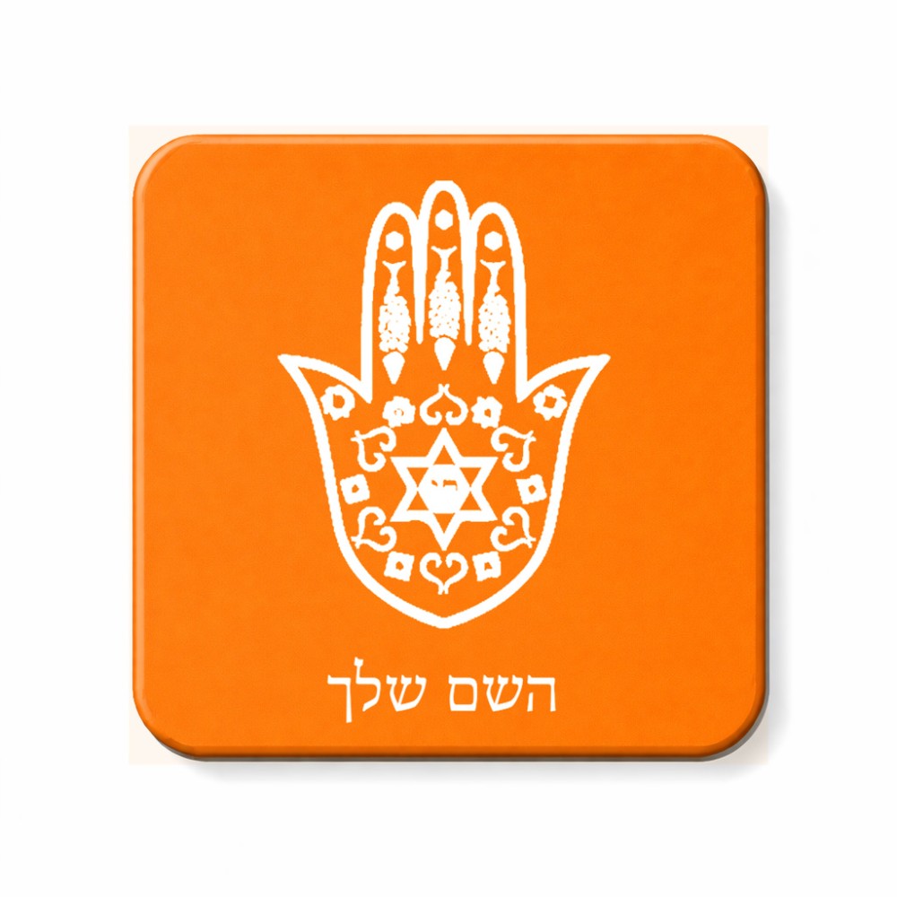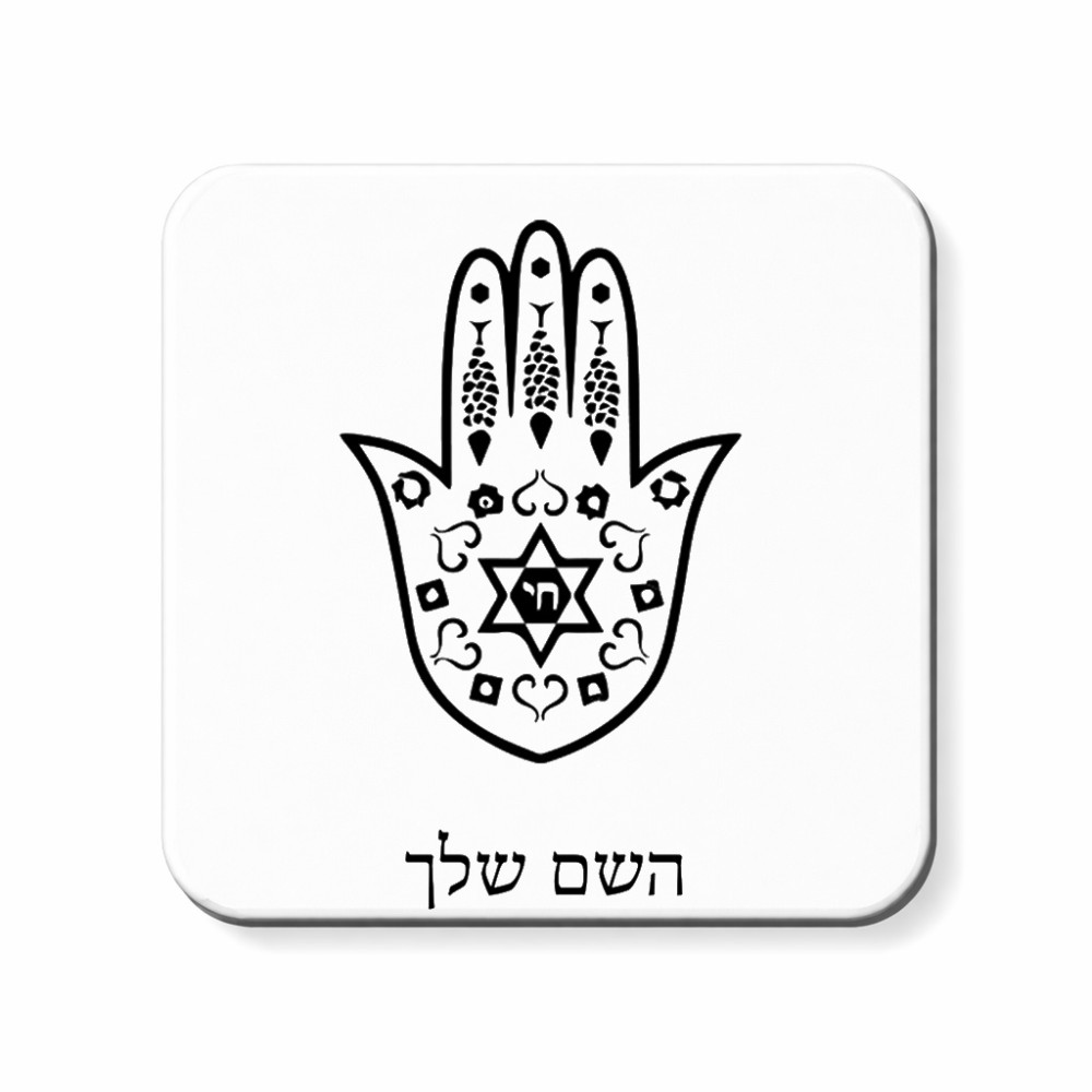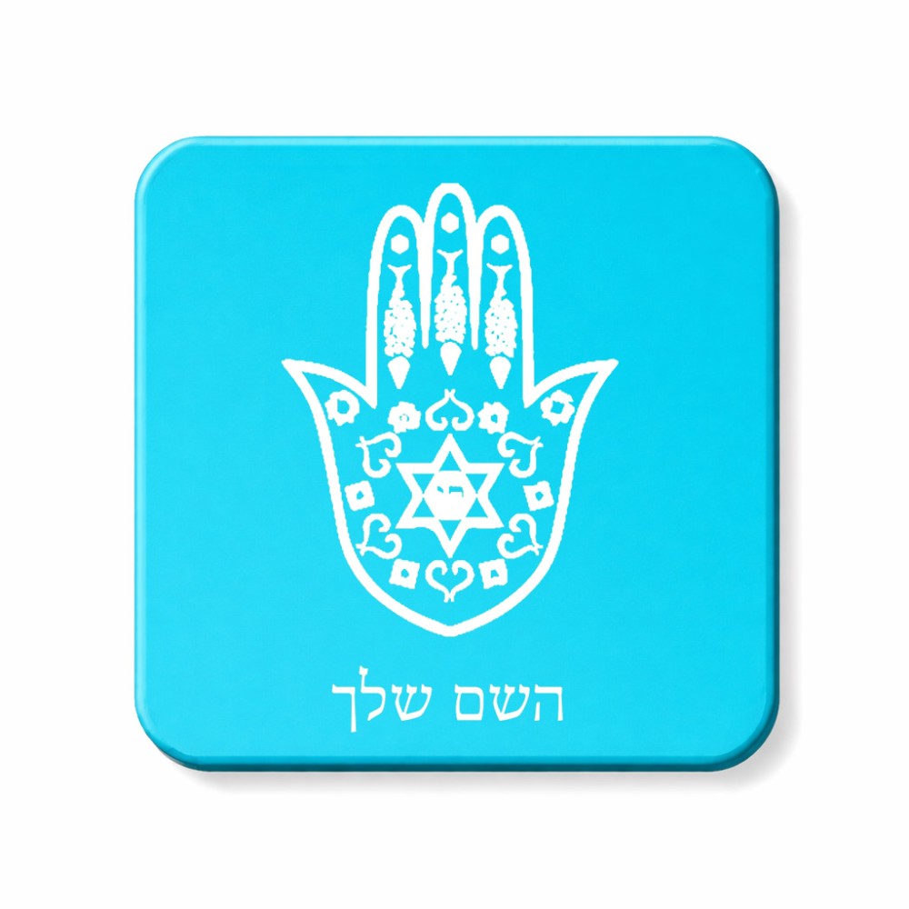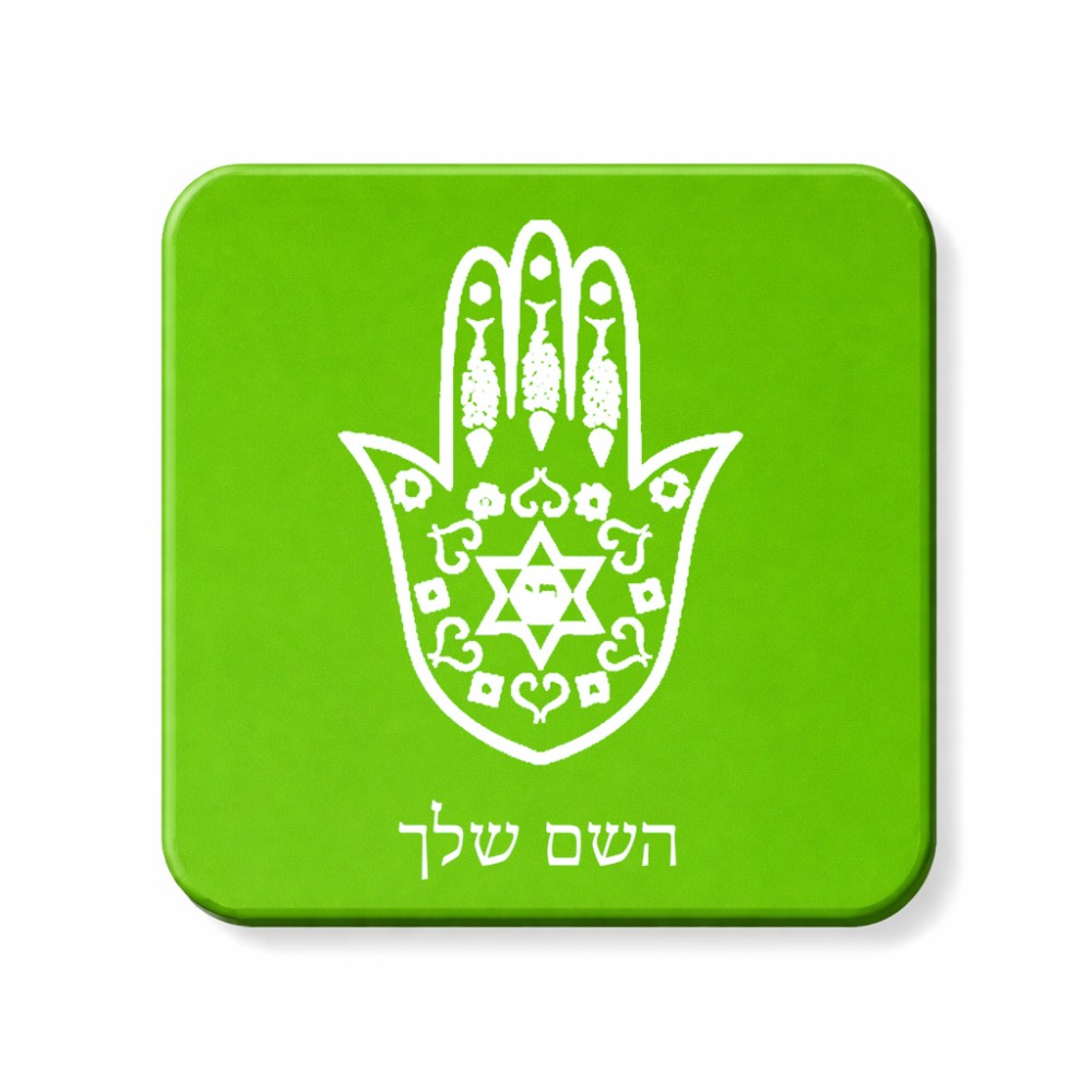 מגנט למקרר בעיצוב אישי עם השם שלך בעיצוב חמסה - קבלה גודל המגנט 6.5 × 6.5 ס"מ. את השם המבוקש ניתן לציין בהזמנה, אם לא צויין אנחנו ניצור קשר לבירור.