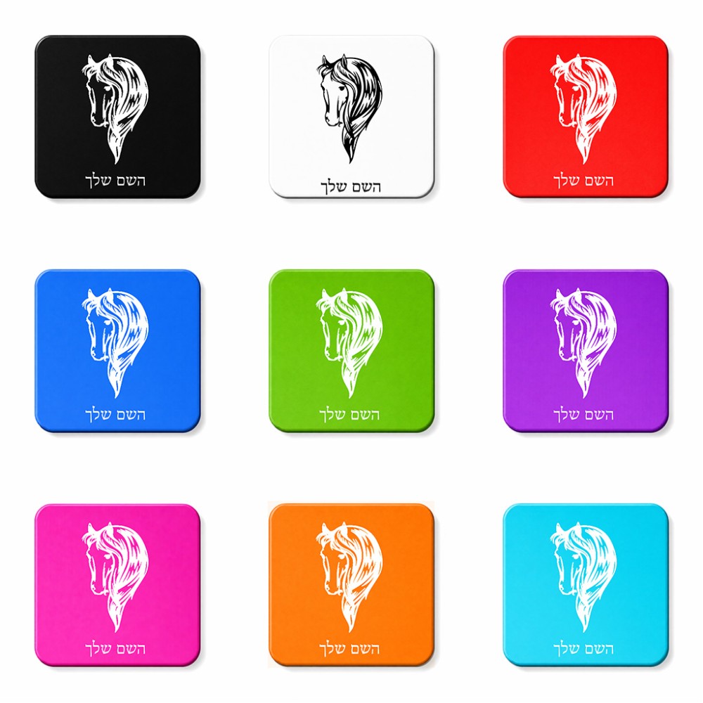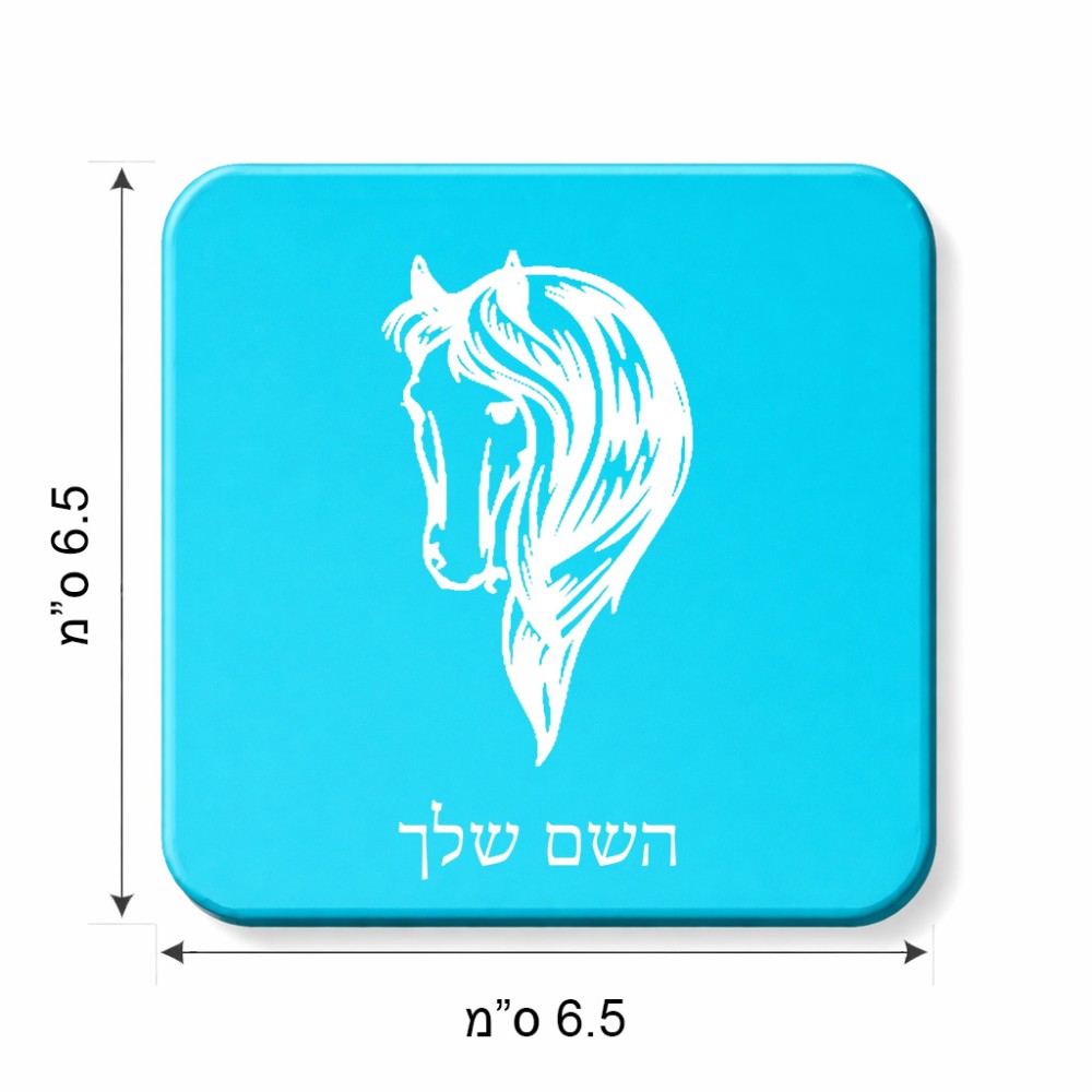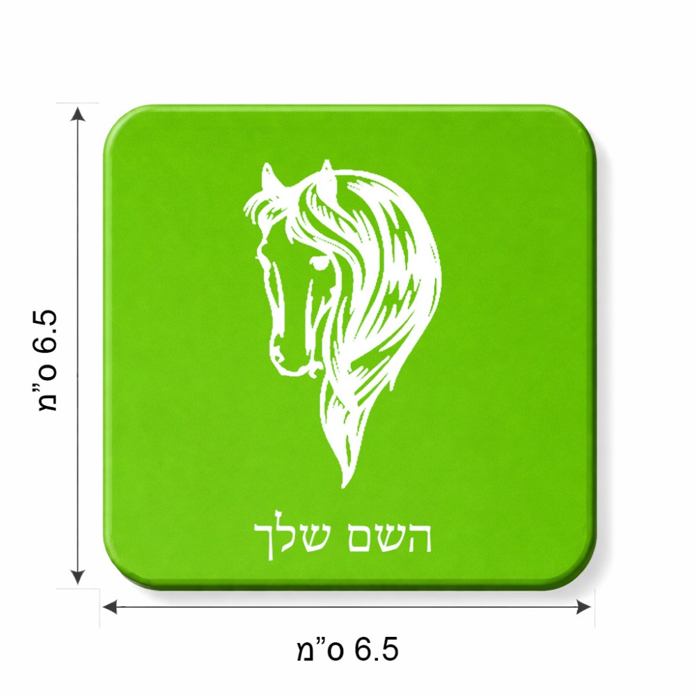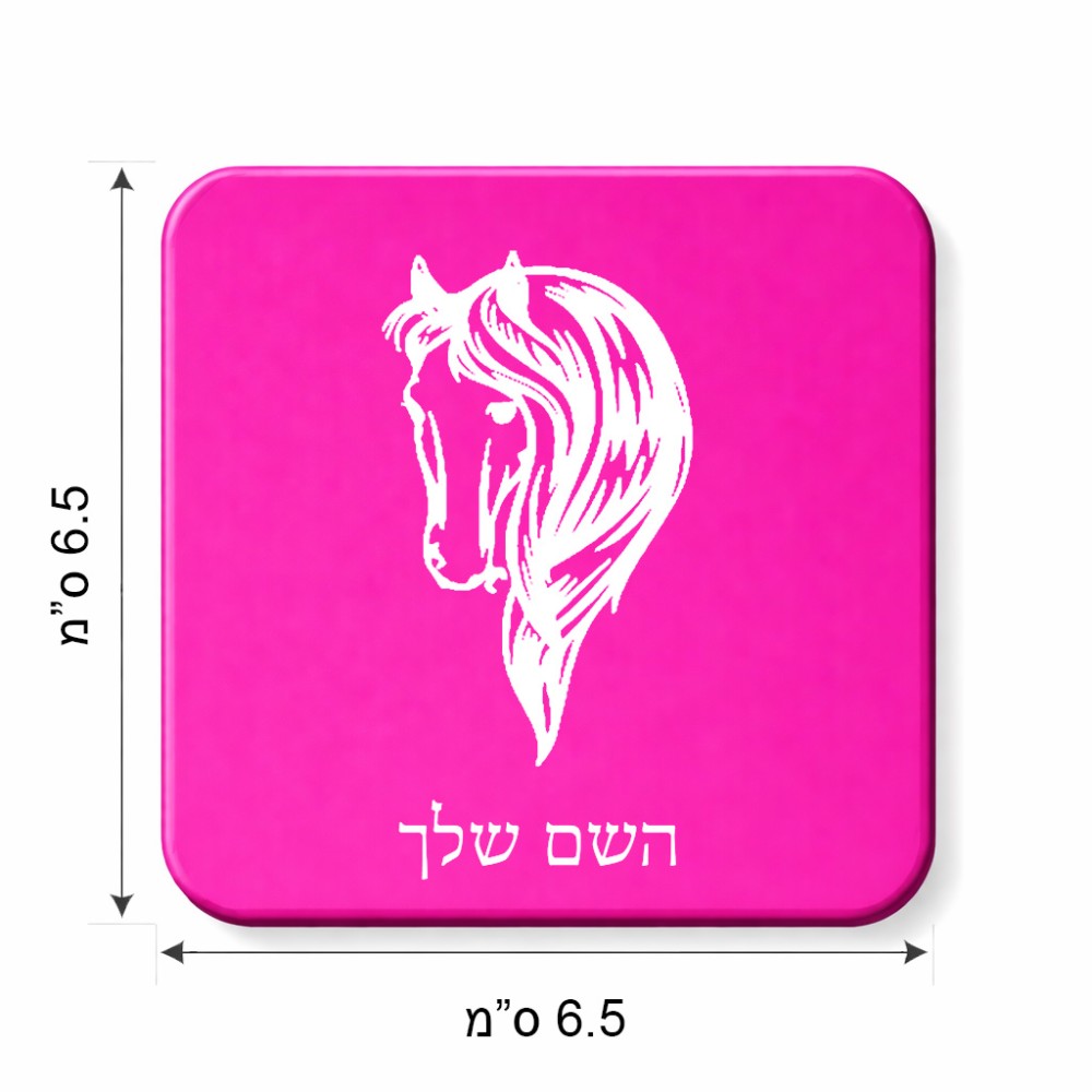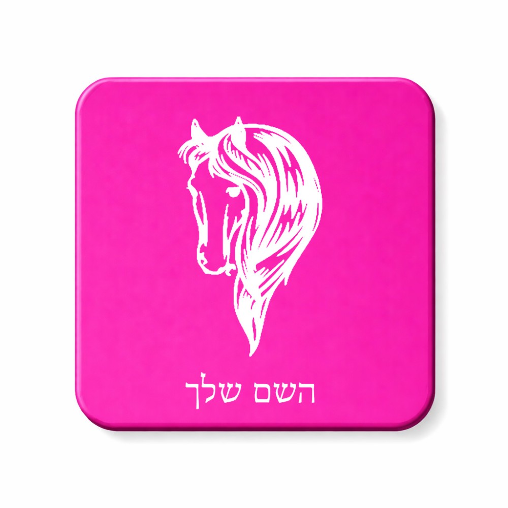 מגנט למקרר בעיצוב אישי עם השם שלך בעיצוב ראש סוס גודל המגנט 6.5 × 6.5 ס"מ. את השם המבוקש ניתן לציין בהזמנה, אם לא צויין אנחנו ניצור קשר לבירור.