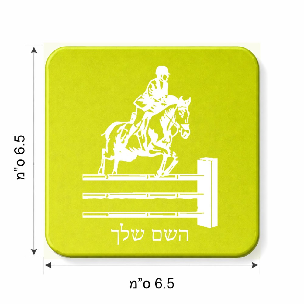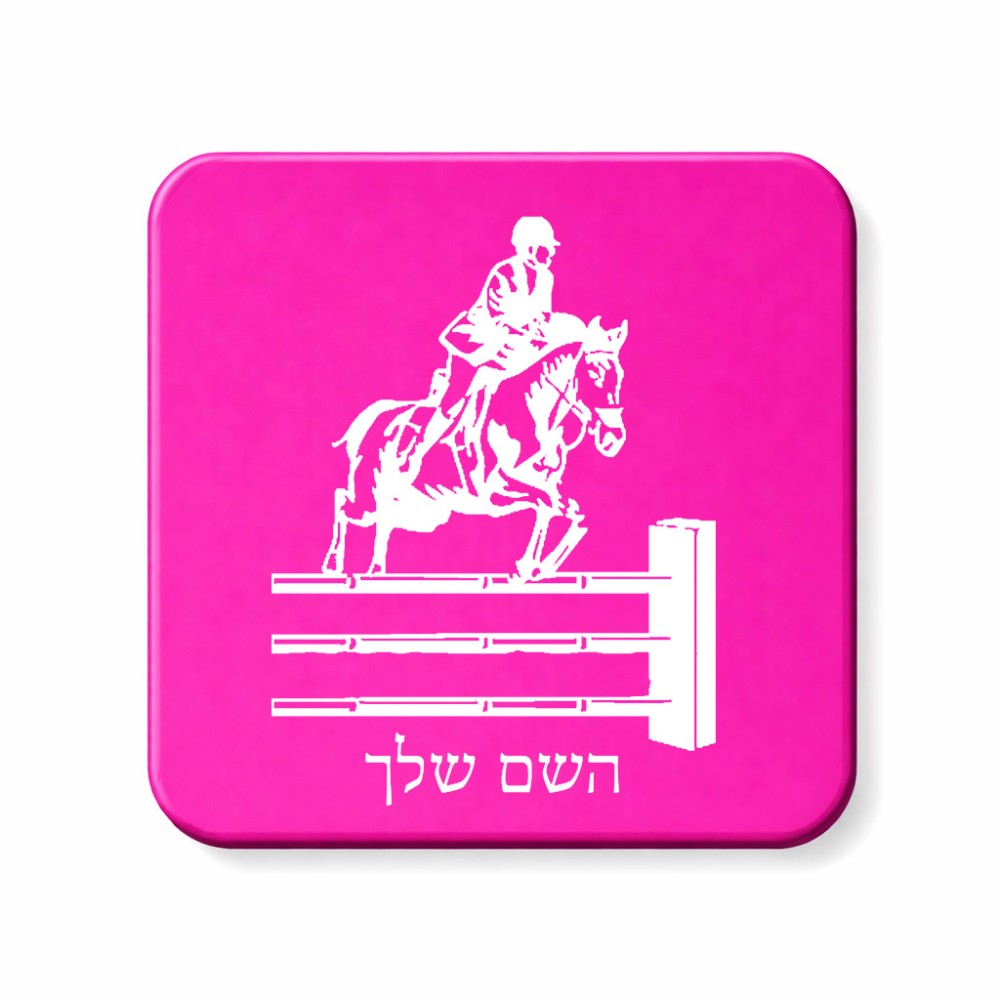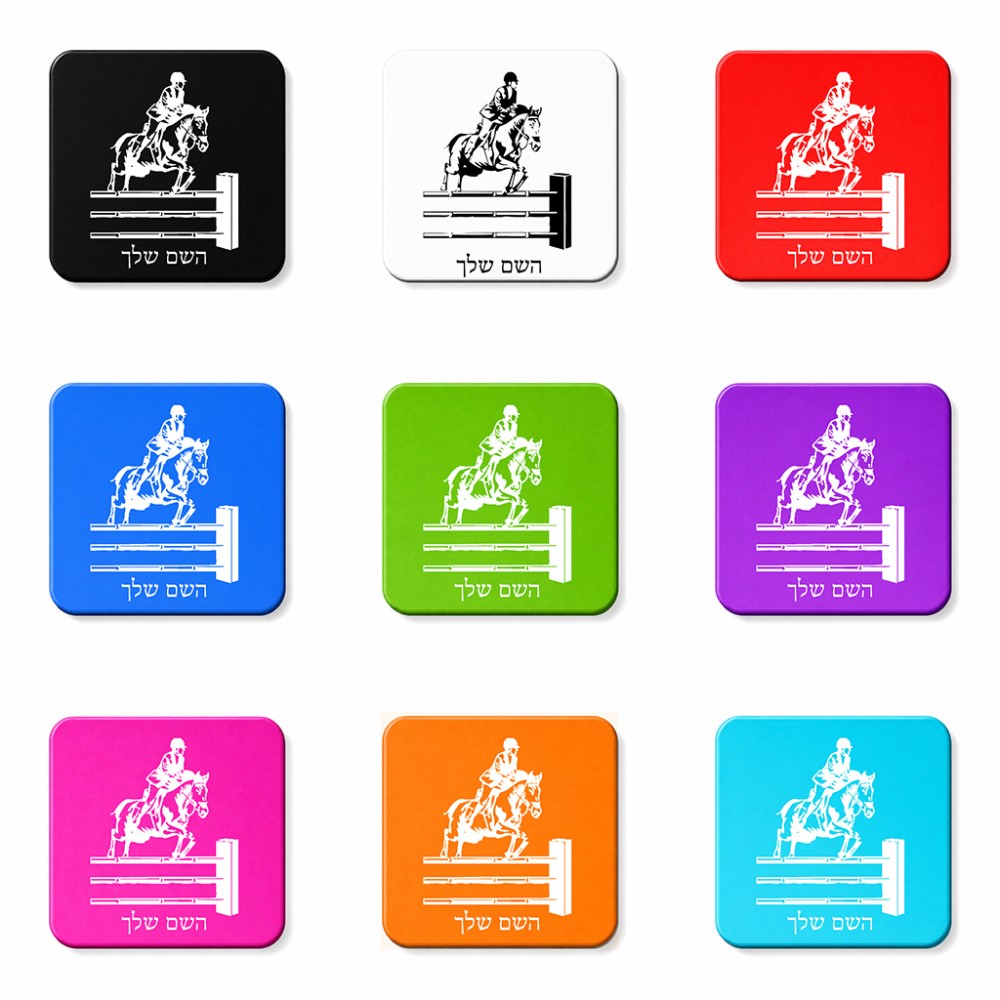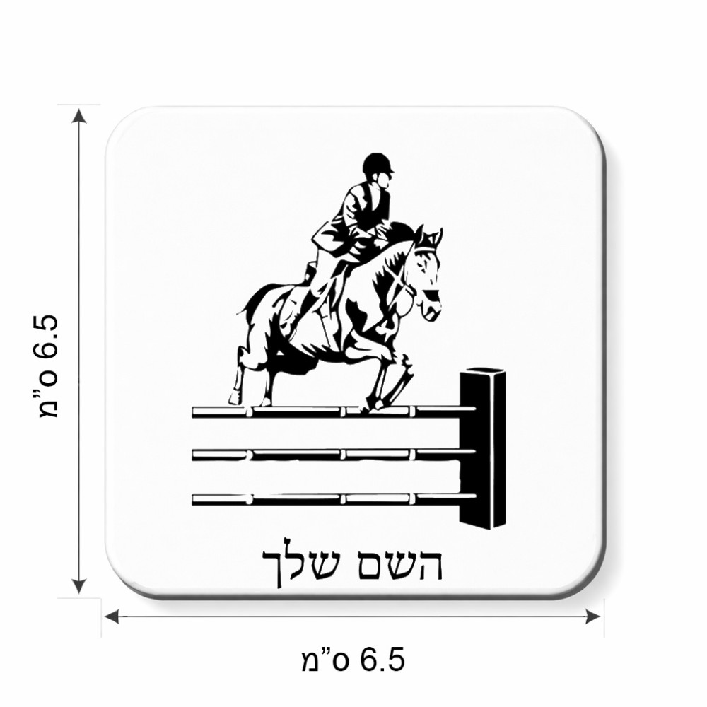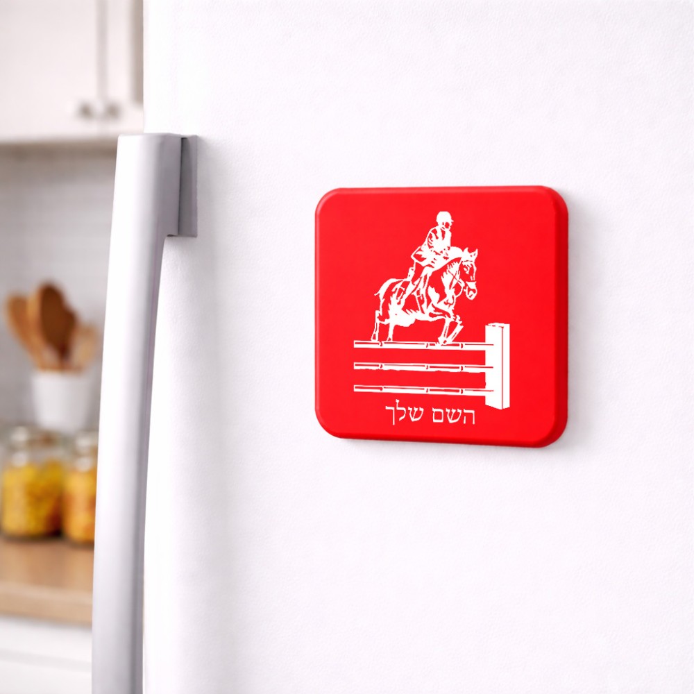 מגנט למקרר בעיצוב אישי עם השם שלך בעיצוב רוכב סוסים גודל המגנט 6.5 × 6.5 ס"מ. את השם המבוקש ניתן לציין בהזמנה, אם לא צויין אנחנו ניצור קשר לבירור.
