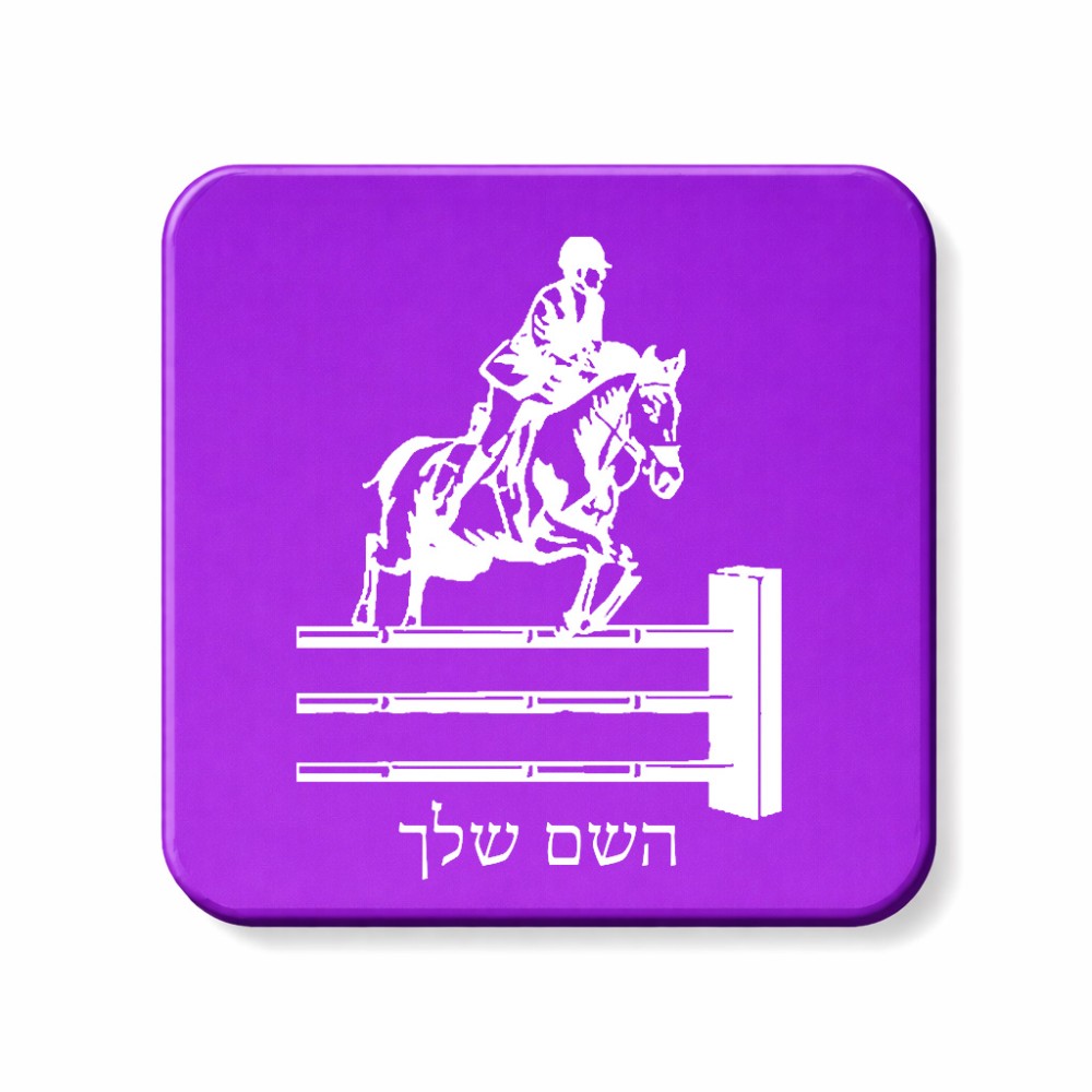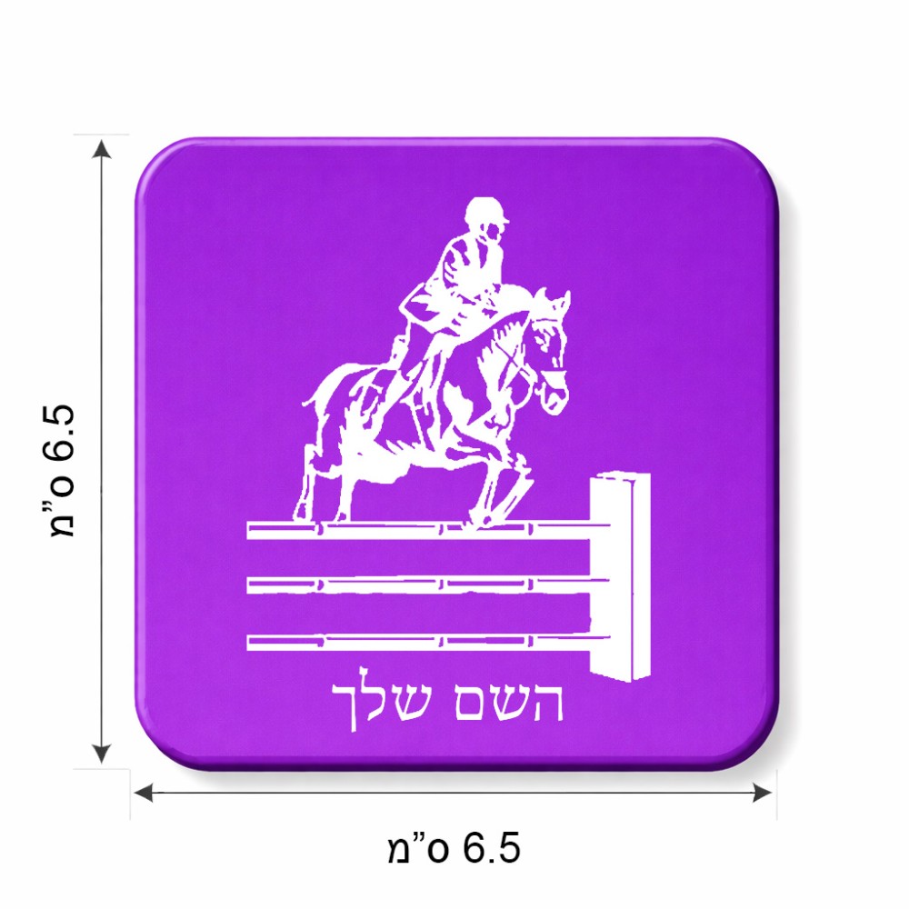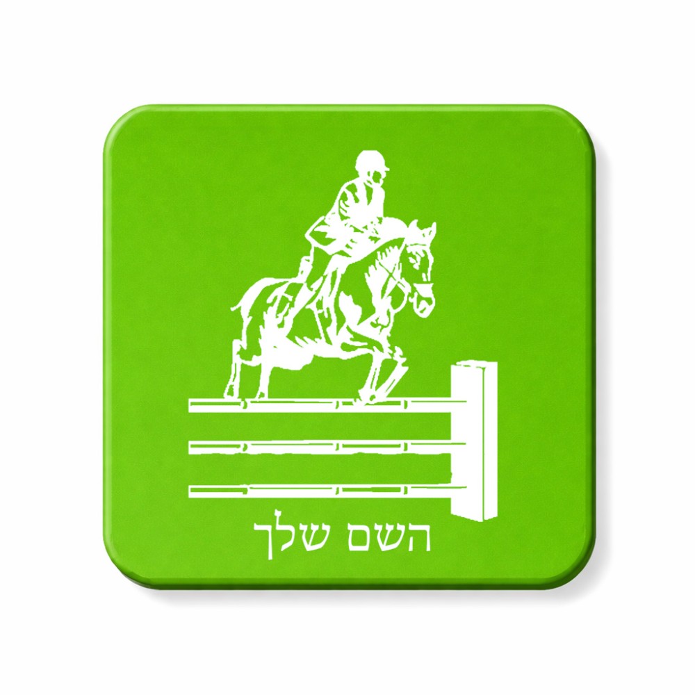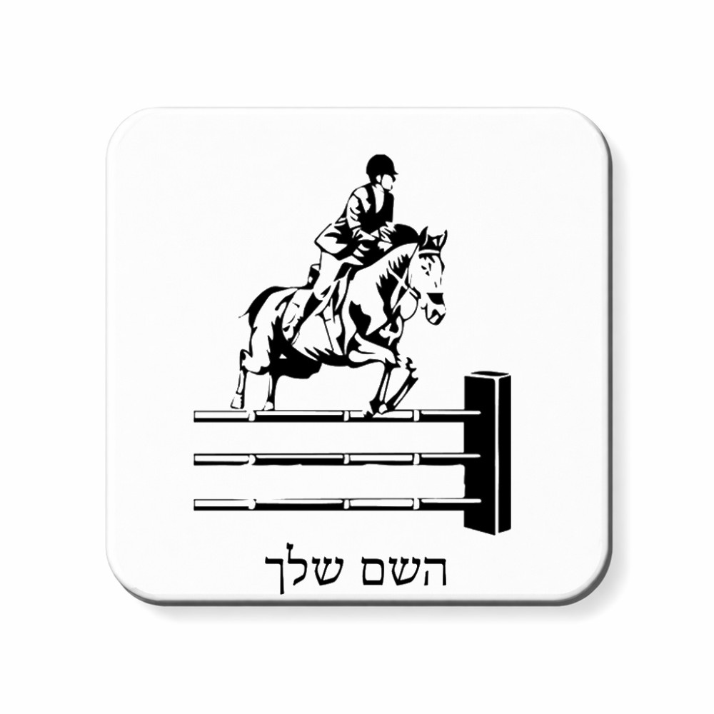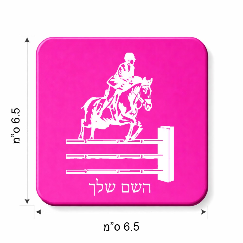מגנט למקרר בעיצוב אישי עם השם שלך בעיצוב רוכב סוסים גודל המגנט 6.5 × 6.5 ס"מ. את השם המבוקש ניתן לציין בהזמנה, אם לא צויין אנחנו ניצור קשר לבירור.