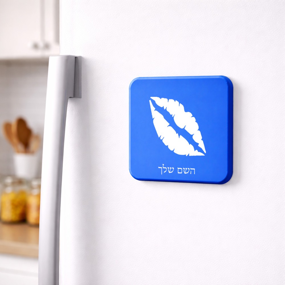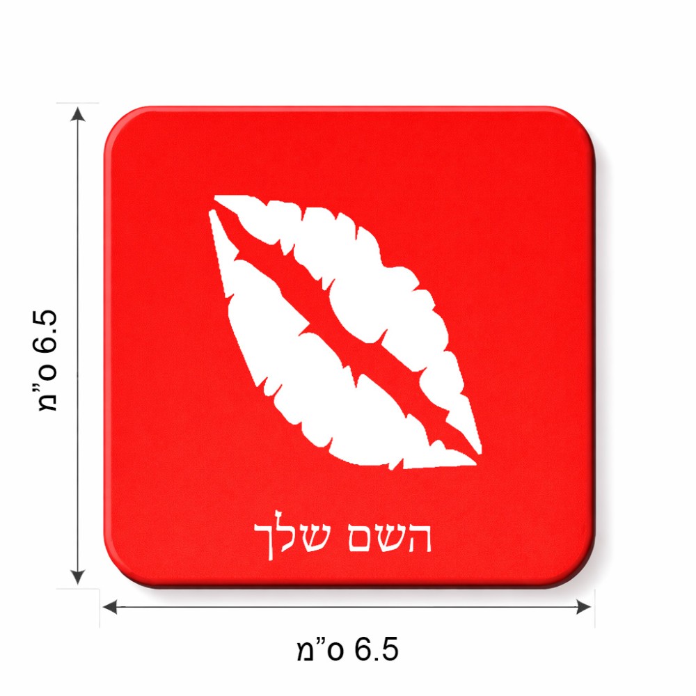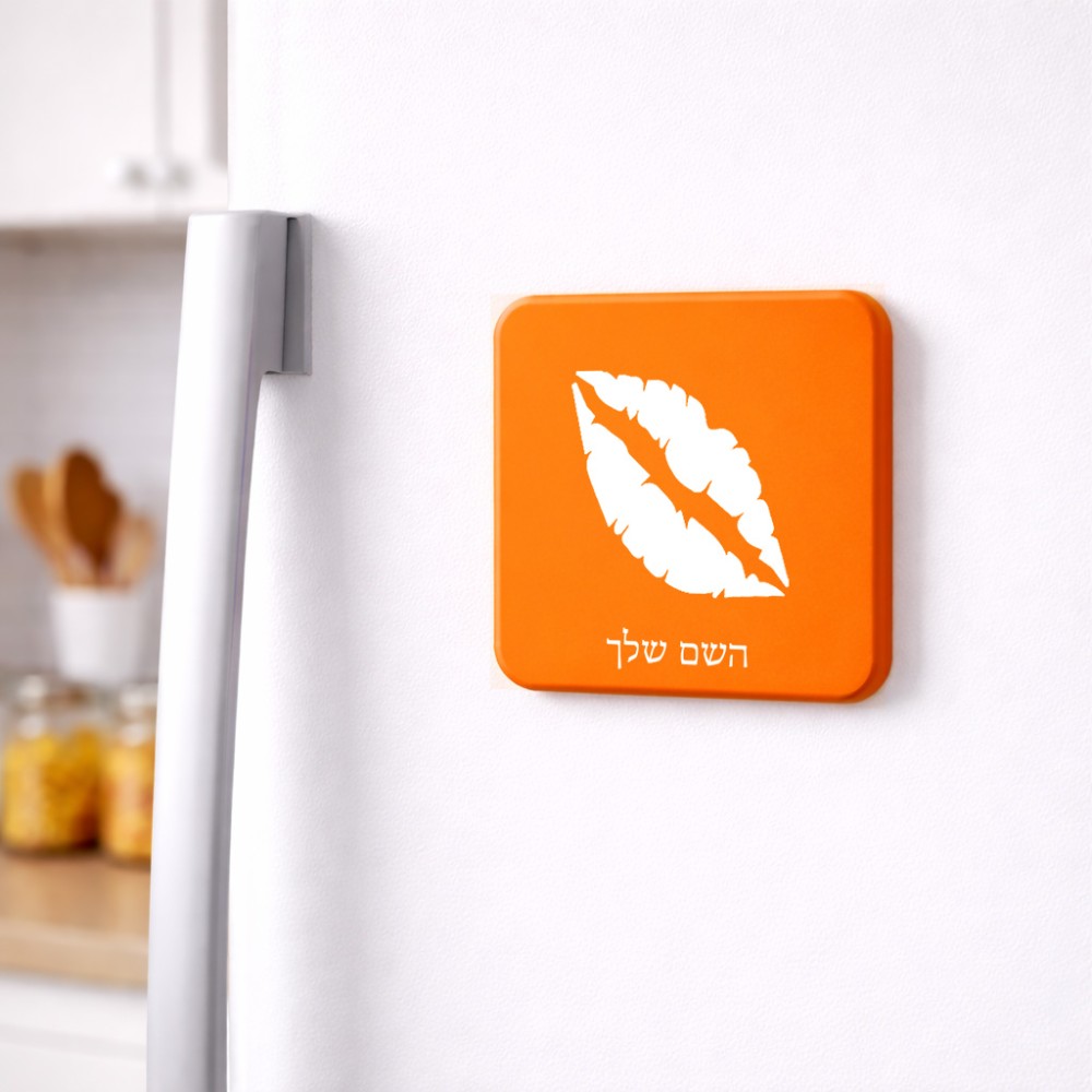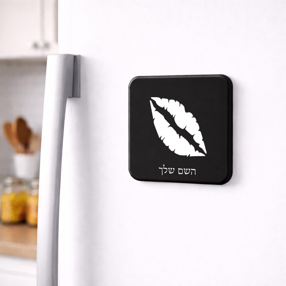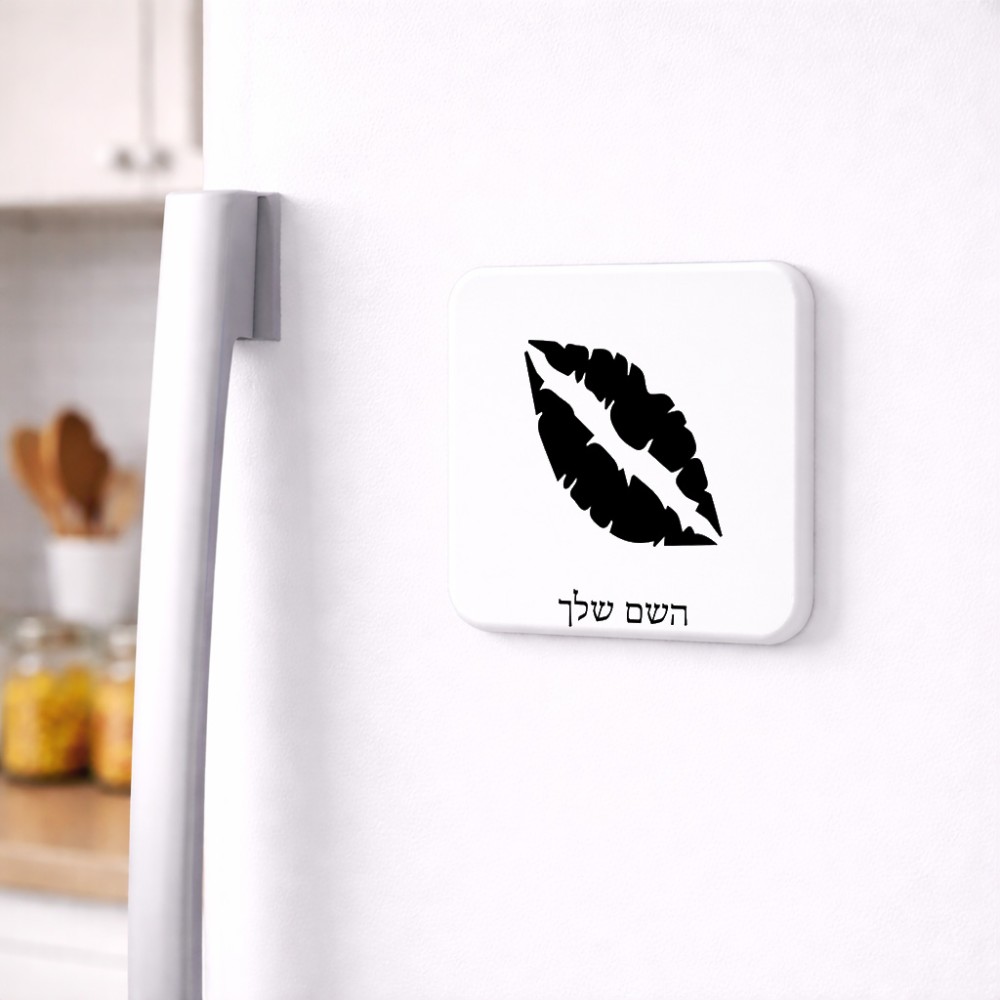 מגנט למקרר בעיצוב אישי עם השם שלך בעיצוב שפתיים - נשיקה גודל המגנט 6.5 × 6.5 ס"מ