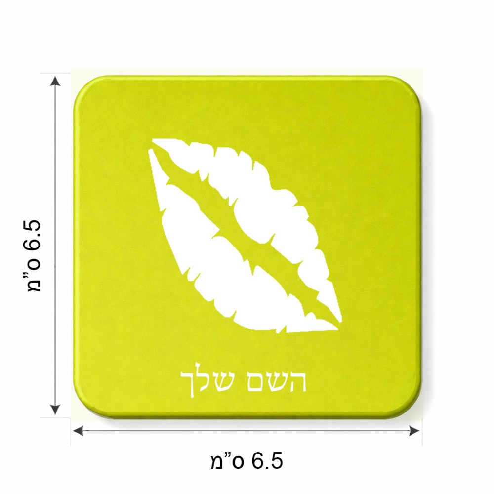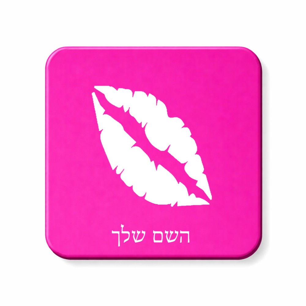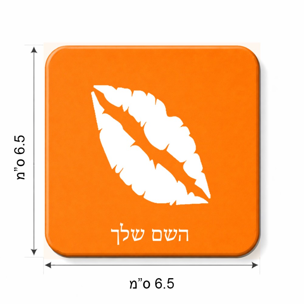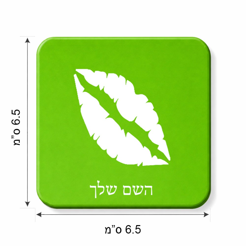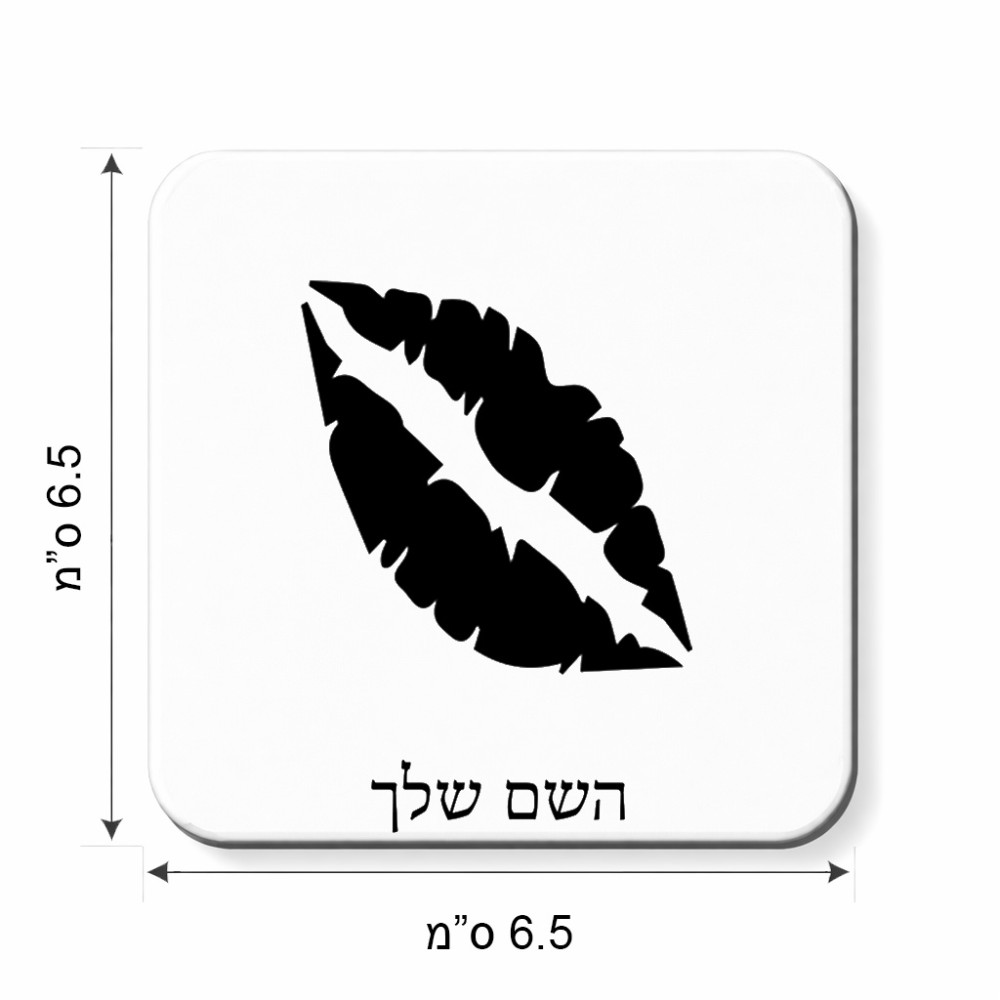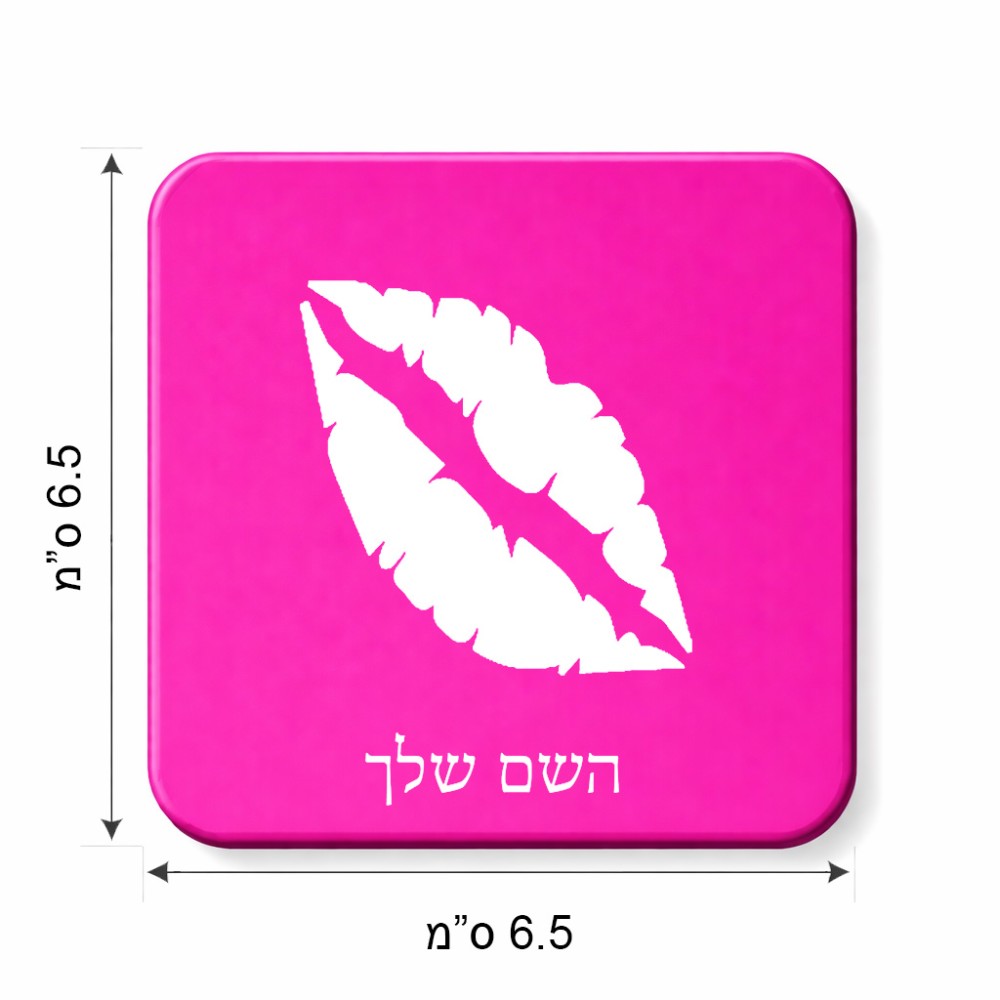 מגנט למקרר בעיצוב אישי עם השם שלך בעיצוב שפתיים - נשיקה גודל המגנט 6.5 × 6.5 ס"מ