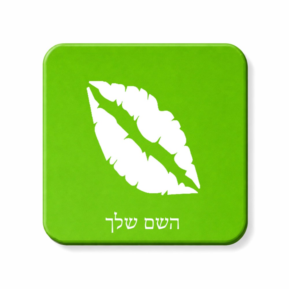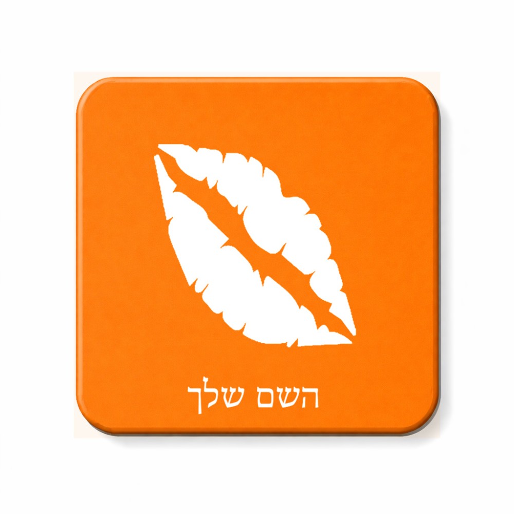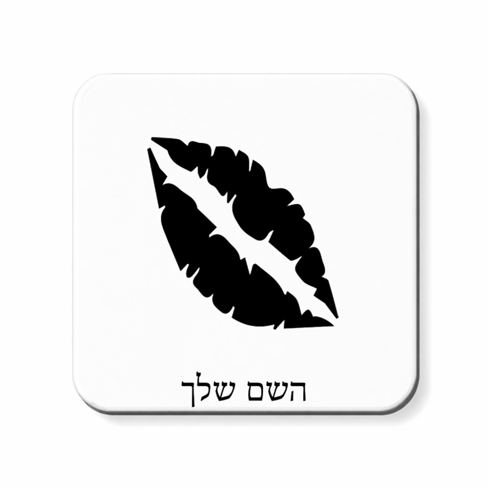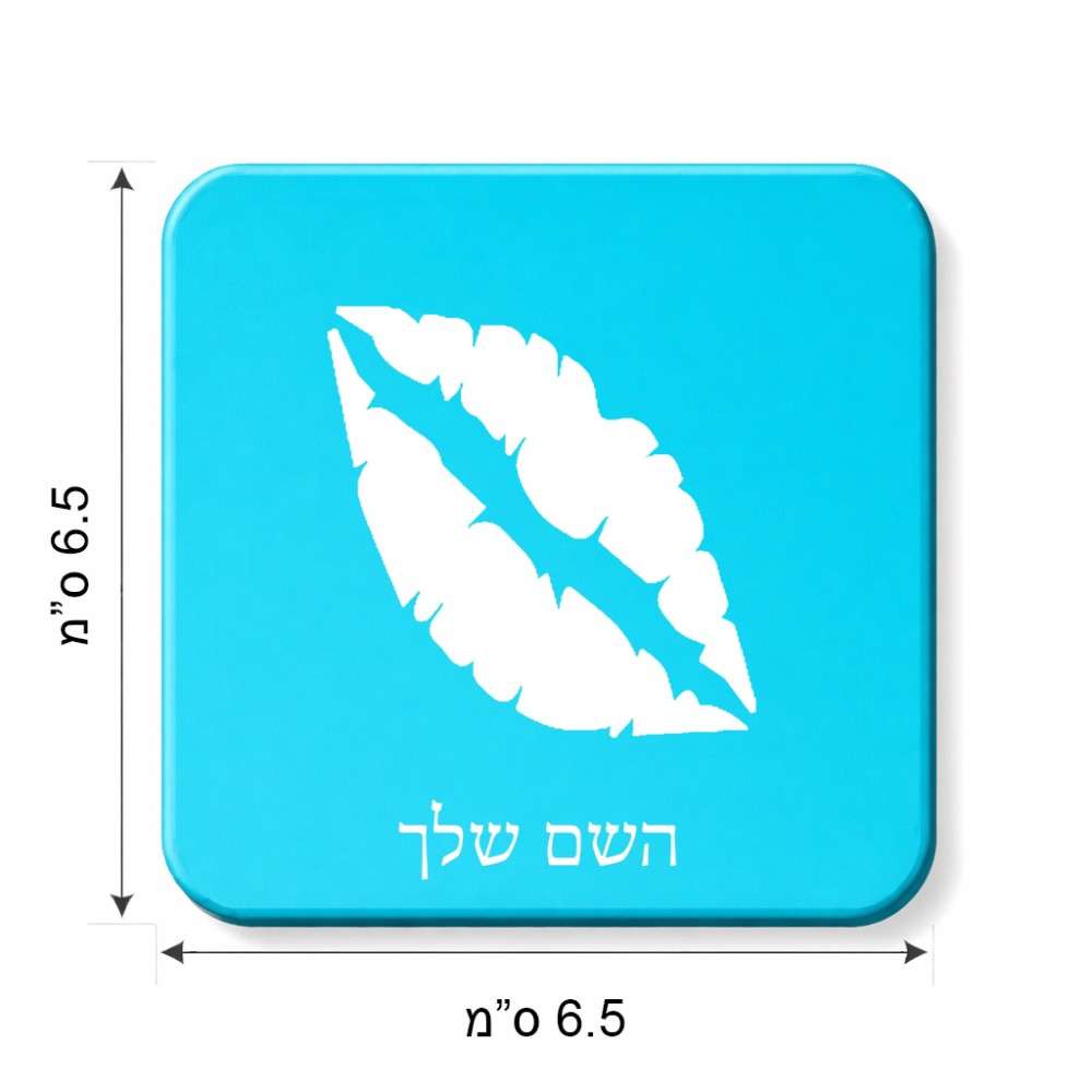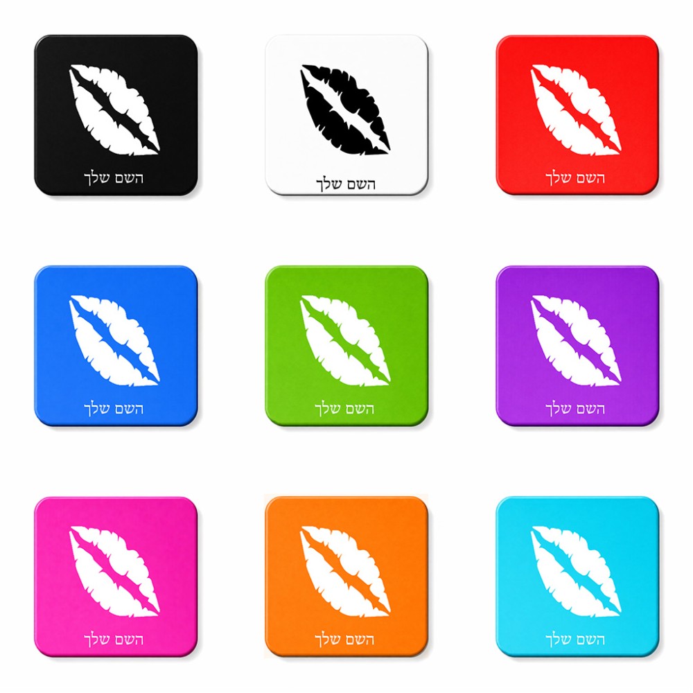 מגנט למקרר בעיצוב אישי עם השם שלך בעיצוב שפתיים - נשיקה גודל המגנט 6.5 × 6.5 ס"מ